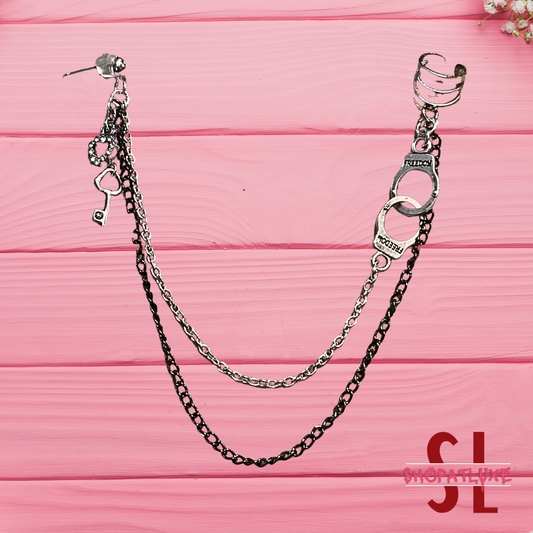 Handcuffs And Key Ear Cuff And Chains Earring