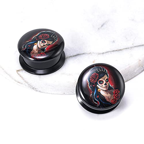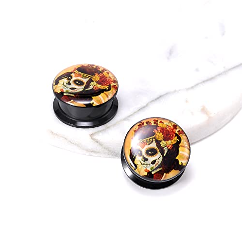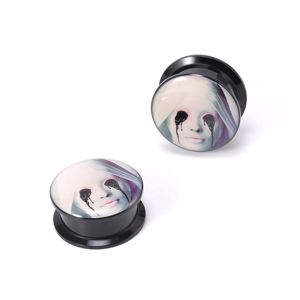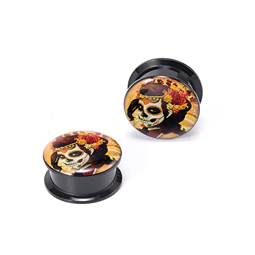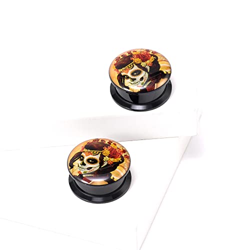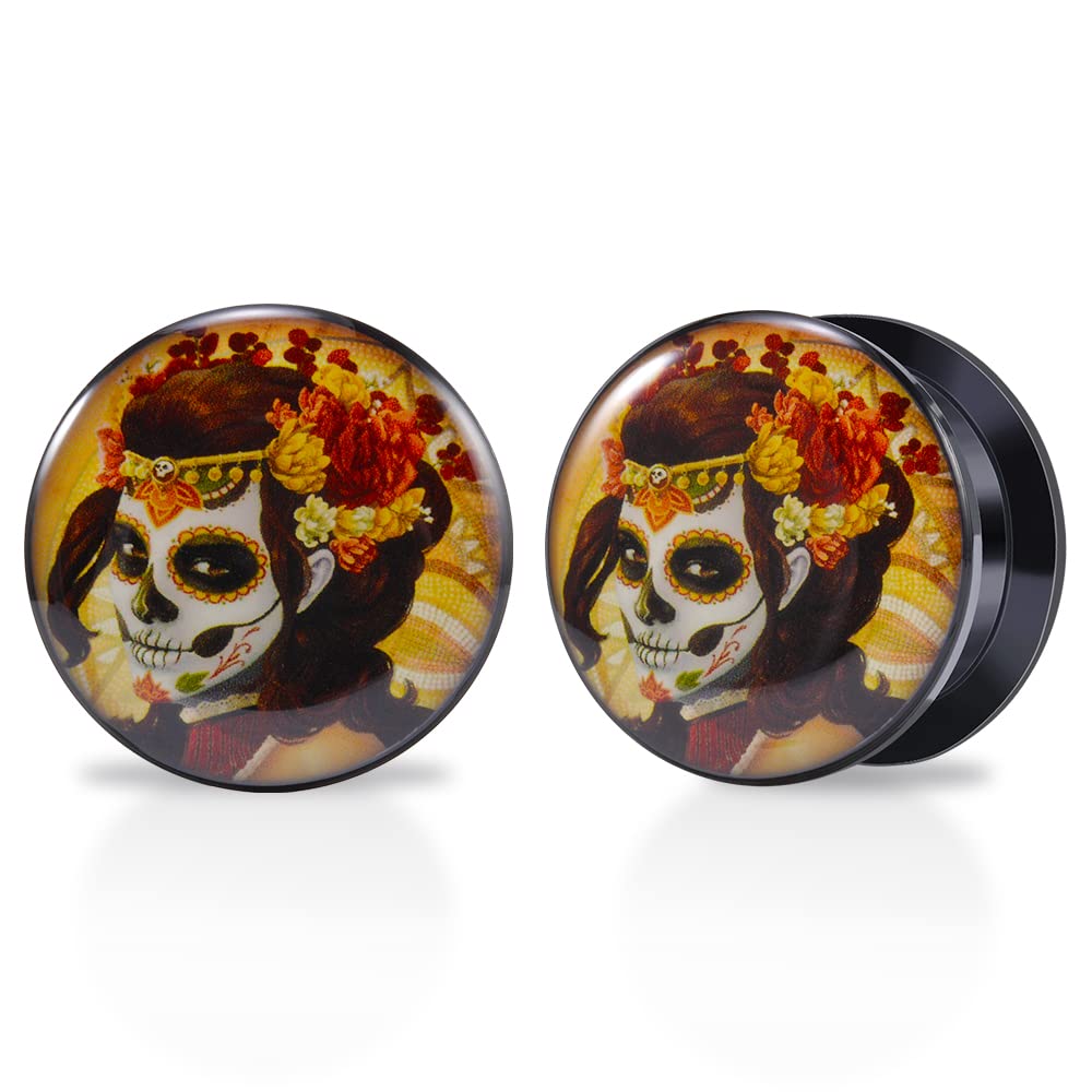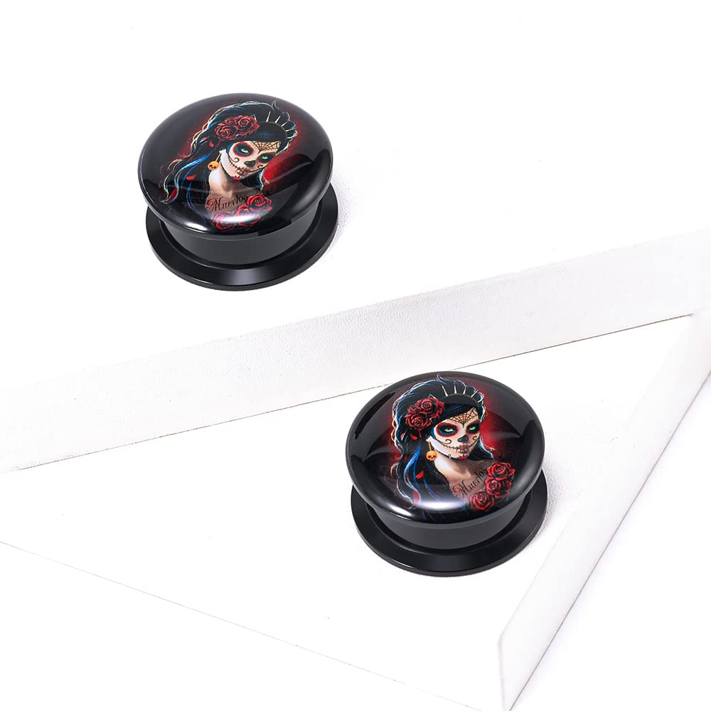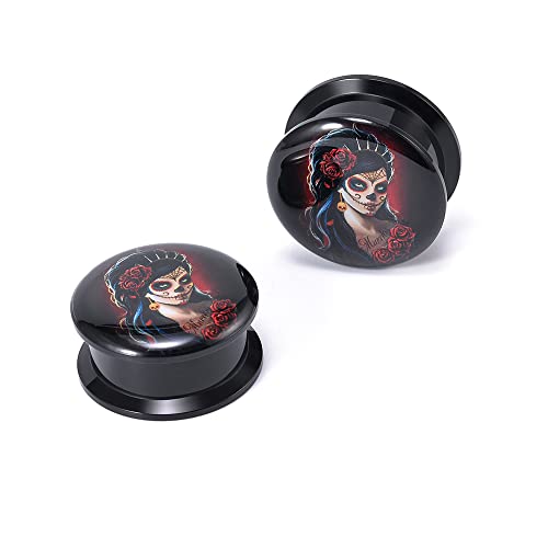 1 Pair Acrylic Solid Screw On Ear Plugs Tunnels Santa Muerte Death Goodness Resin Allergy Free Stretcher For Women Men Body Piercing Jewelry