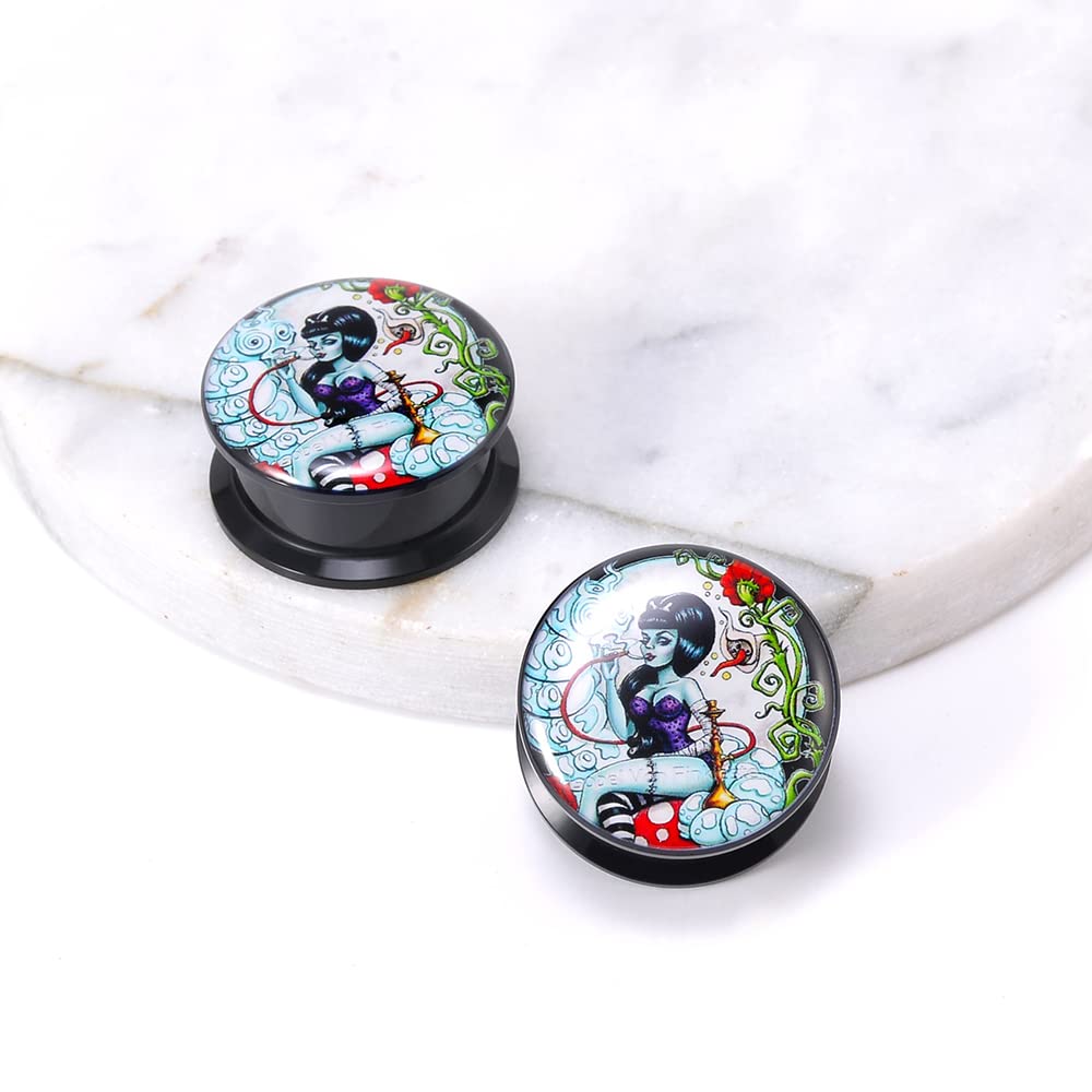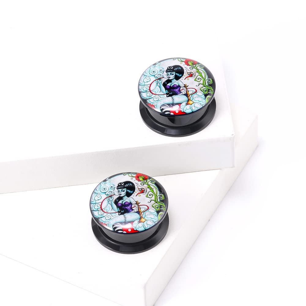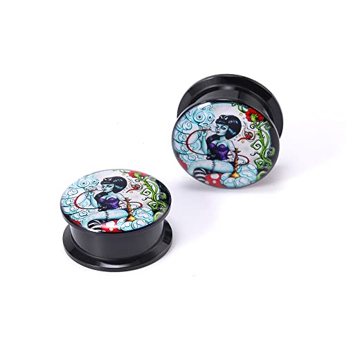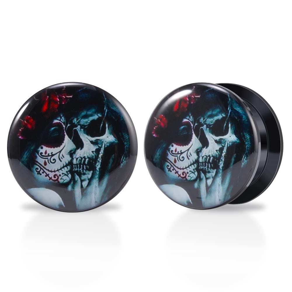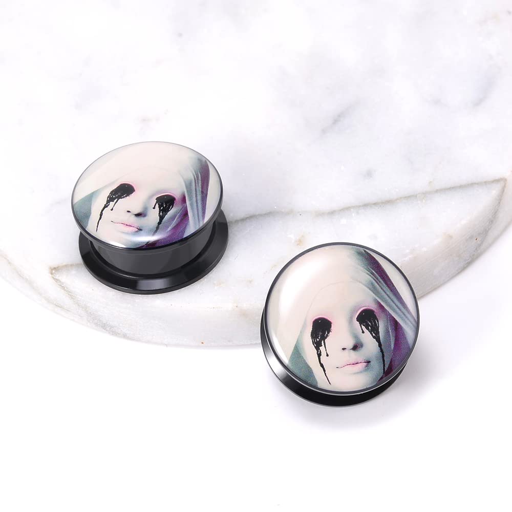 1 Pair Acrylic Solid Screw On Ear Plugs Tunnels Santa Muerte Death Goodness Resin Allergy Free Stretcher For Women Men Body Piercing Jewelry