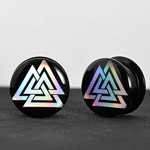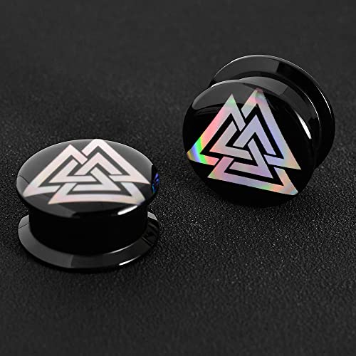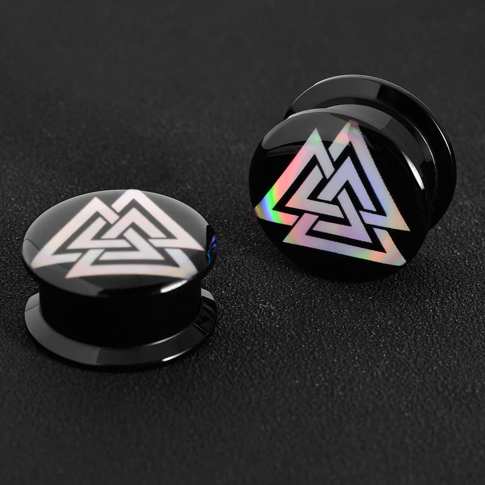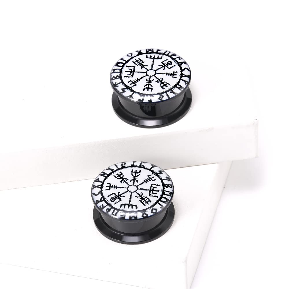 1 Pair Acrylic Solid Screw On Ear Plugs Tunnels Scandinavian Norse Viking Symbol Resin Allergy Free Stretcher For Women Men Body Piercing Jewelry