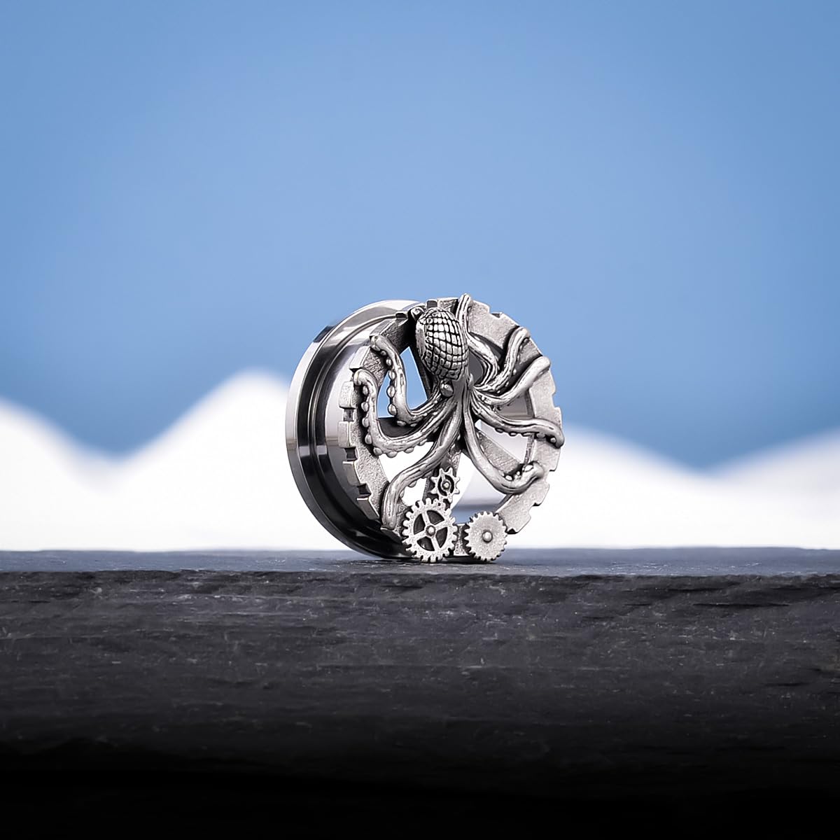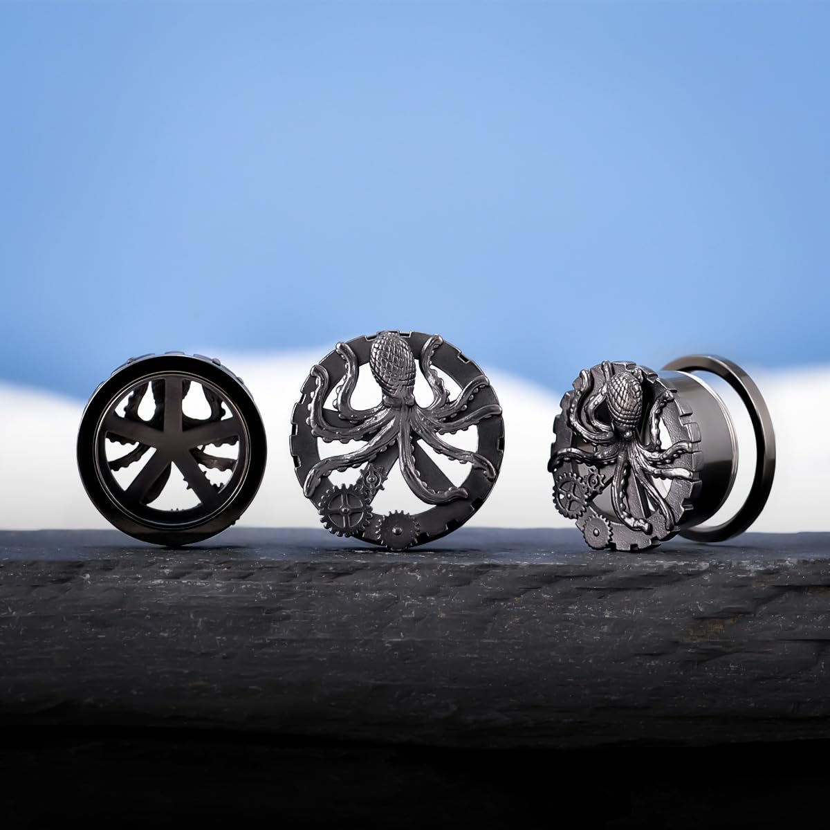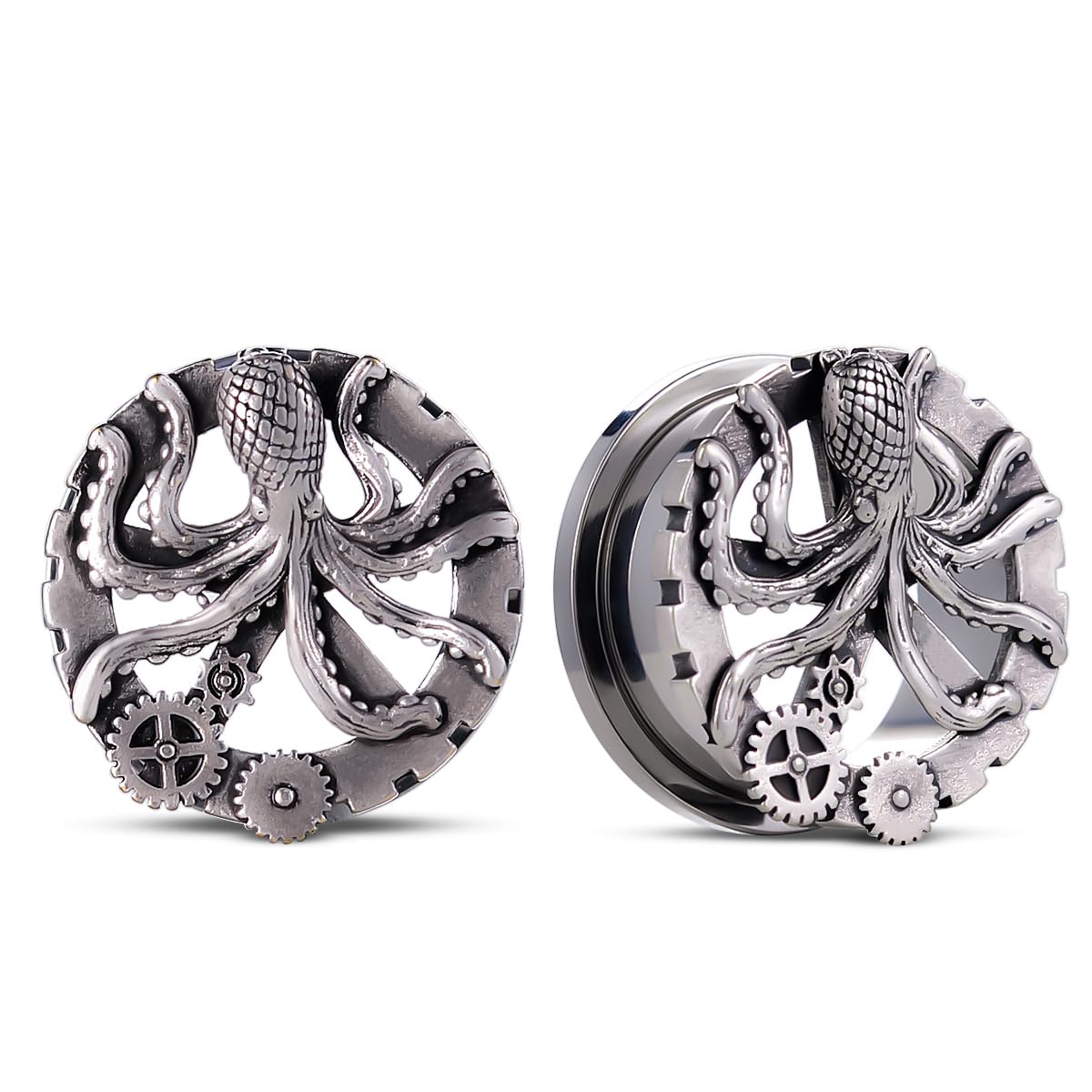 1 Pair Ear Gauge Flesh Tunnels Punk Retro Octopus Hollow Mushroom Double Flared Plug Expander Stretcher Women Body Piercing Jewelry