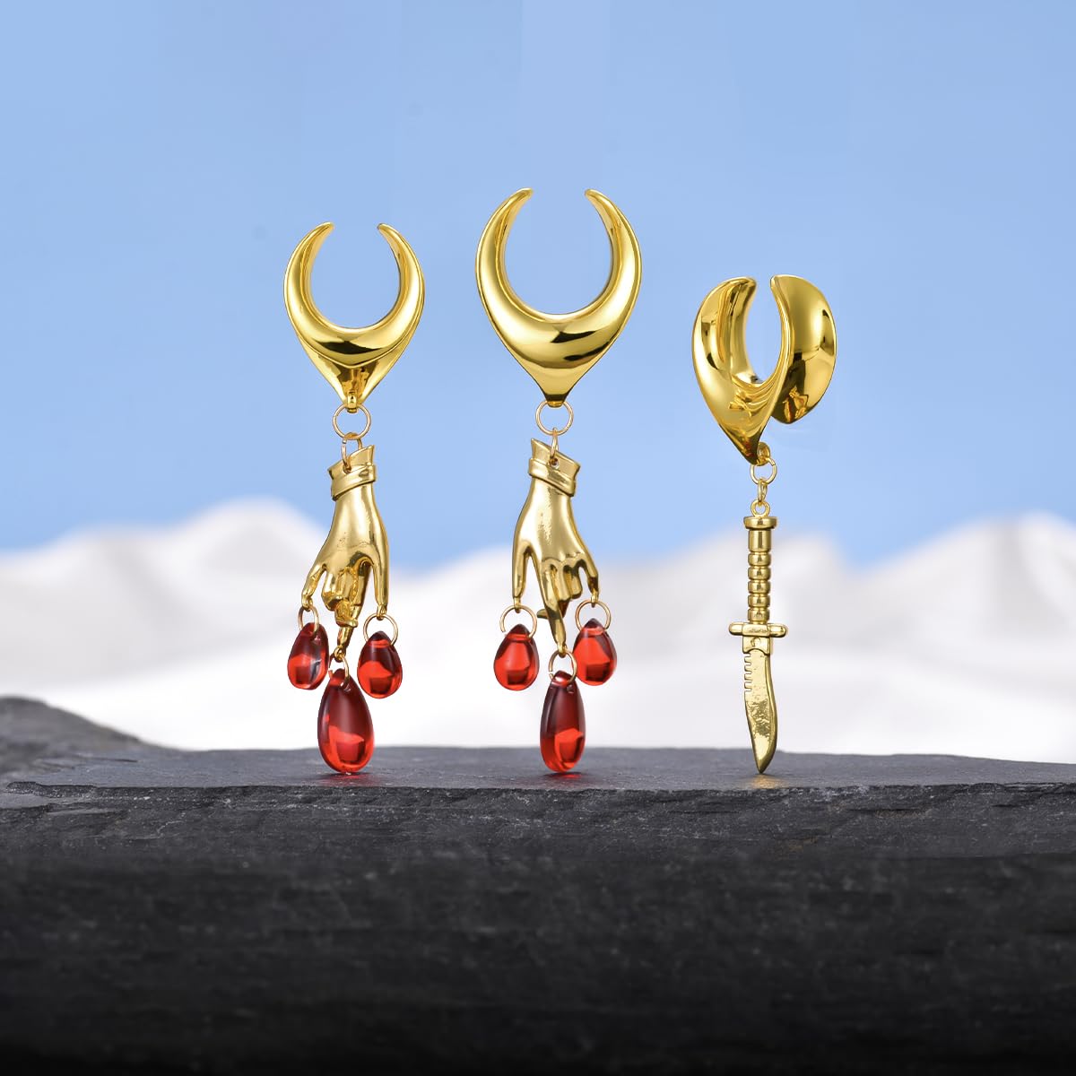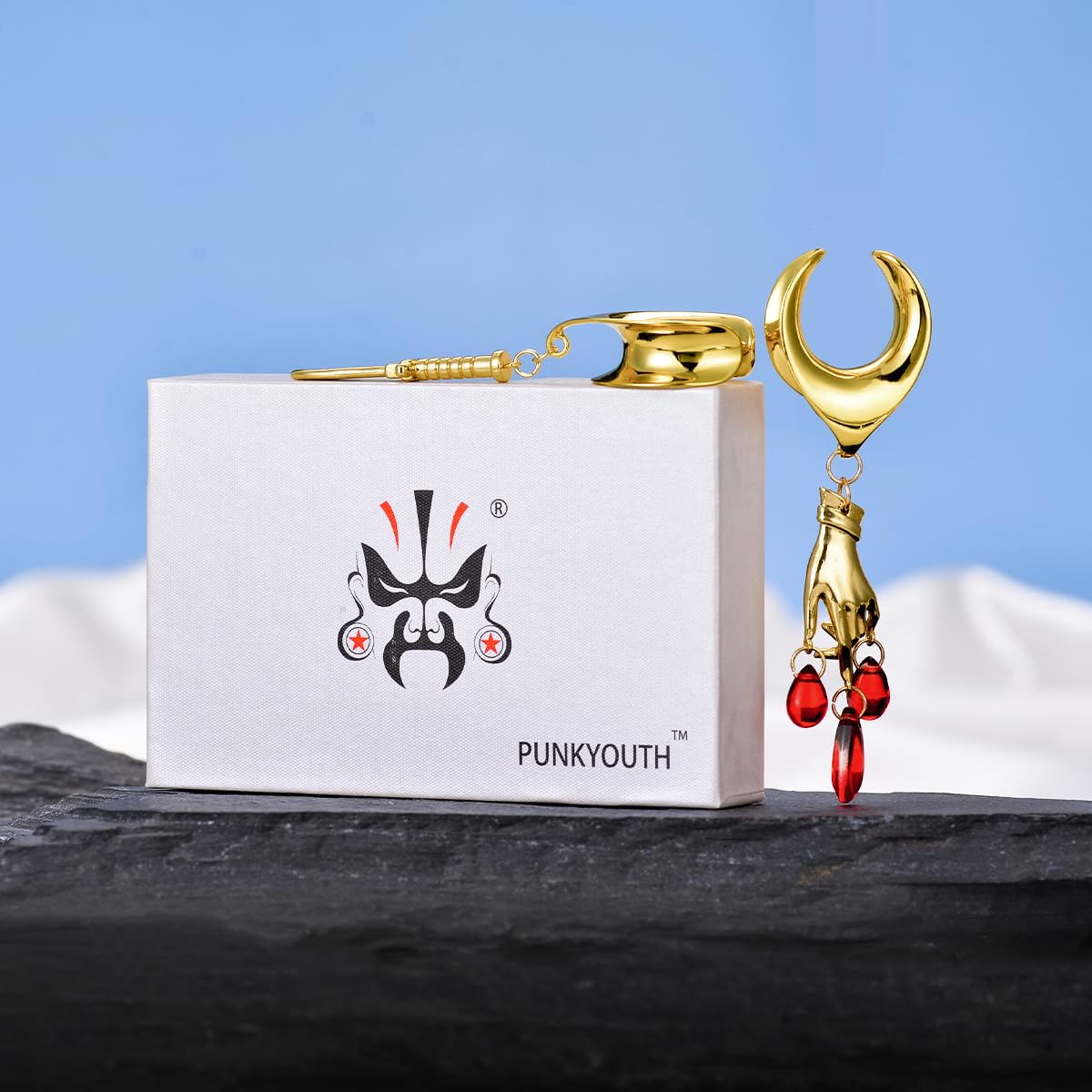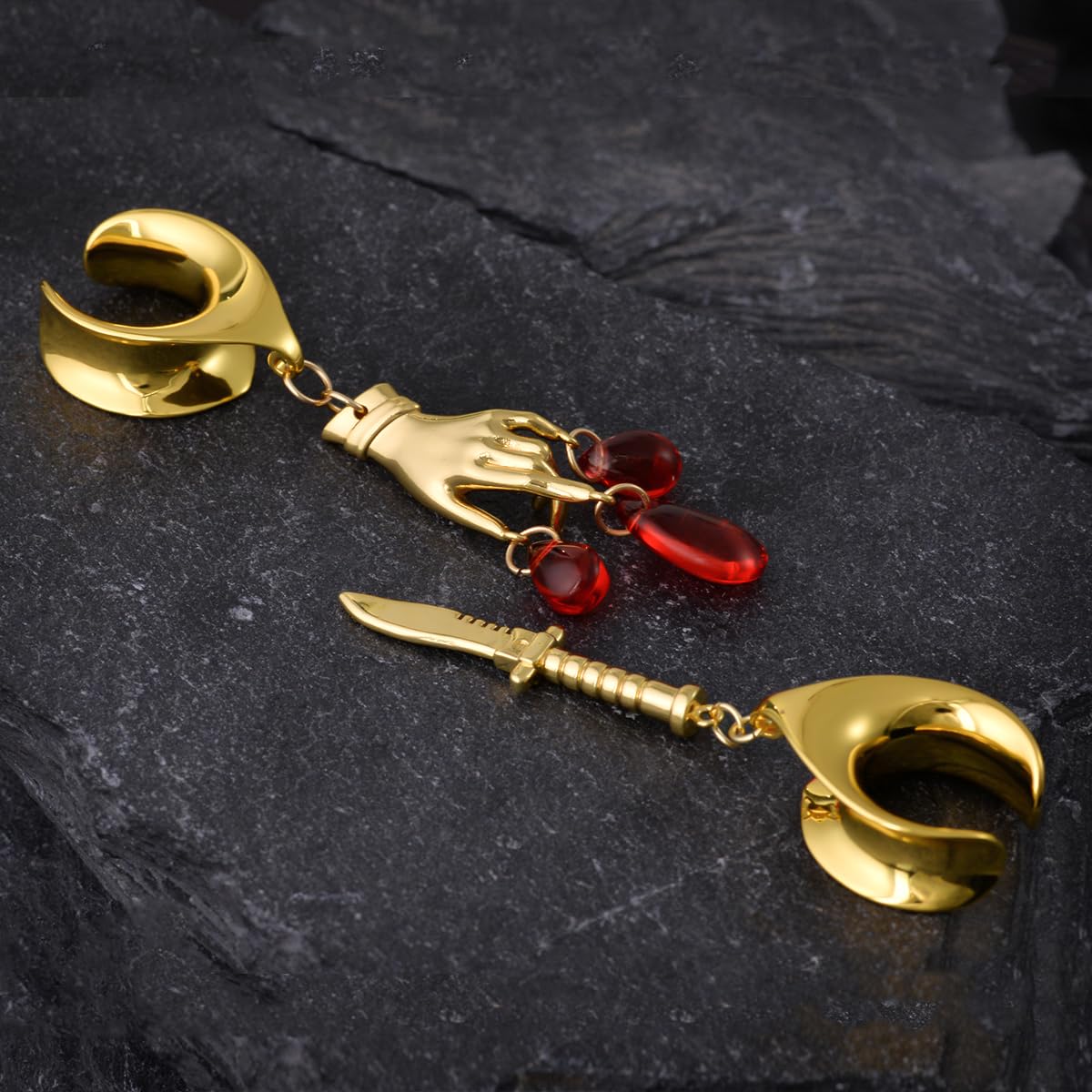 1 Pair Ear Gauges 8mm-25mm Dangle Plug Saddle Tunnels Brass Ear Hanger Stretcher Expander Earrings For Women Body Piercing Jewelry