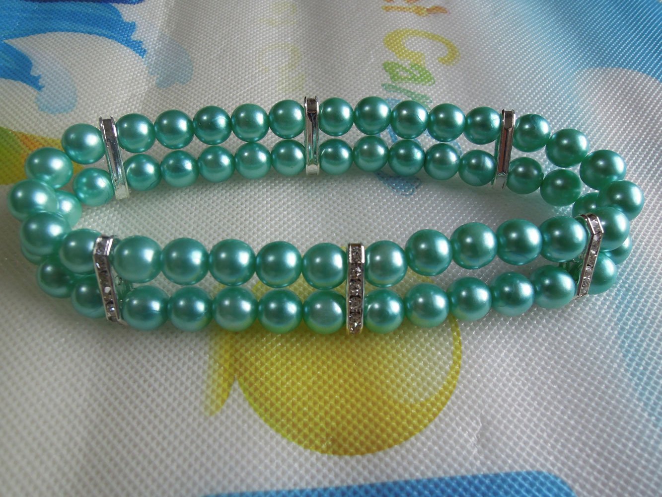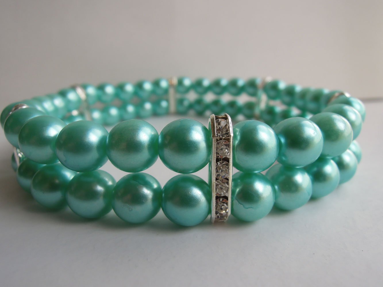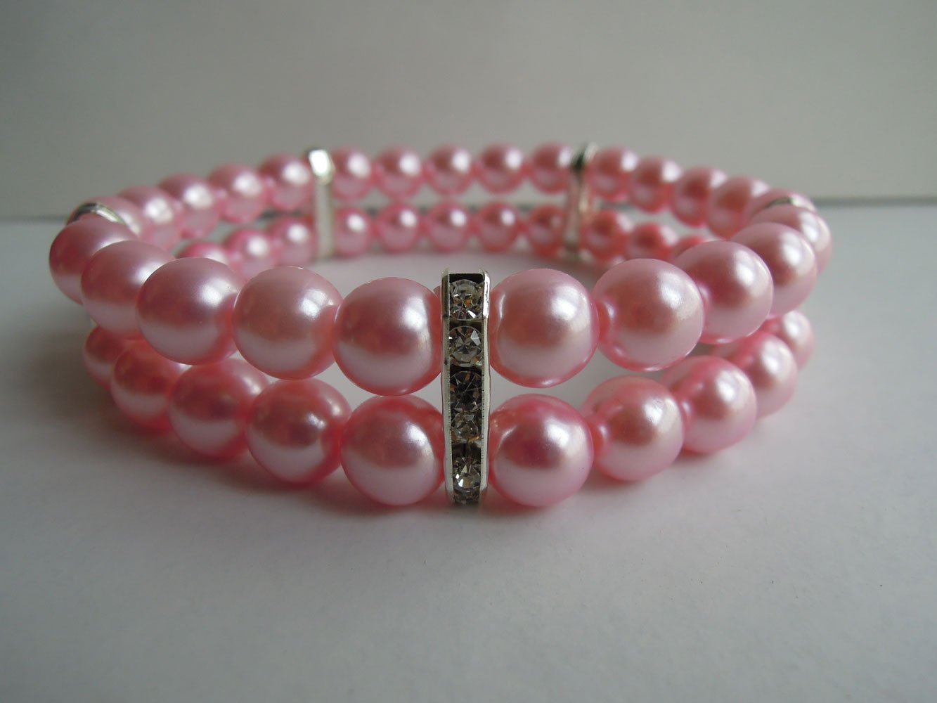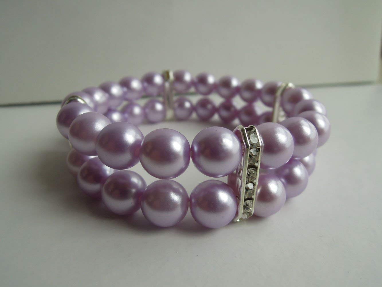 - Classy pet necklace made of 2 rows of handmade high quality imitation pearls and 25 rhinestones