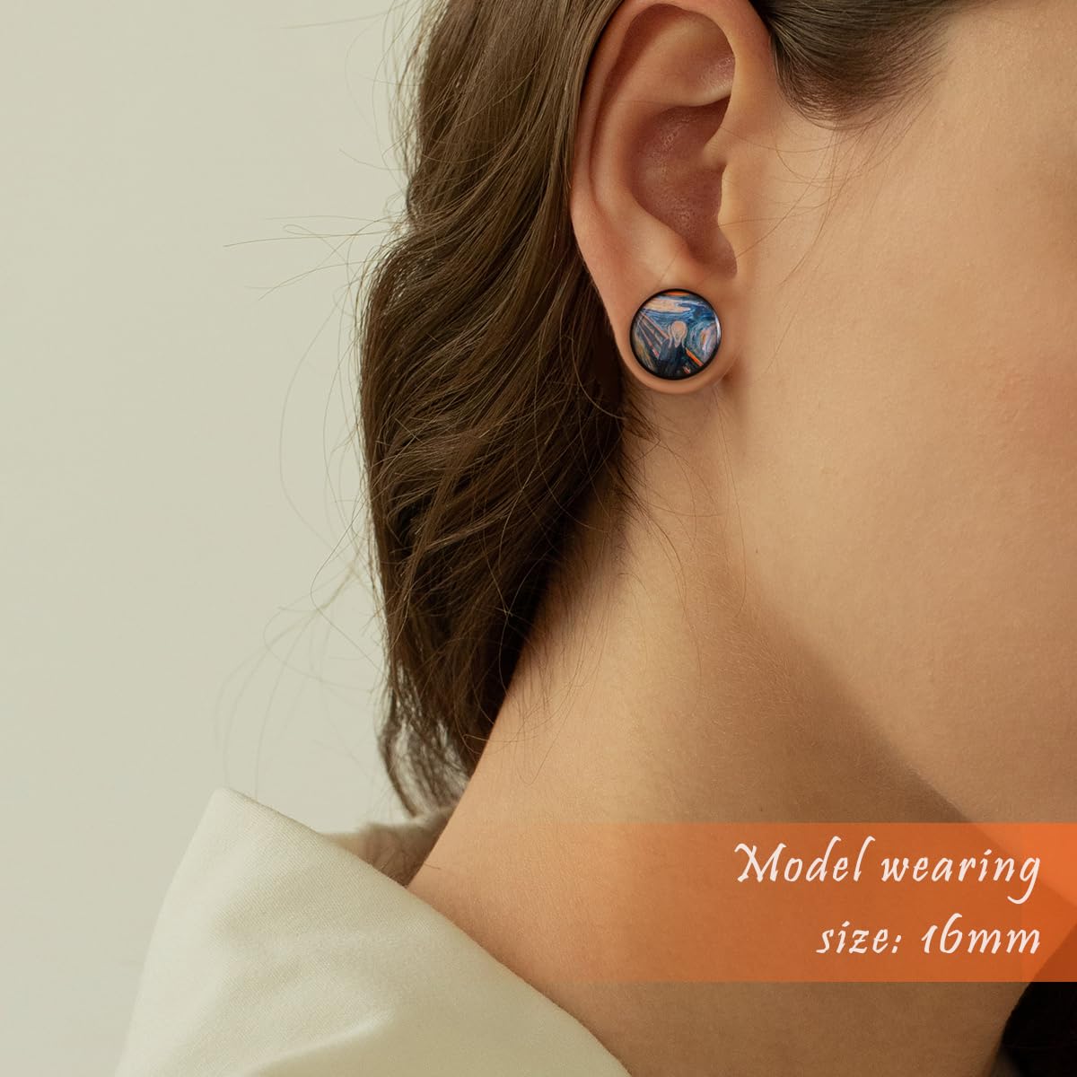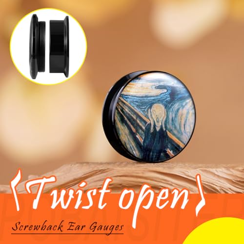 2PCS Acrylic Solid Screw On Ear gauges Art Oil Painting The Scream Epoxy Allergy Free Ear Plugs and Tunnels Stretcher For Women Men Body Piercing Jewelry