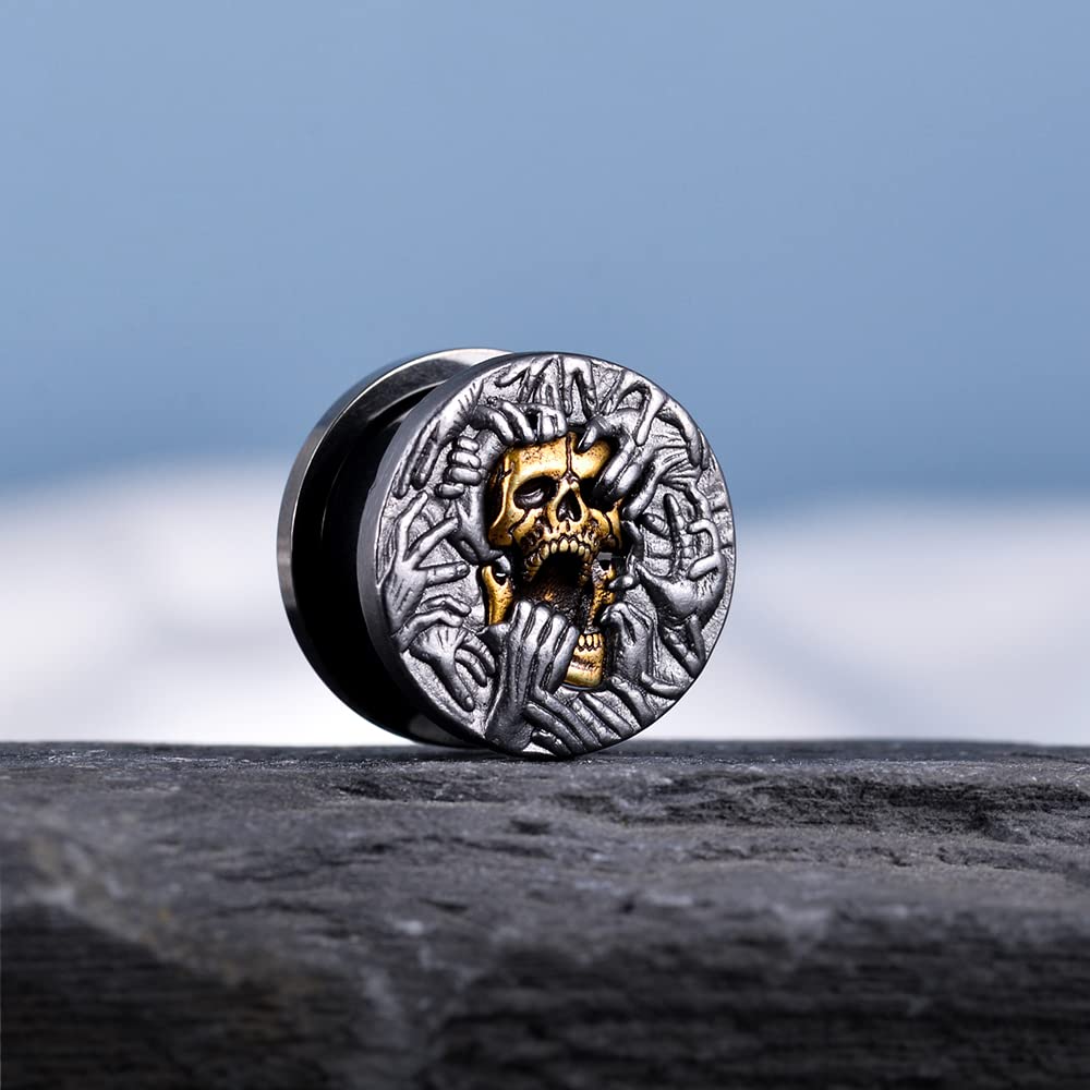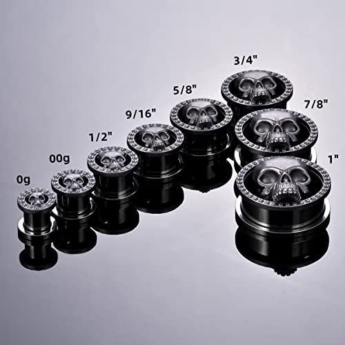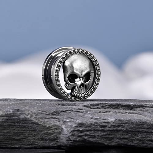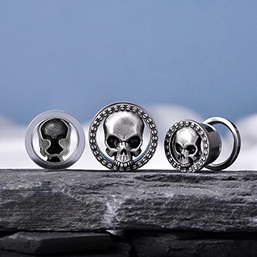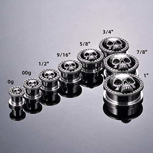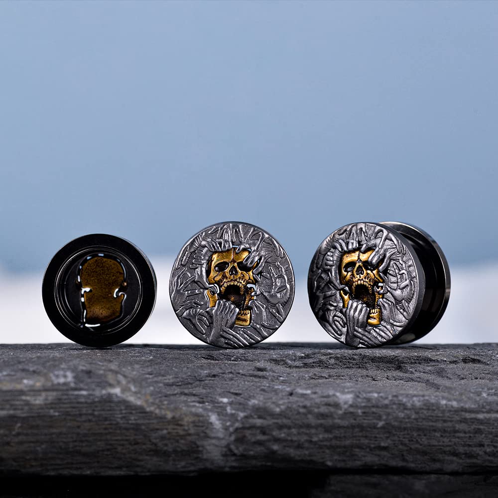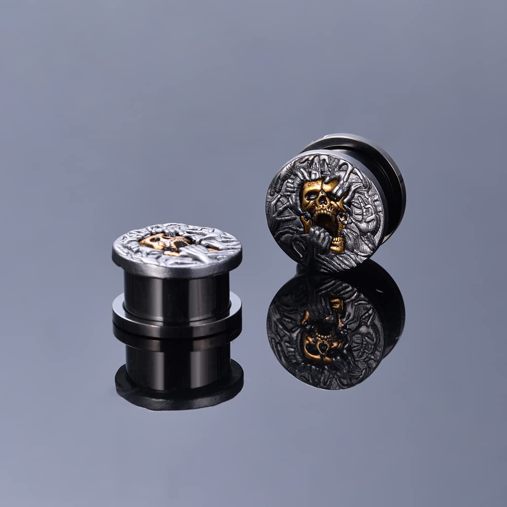 2PCS Cool Ear Gauges Gothic Skull Flesh Tunnels Screw Fit Plugs For Stretched Ears Expander Hanger Piercing Jewelry 0g to 1 inch