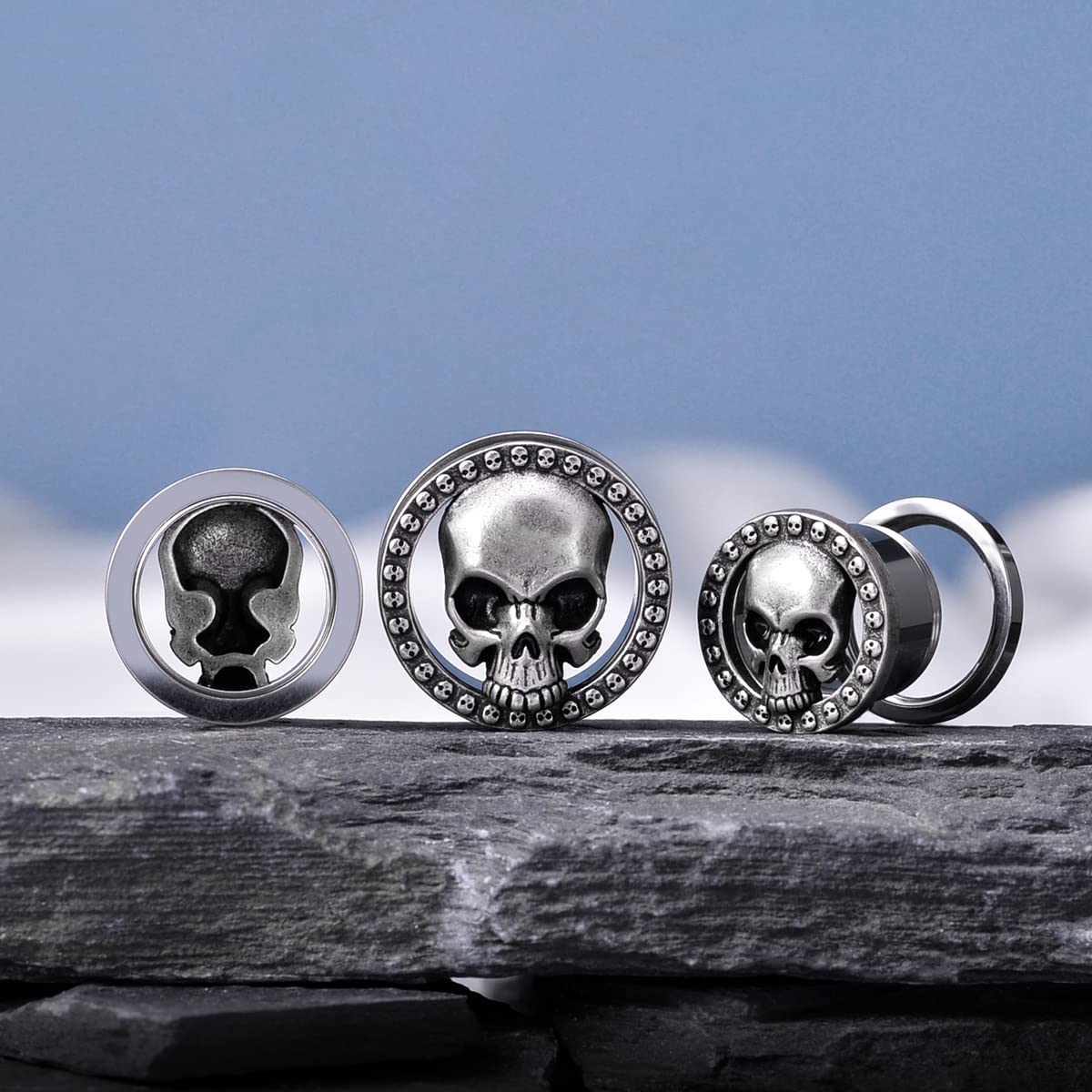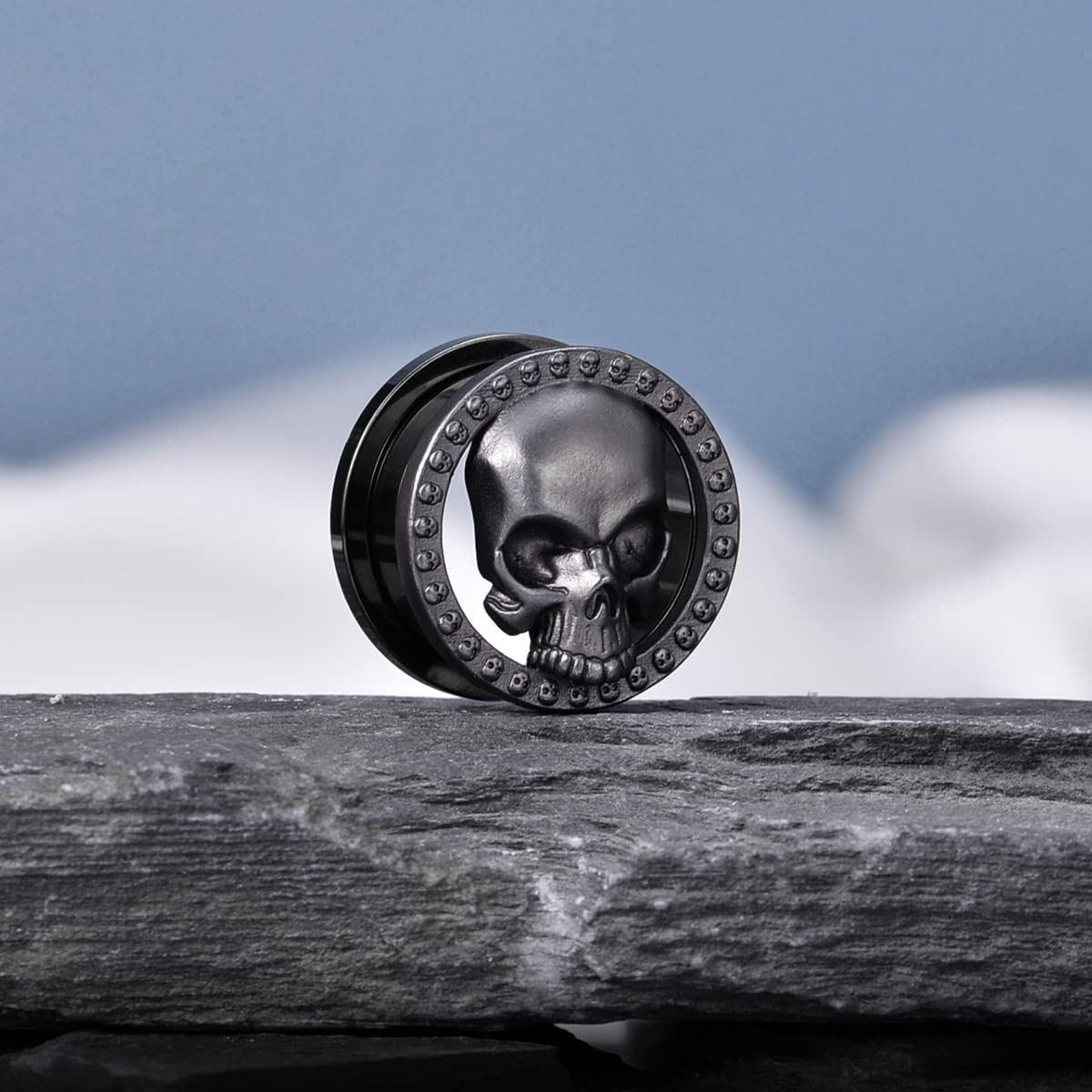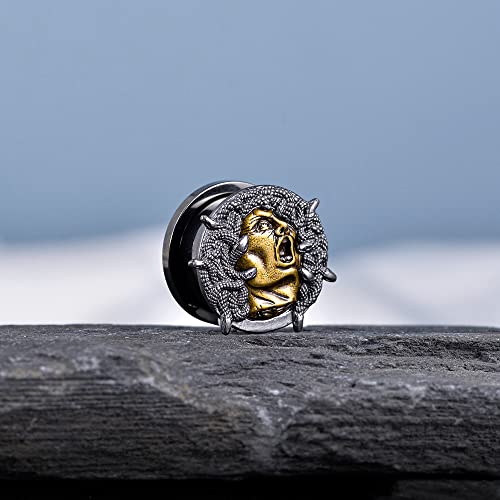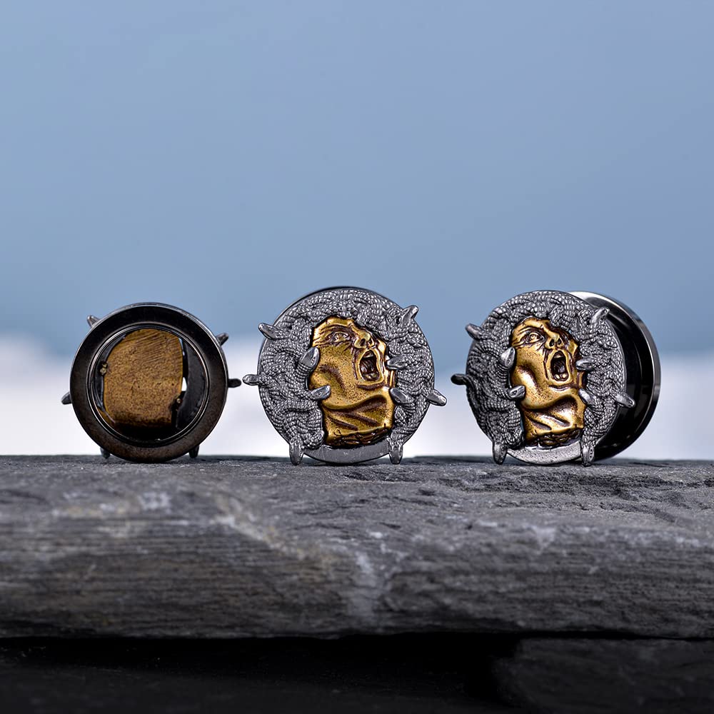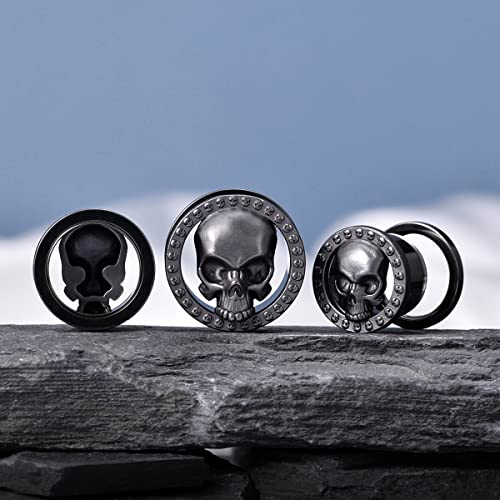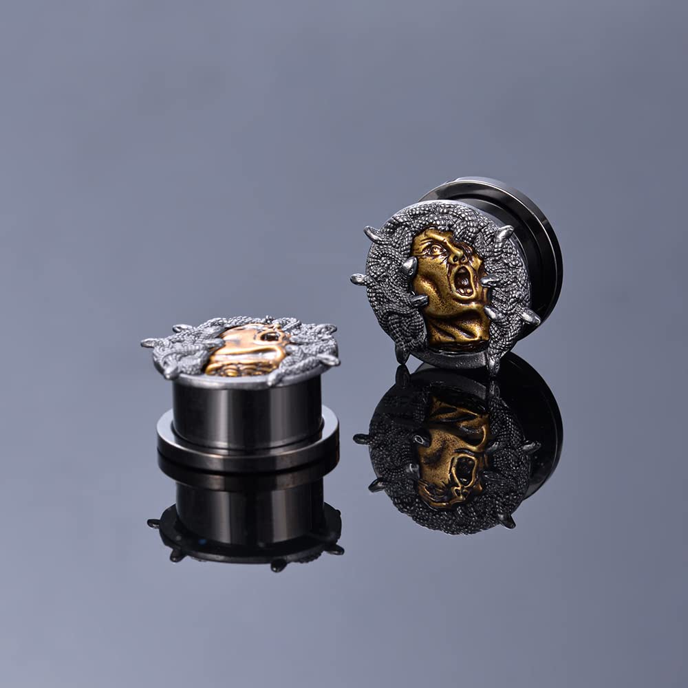 2PCS Cool Ear Gauges Gothic Skull Flesh Tunnels Screw Fit Plugs For Stretched Ears Expander Hanger Piercing Jewelry 0g to 1 inch