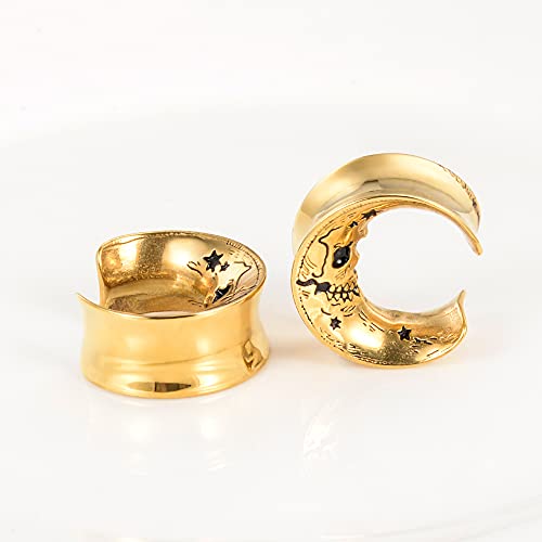 2PCS Moon Ear Gauges Ear Plugs and Tunnels Gauge for Ears Expander Piercing Gauge 10mm-25mm(00g-1")