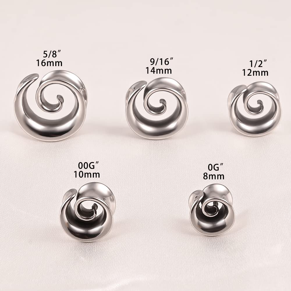 2PCS Spiral Saddle Ear Tunnels Plugs 316 Stainless Steel Ear Gauges Hypoallergenic Earrings Expander Stretcher Piercing Body Jewelry 0g-1"(8mm-25mm)