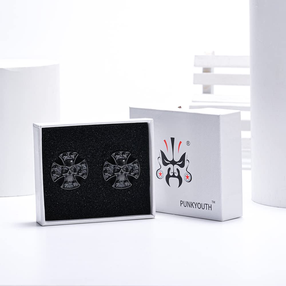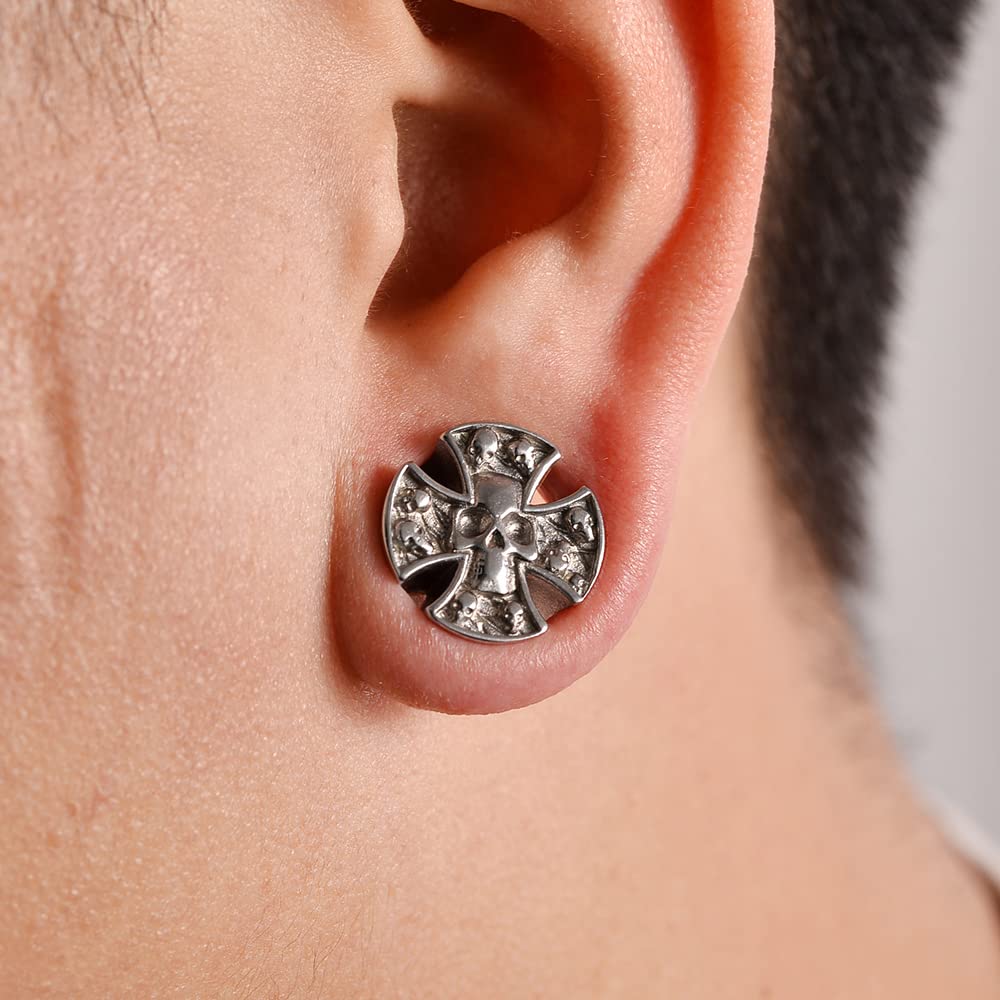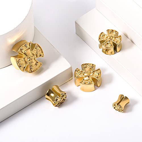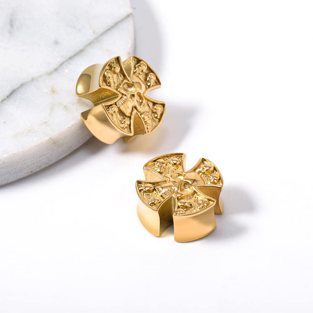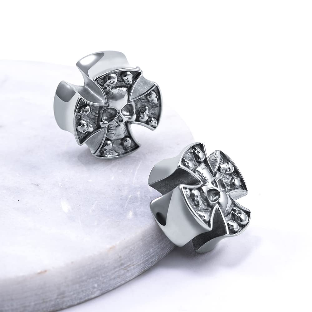 2PCS Stainless Steel 316L Punk Vintage Cross Skull Gauge For Ears Expander Stretcher Ear Tunnels Upgrade Saddle Plugs Double Flared Guage For Women Men 0g-1"