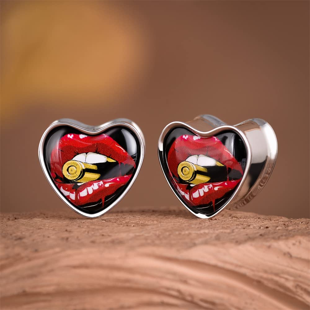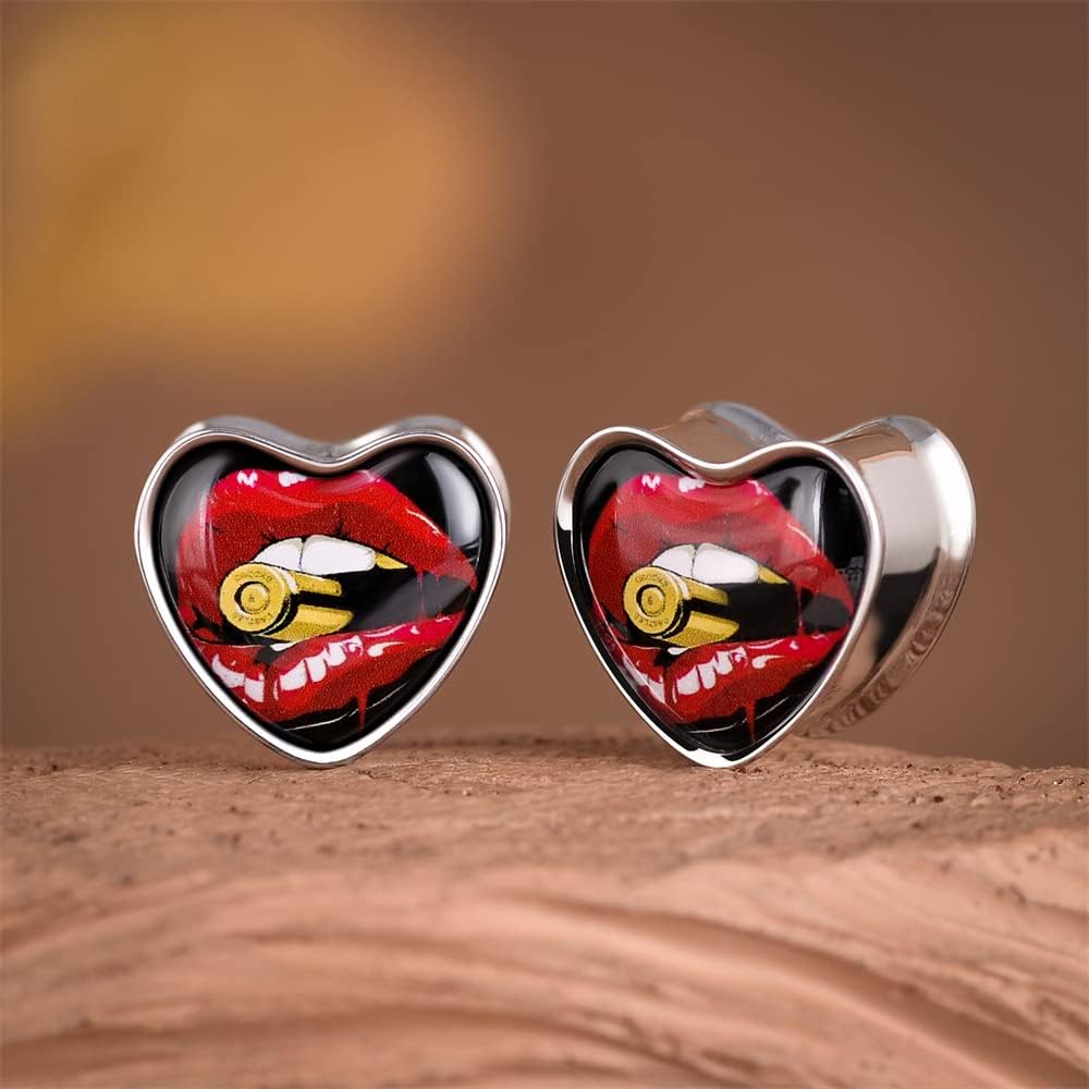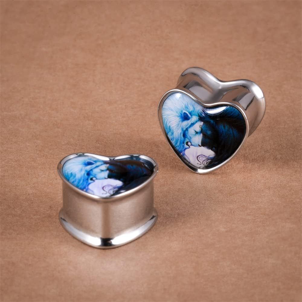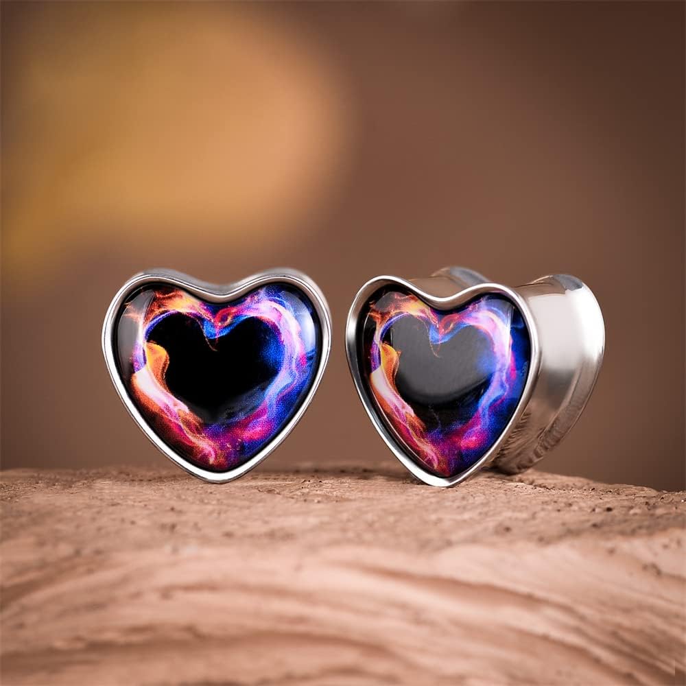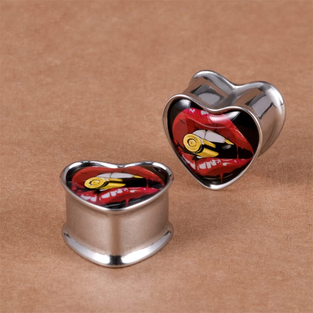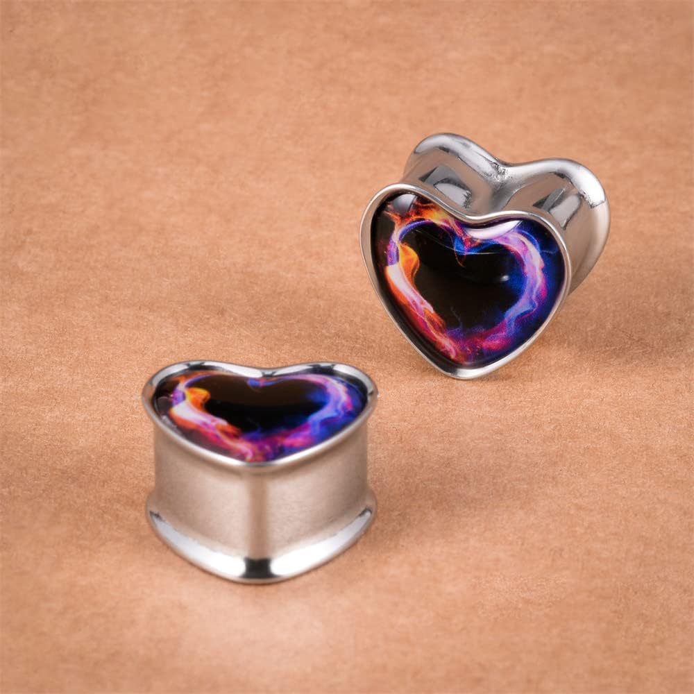 2PCS Stainless Steel Heart Ear Gauges Single Flared Expander Stretching Gauges for Ears