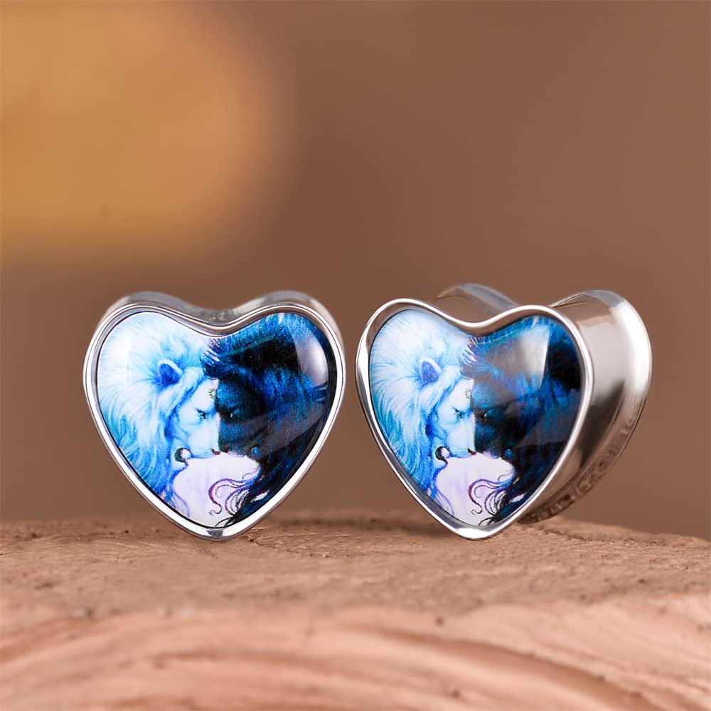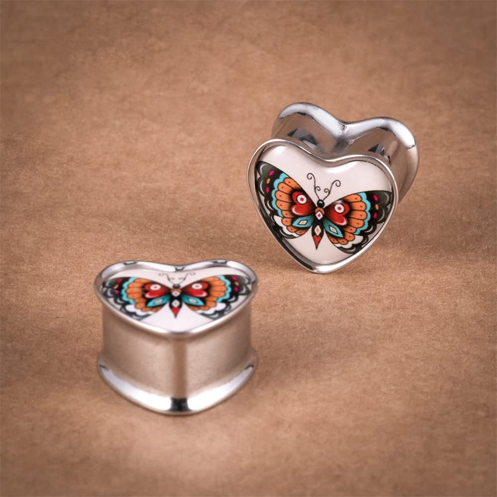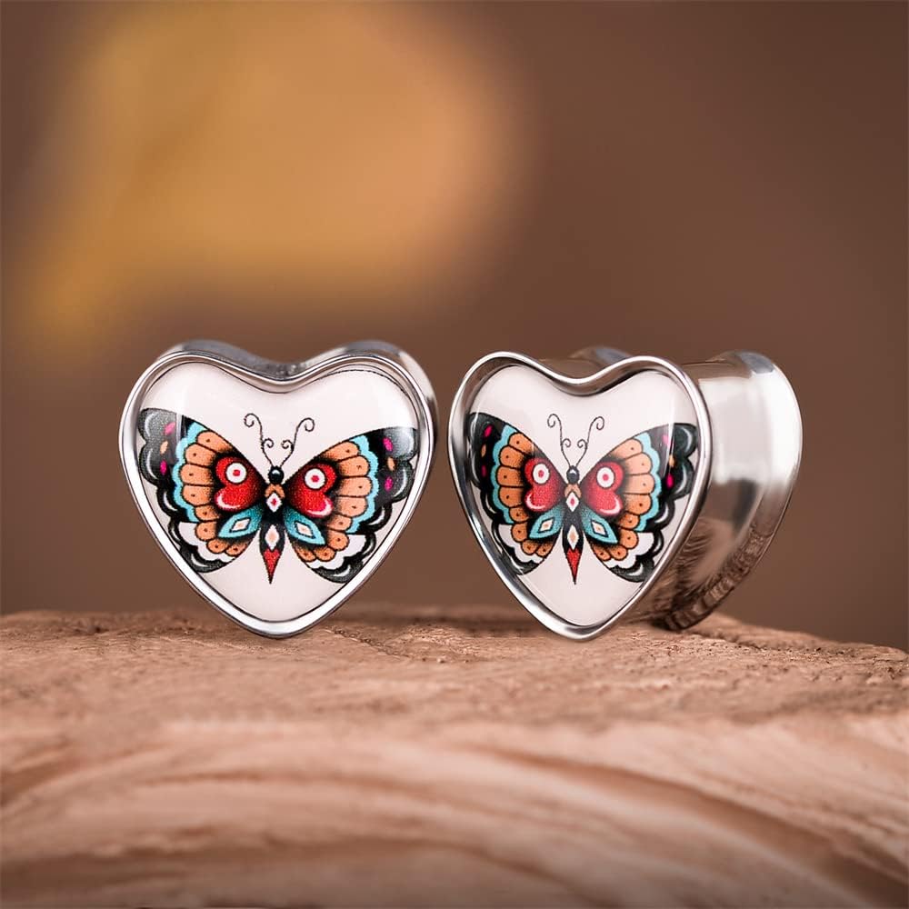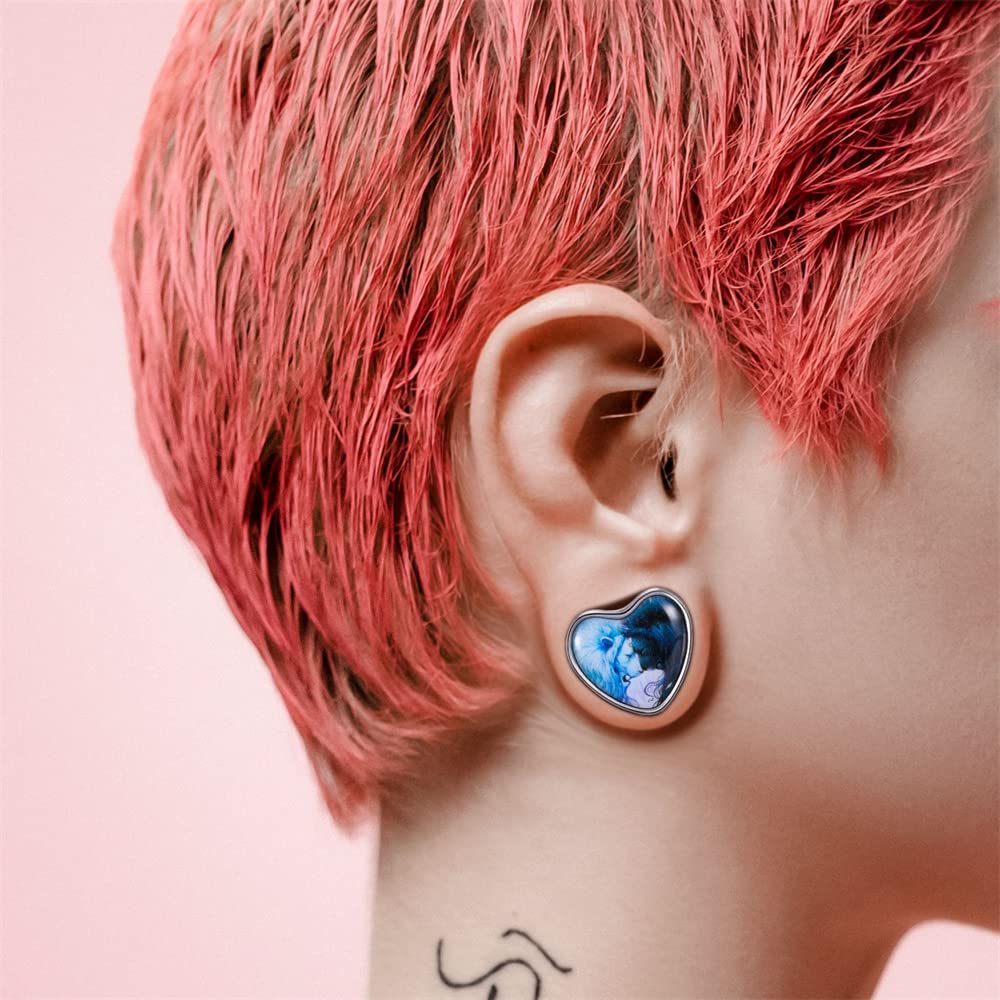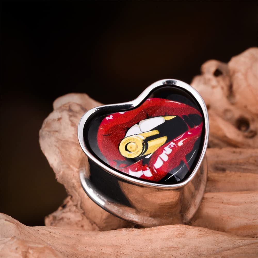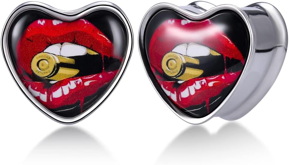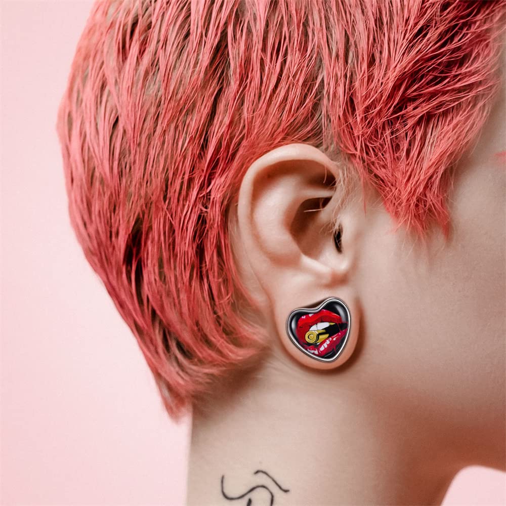 2PCS Stainless Steel Heart Ear Gauges Single Flared Expander Stretching Gauges for Ears