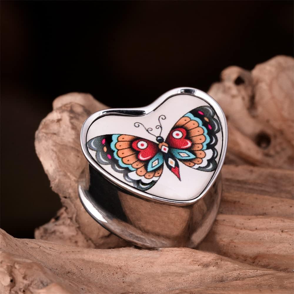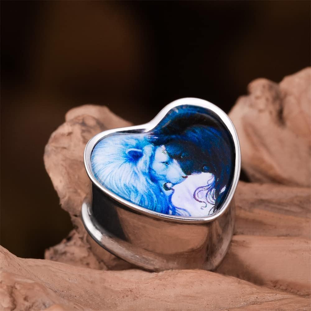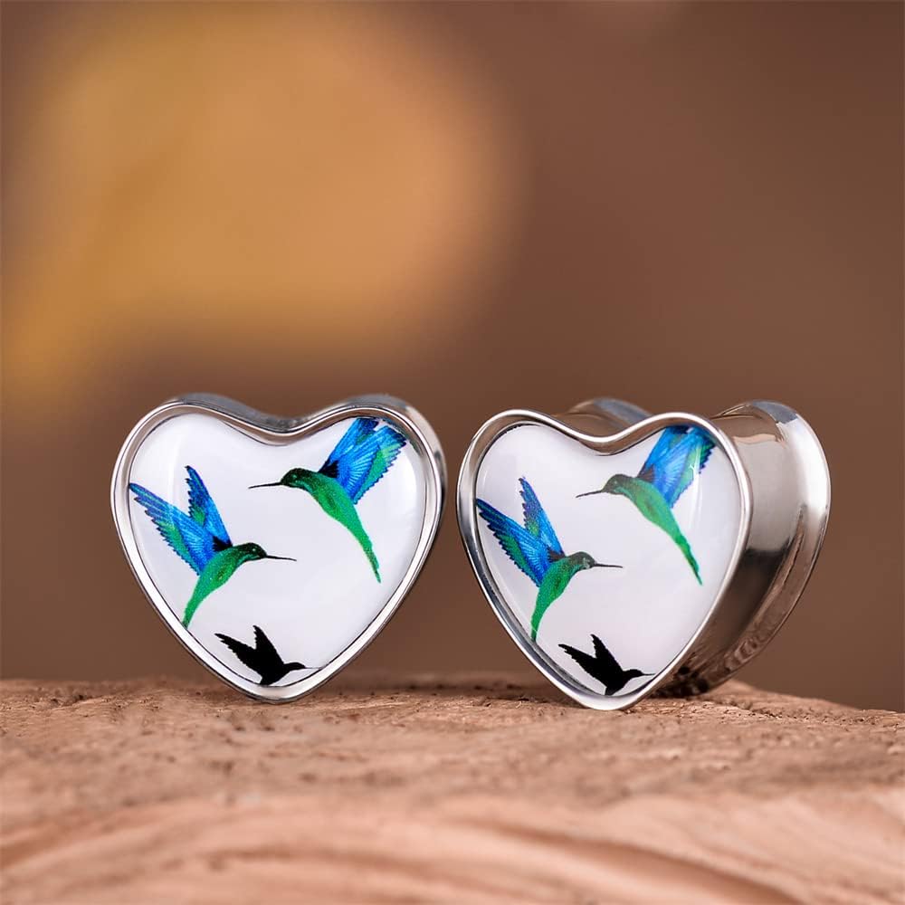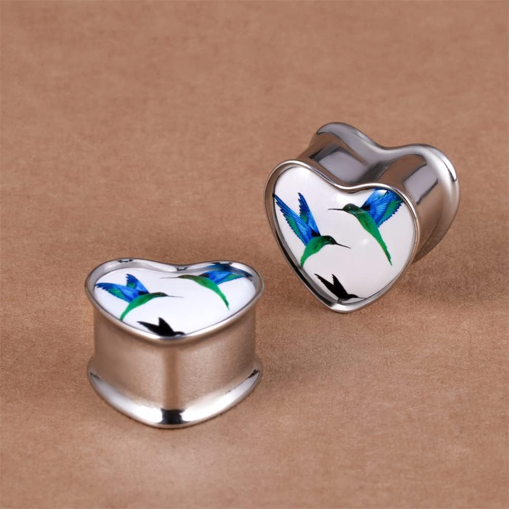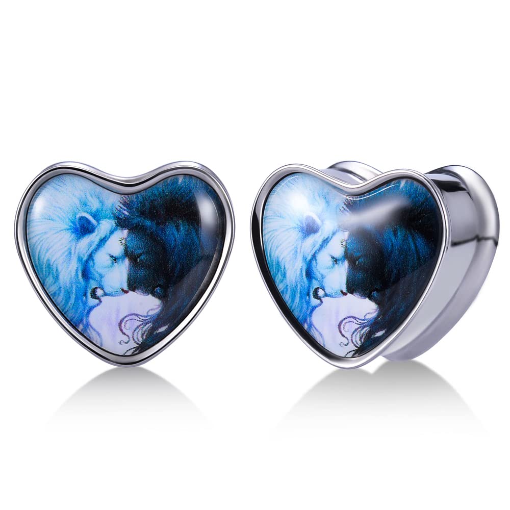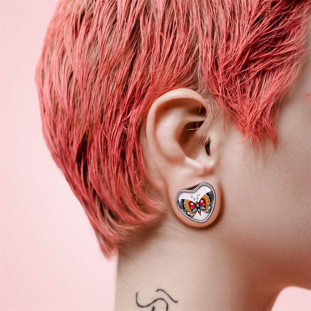 2PCS Stainless Steel Heart Ear Gauges Single Flared Expander Stretching Gauges for Ears
