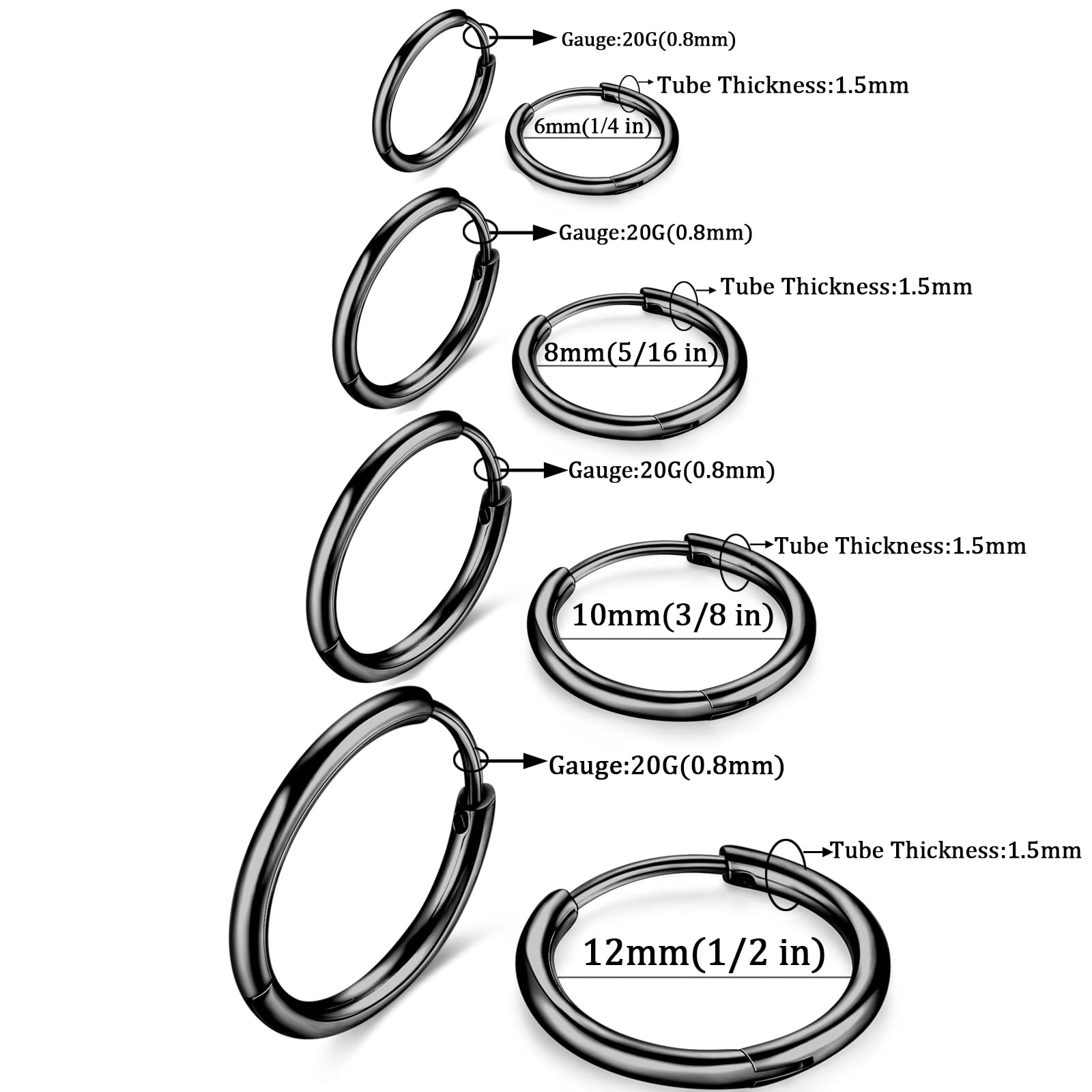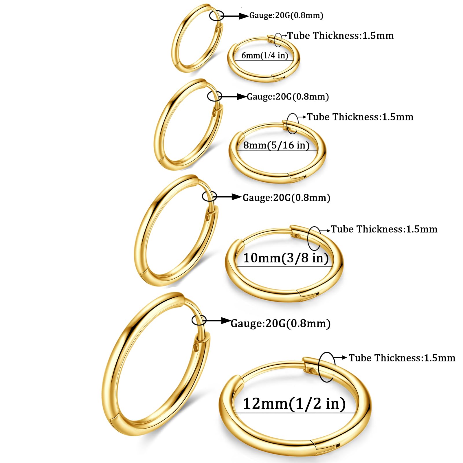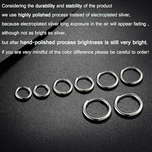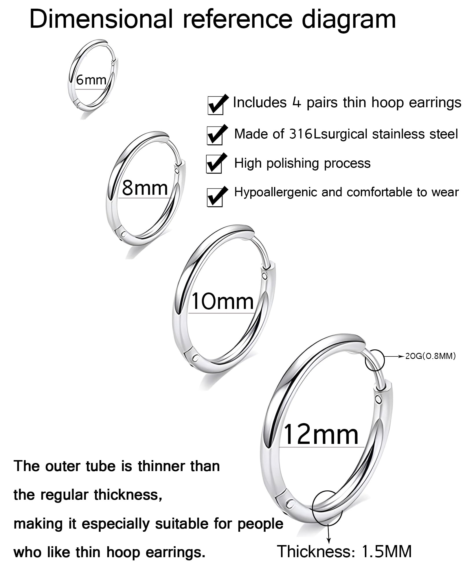 316L Surgical Stainless Steel Huggie Hoop Earrings 6mm 8mm 10mm 11mm 12mm 14mm Hypoallergenic Earrings Hoop Cartilage Helix Lobes Hinged Sleeper Earrings For Men Women Girls