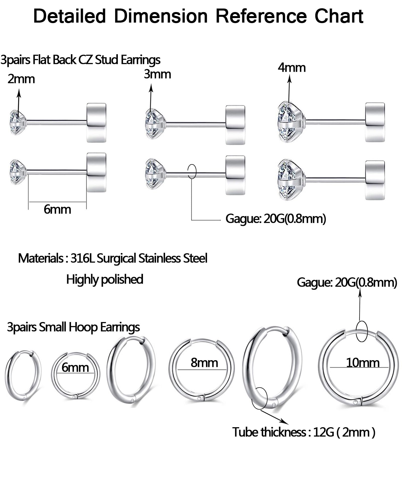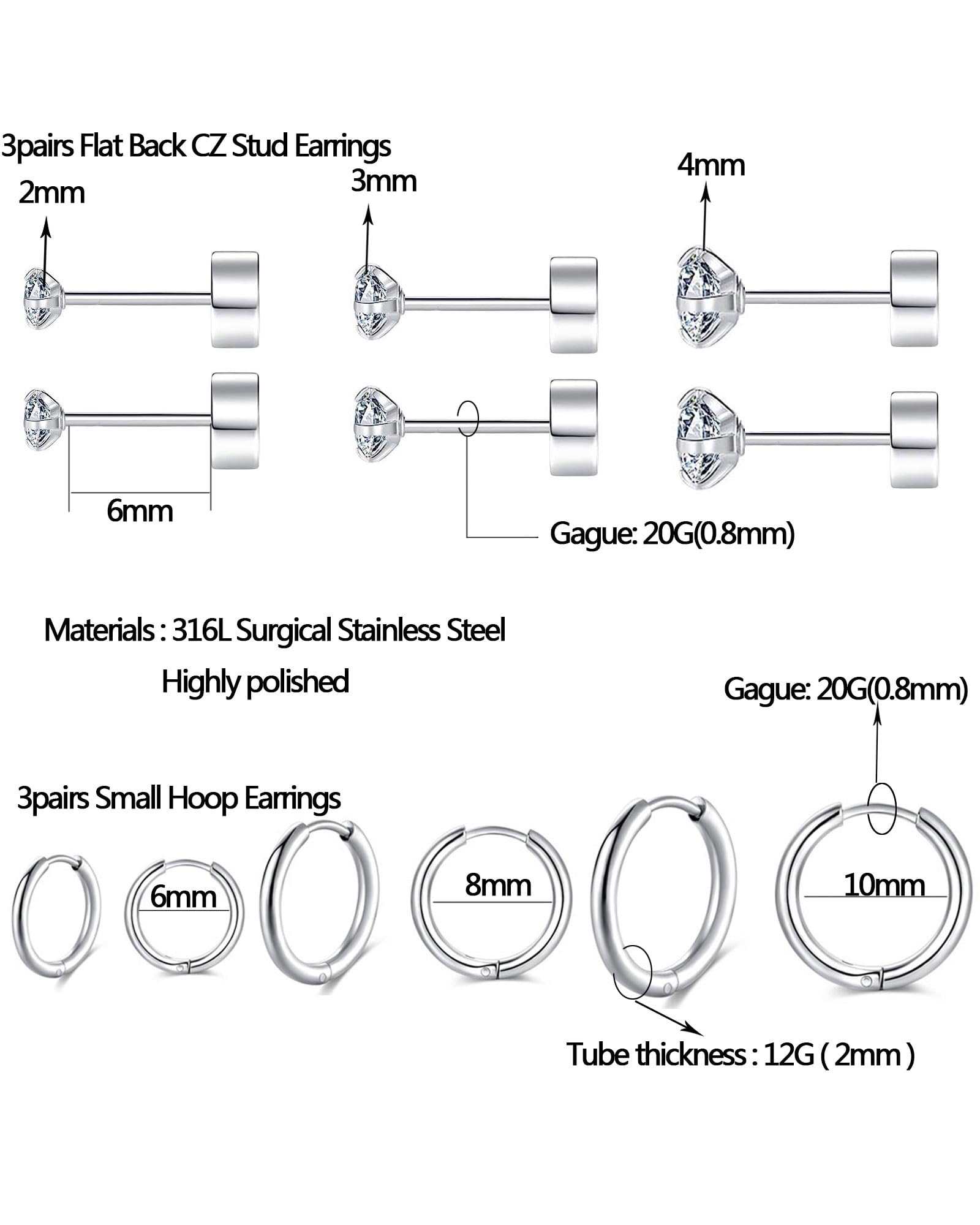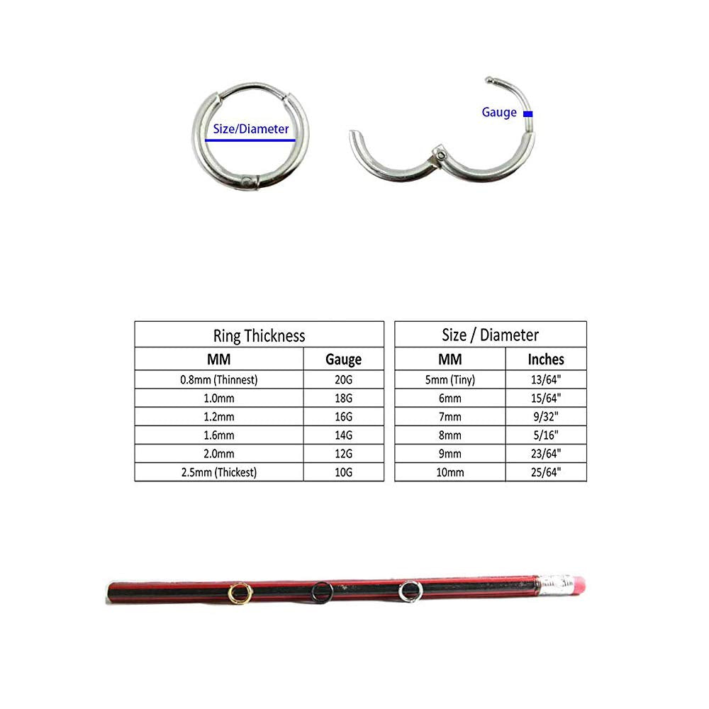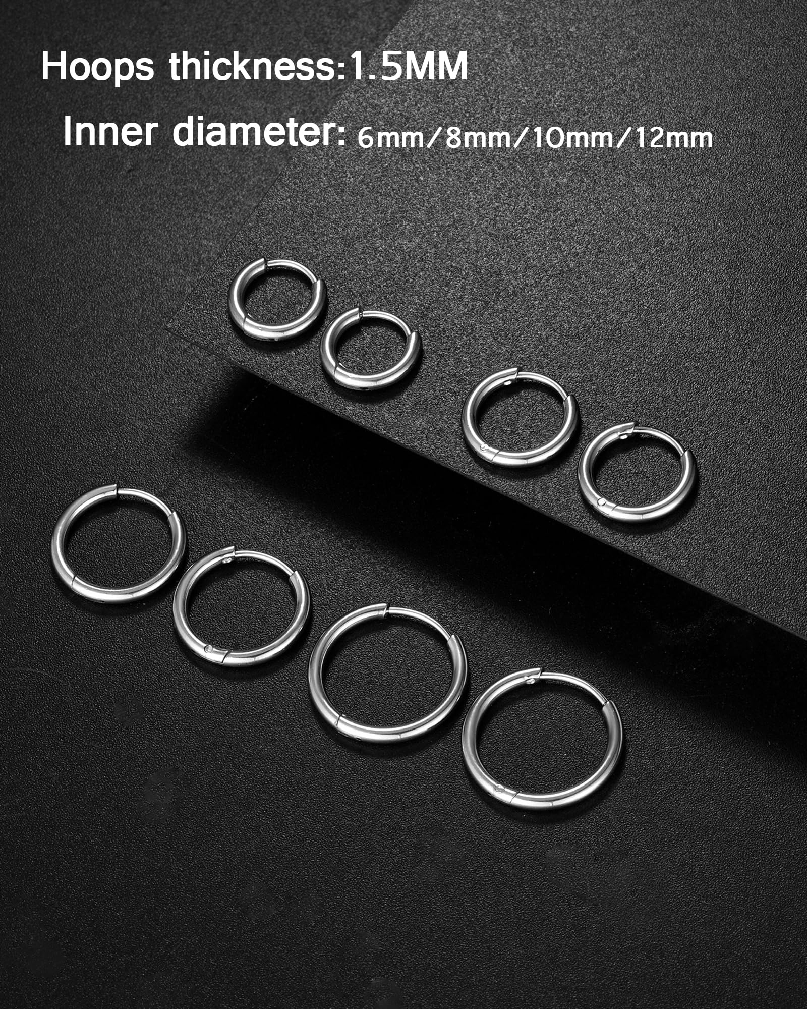 316L Surgical Stainless Steel Huggie Hoop Earrings 6mm 8mm 10mm 11mm 12mm 14mm Hypoallergenic Earrings Hoop Cartilage Helix Lobes Hinged Sleeper Earrings For Men Women Girls