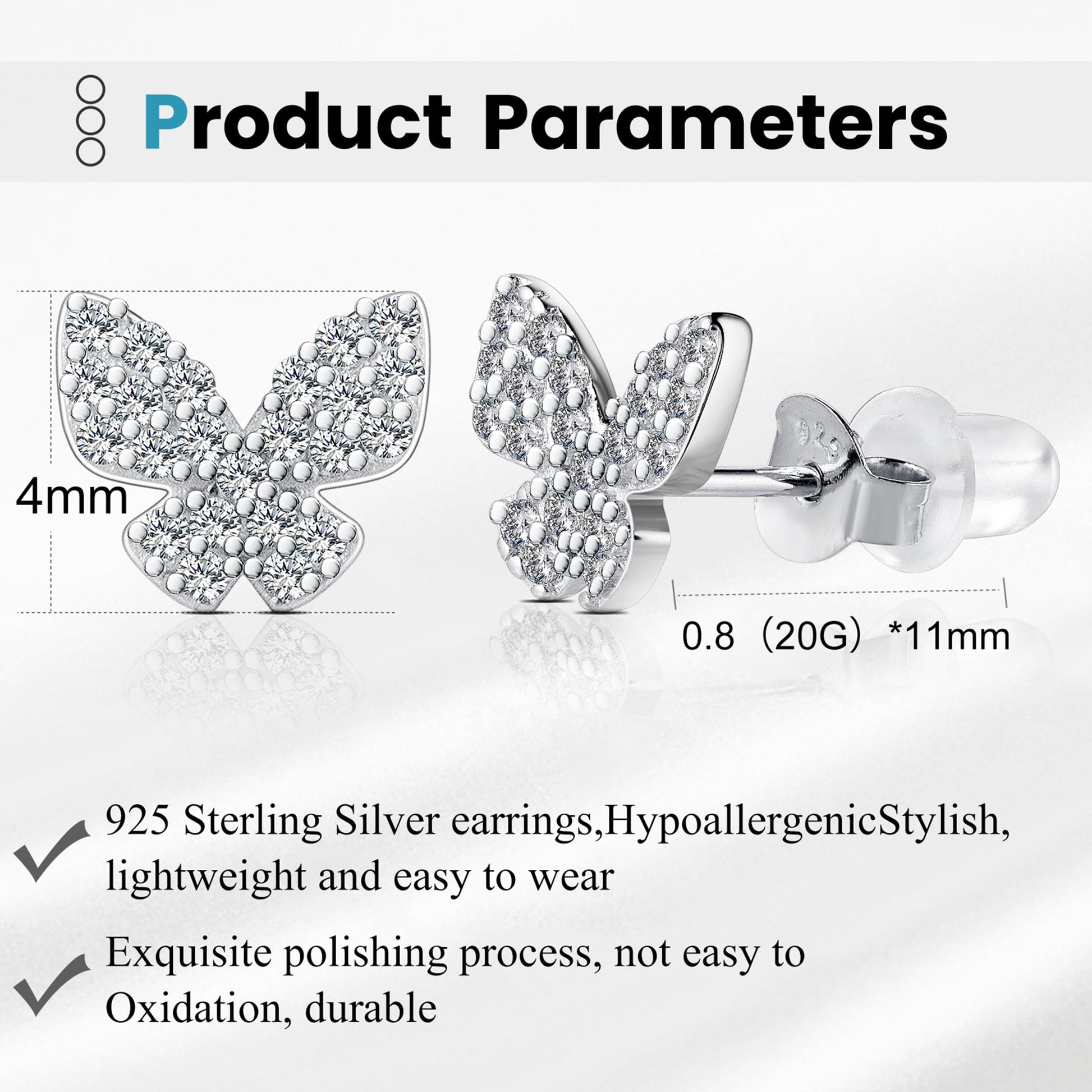 - 𝗦𝗘𝗧 𝗢𝗙 𝟱 𝗣𝗔𝗜𝗥𝗦 - Package includes 5 pairs of stud earrings in 5 sizes, 3mm/4mm/5mm/6mm/8mm. Gauge Size: 20G =0.8mm, pin size: 10 mm. The butterfly buckle add extra protection for you.