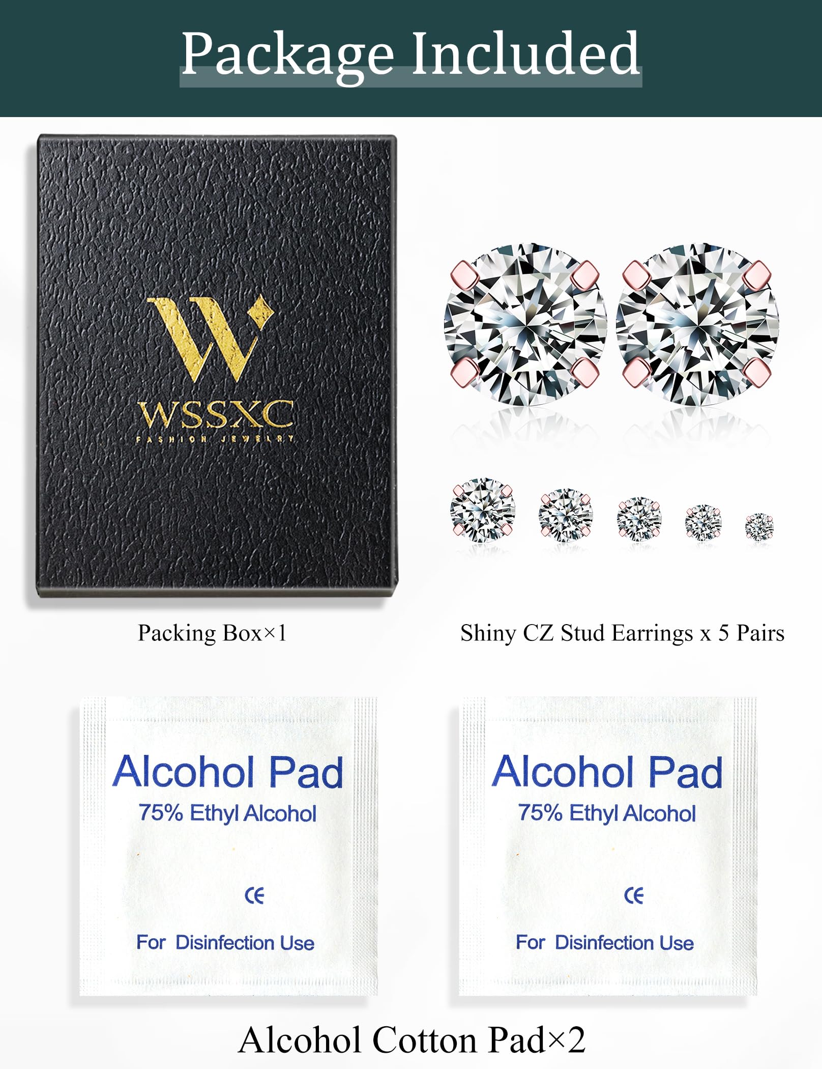 5 Pairs Stud Earrings Set, Hypoallergenic Cubic Zirconia 316L Earrings Stainless Steel CZ Earrings 3-8mm (Steel color)