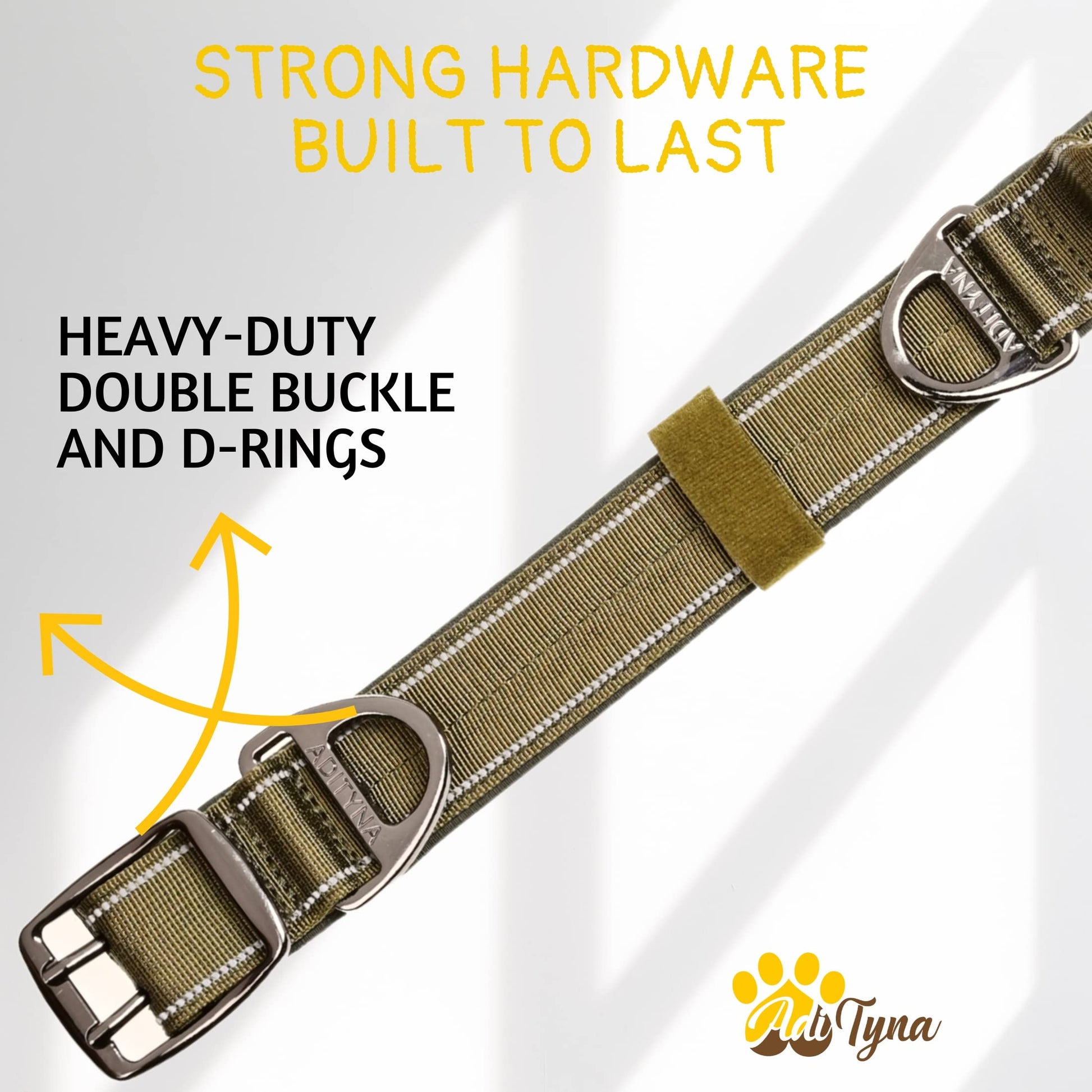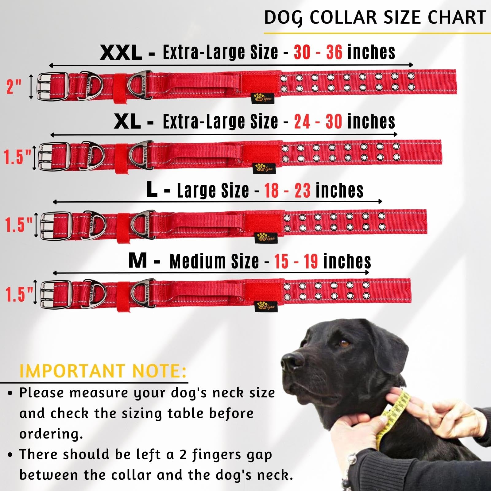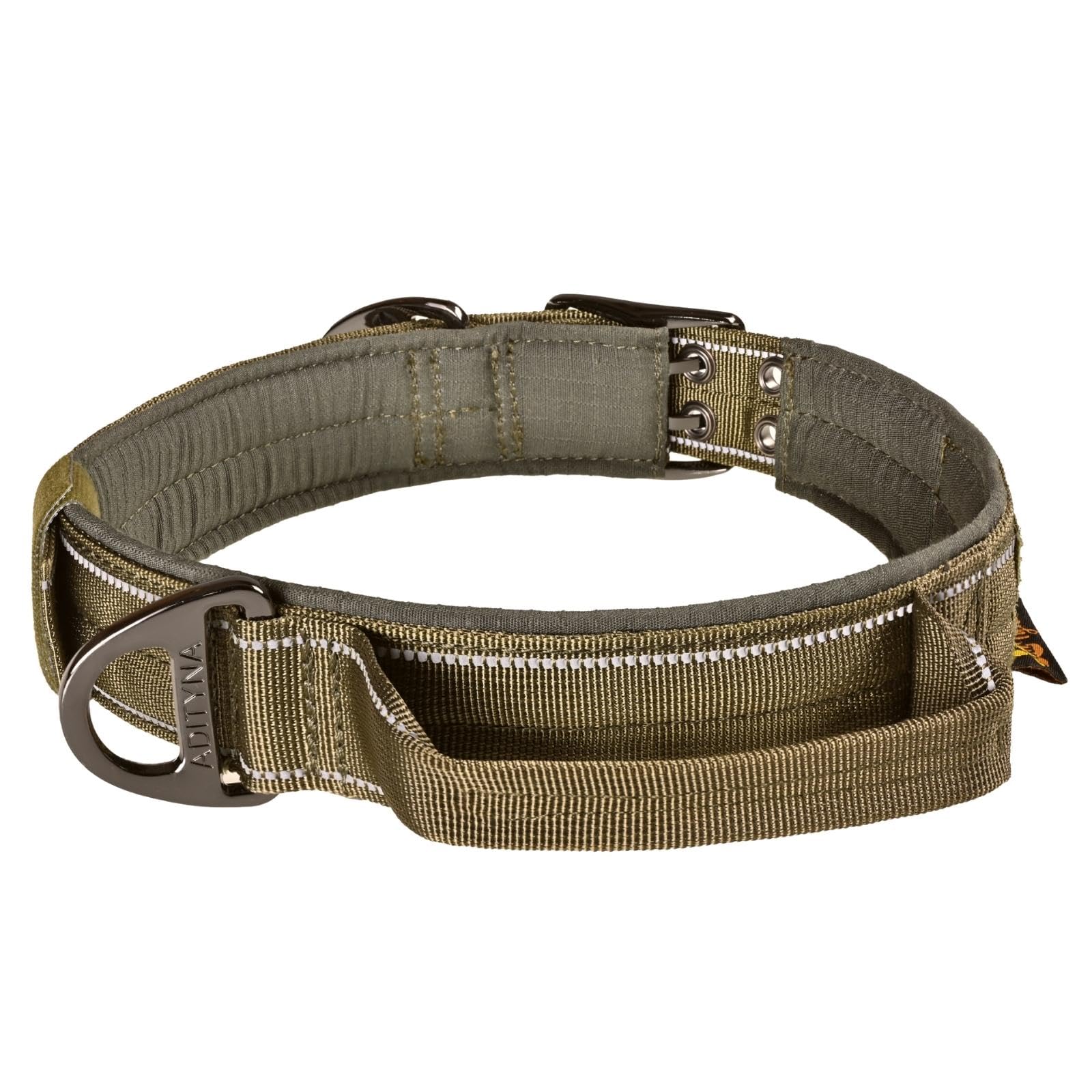 ADITYNA - Heavy Duty Dog Collar with Handle - Thick Dog Collar for Large Dogs - Wide, Reflective, Tactical, Soft Neoprene Padded - Perfect Dog Collar for Training and Walking