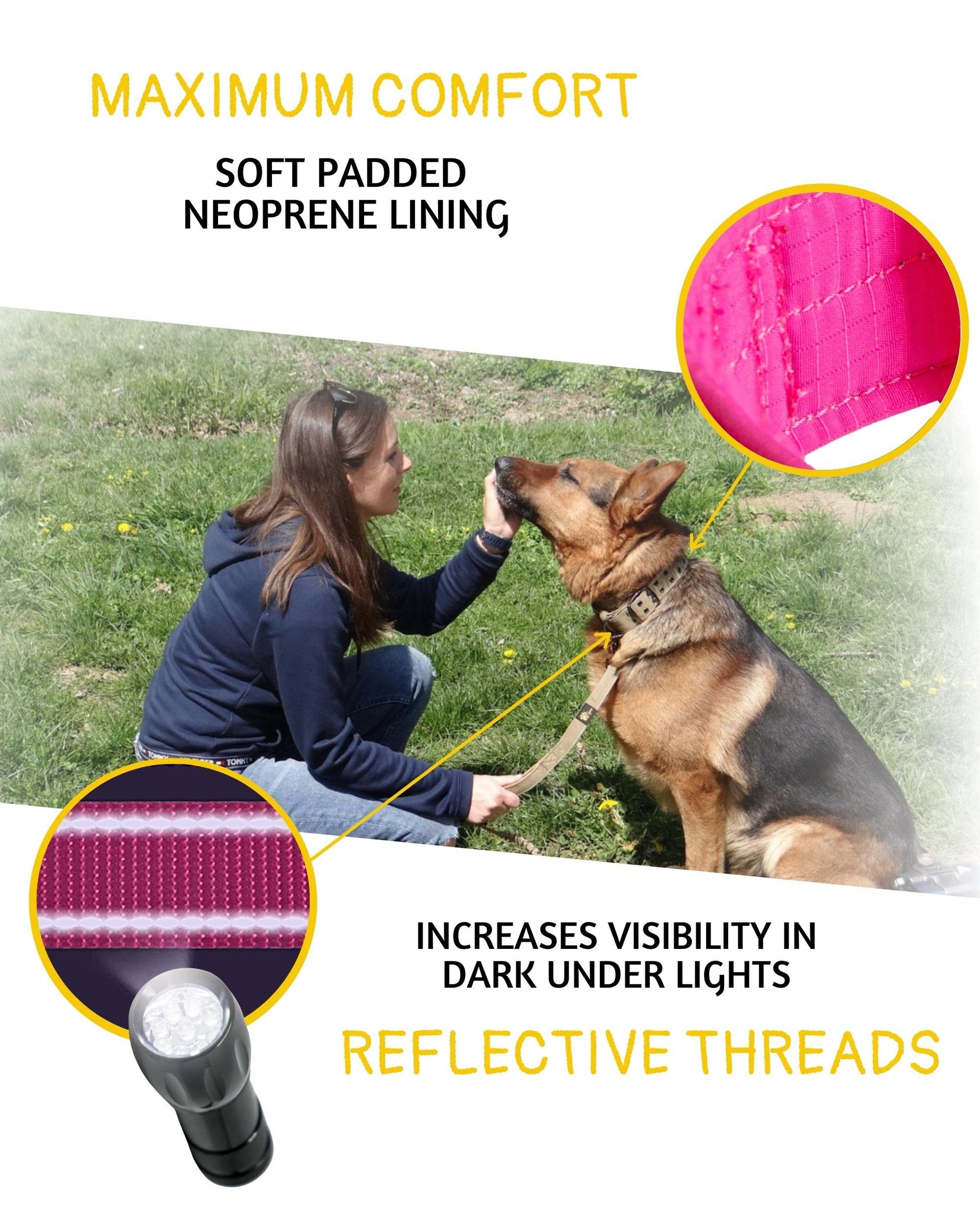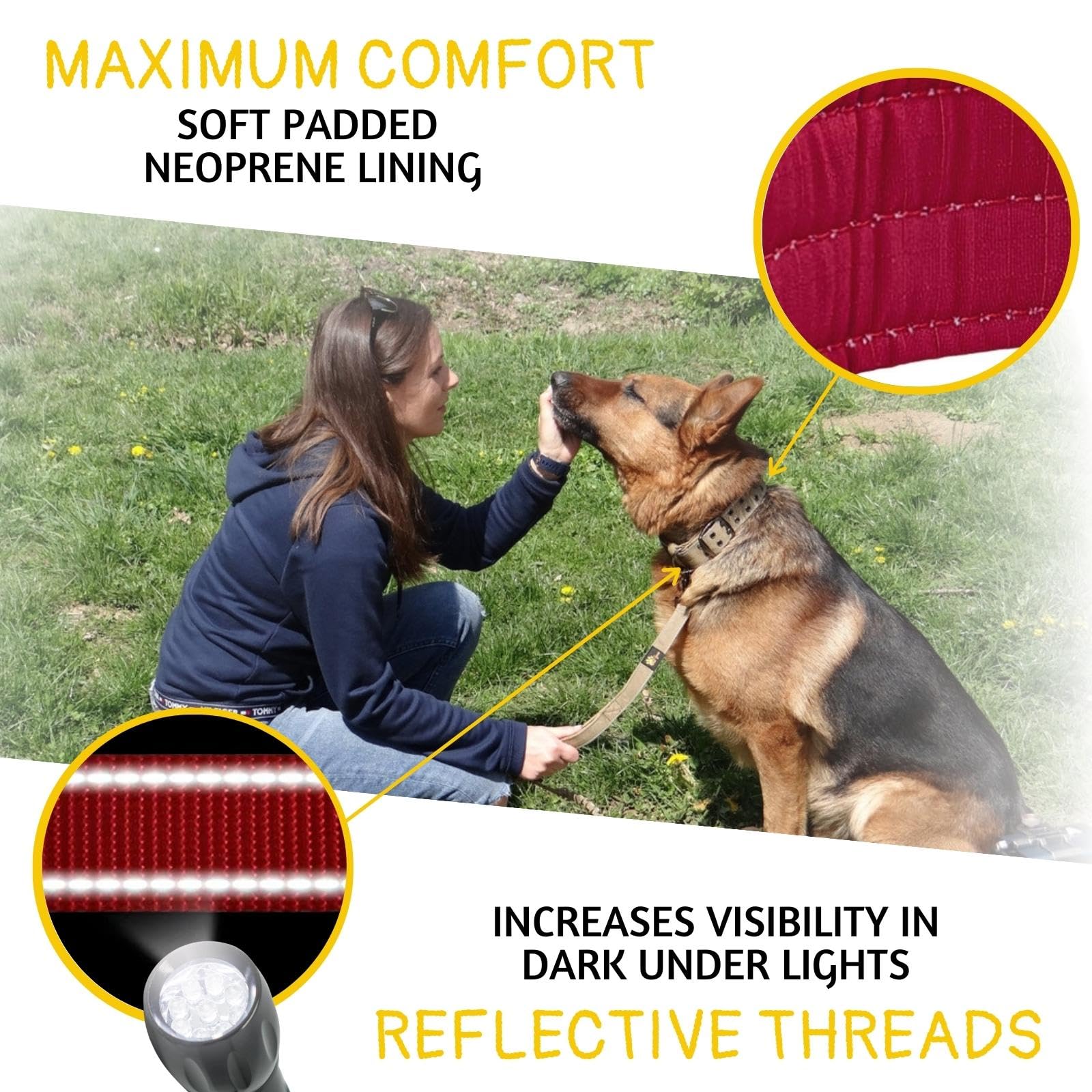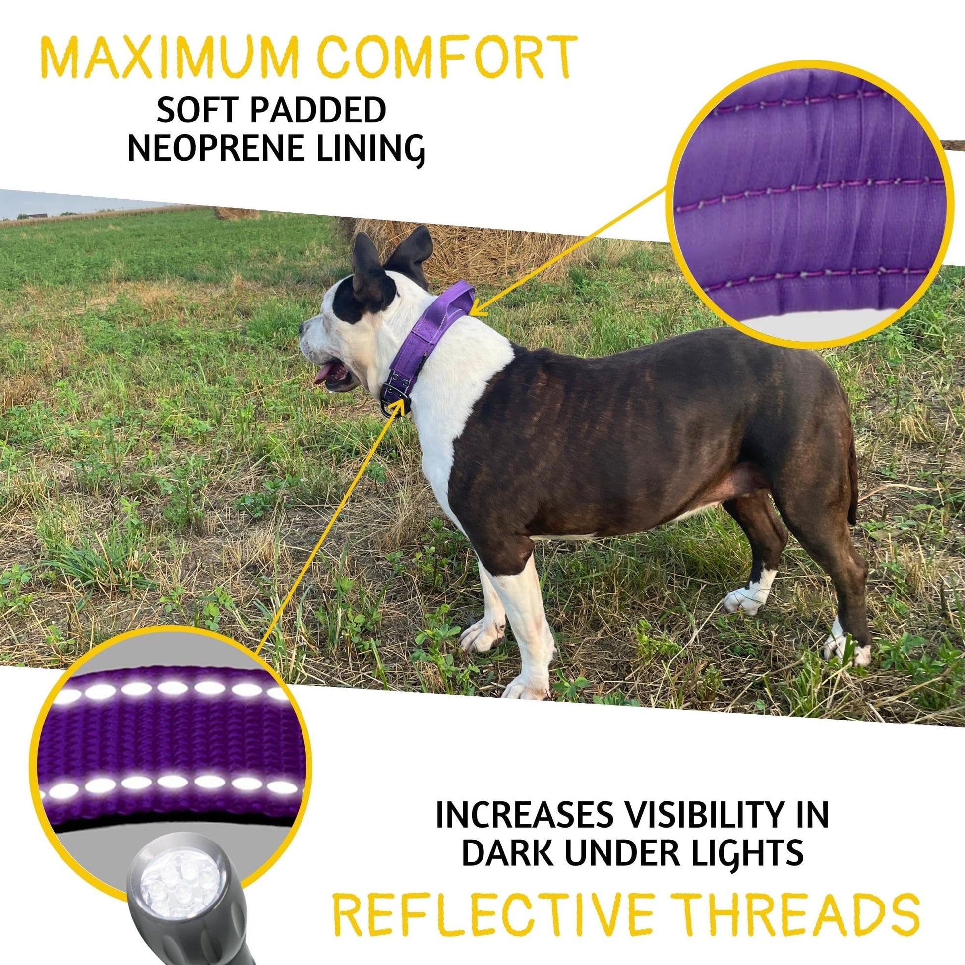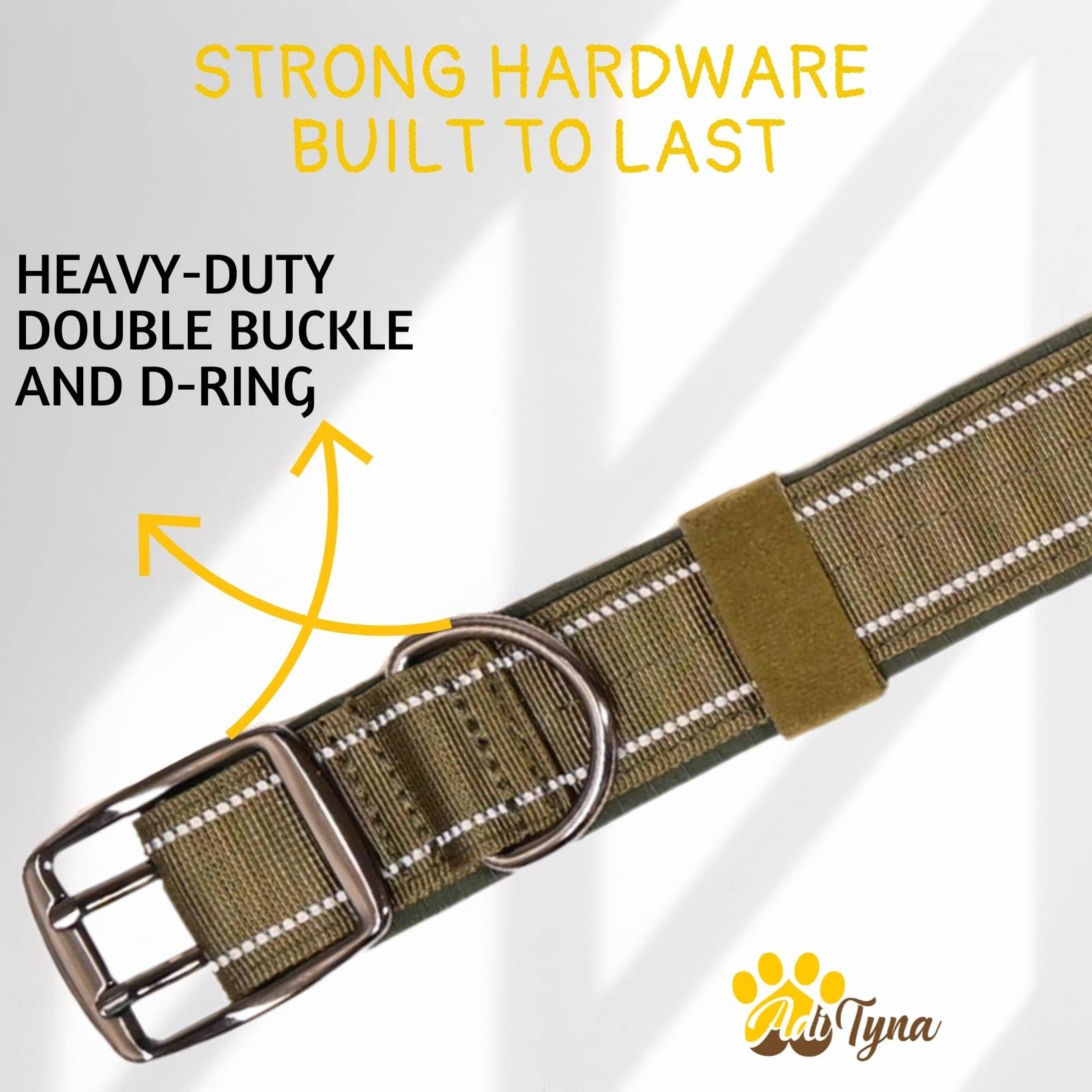ADITYNA - Heavy Duty Dog Collar with Handle - Thick Dog Collar for Large Dogs - Wide, Reflective, Tactical, Soft Neoprene Padded - Perfect Dog Collar for Training and Walking