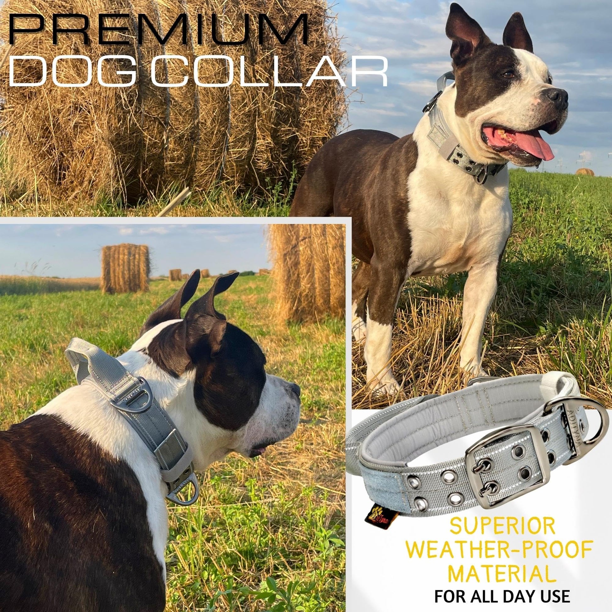PREMIUM MATERIALS TACTICAL COLLAR - Crafted with love for your buddy, our adjustable collars for medium, large or extra-large dogs are made of premium military-grade nylon webbing and feature a heavy-duty double buckle and strong D-ring, so you can easily attach your dog’s leash and enjoy the walk.