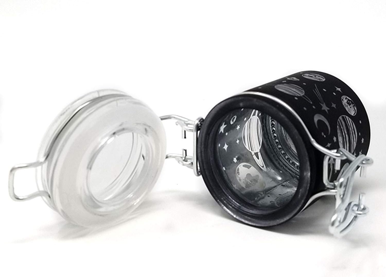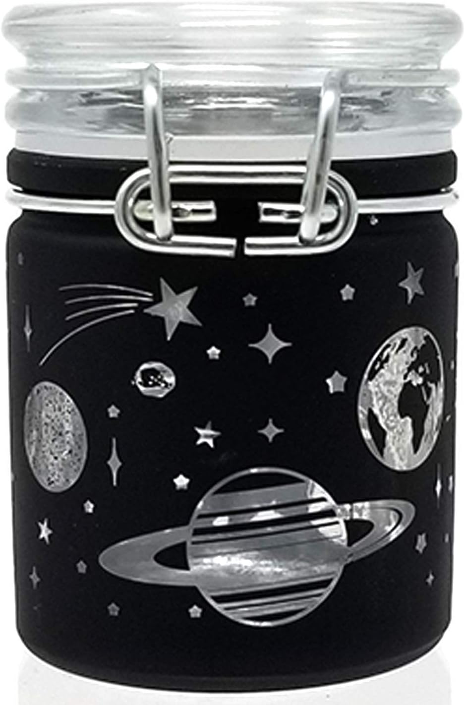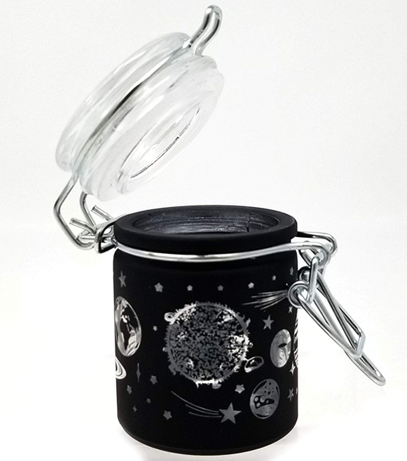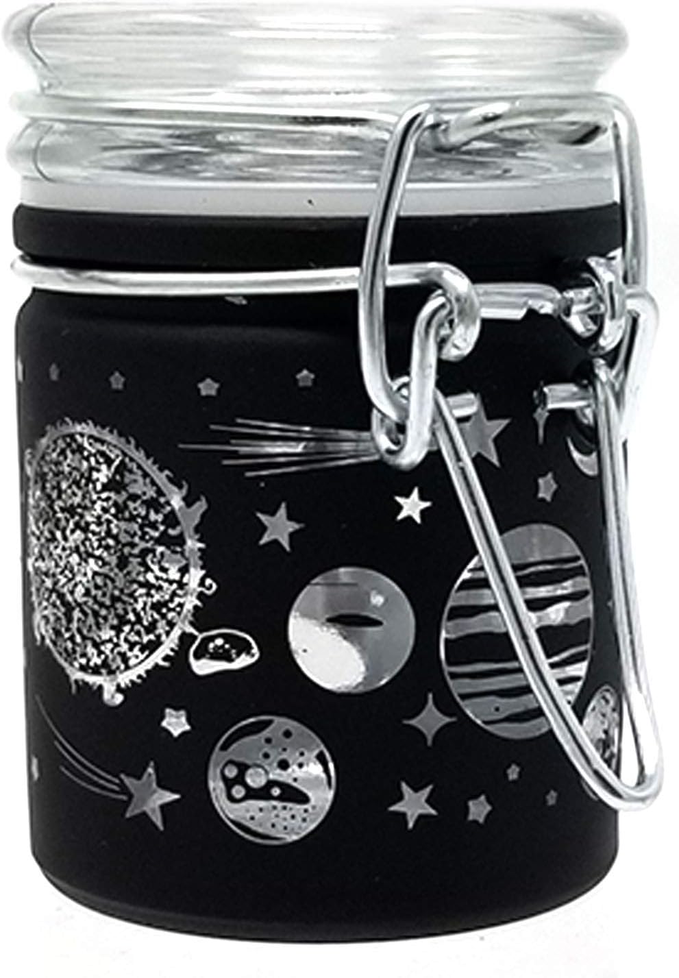 Airtight Glass Herb Stash Jar with Clamping Lid in Choice of Design (Black Frosted Galaxy)