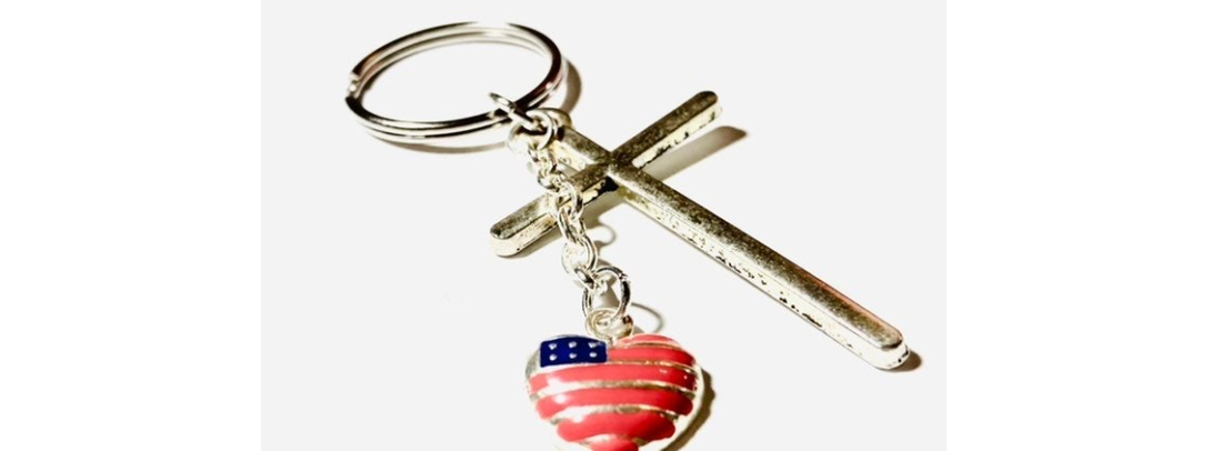 Newly released from the ShopAtLuxe Accessories Collection, our Americana Keychain will turn a set of keys into a uniquely you accessory! Description: - a custom crafted key chain with two pendants and steel keychain. - a high quality iron/metal split key ring (approx 1") - organza gift bag included for easy gift giving - complimentary gift included
