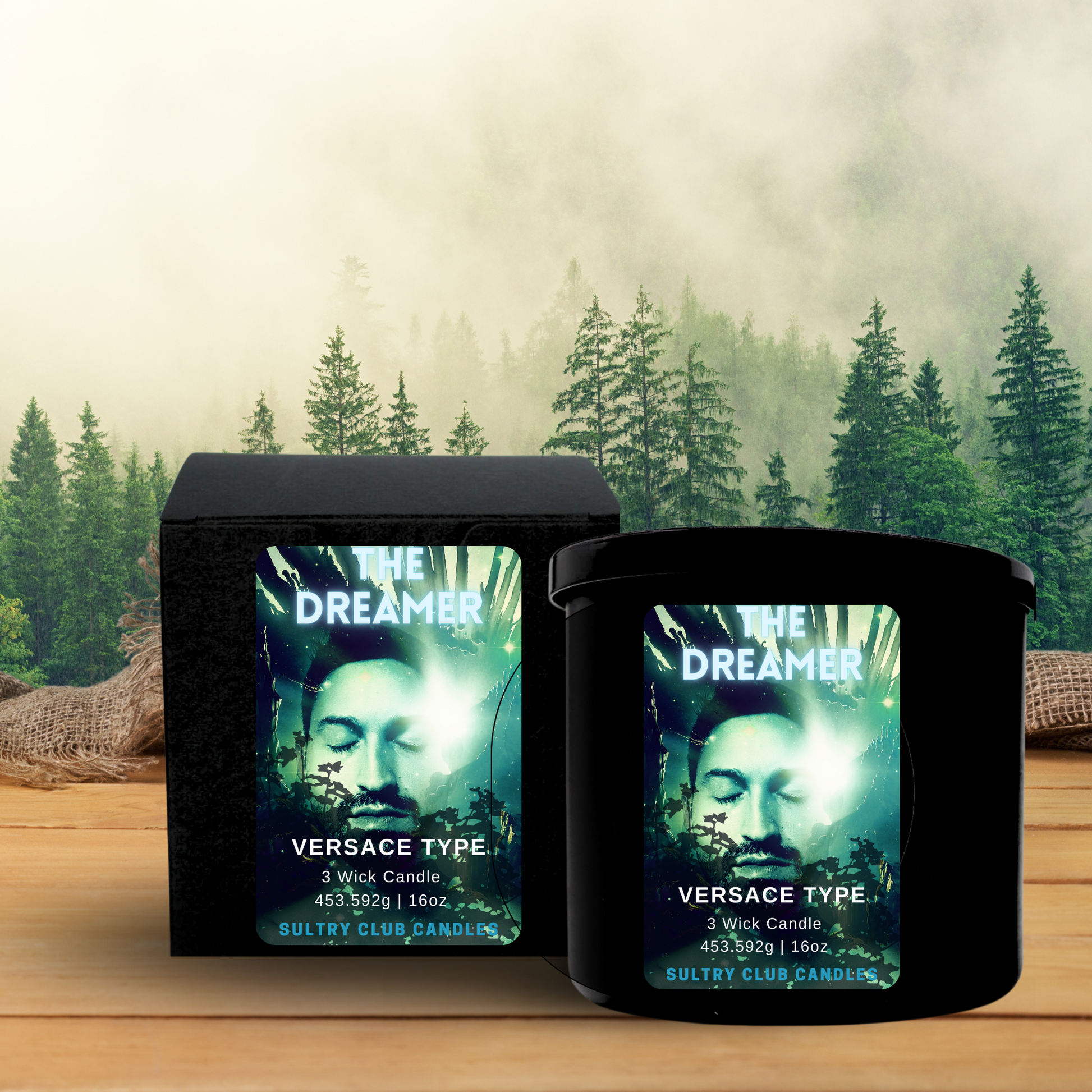 New from the Sultry Club, enjoy our version of The Dreamer by Versace, an adventurous, masculine fragrance, with an air of mystery. The Dreamer starts sweet and gradually dries down to a warm woody scent. Top notes are Lavender, Sage and Mandarin Orange; middle notes are Tobacco, Rose, Carnation and Geranium; base notes are Tonka Bean, Fir, Vetiver and Cedar. Light this candle or heat our wax melts, and experience a sensual and relaxing atmosphere!