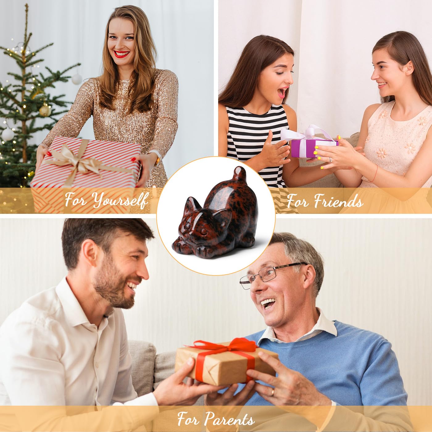 Crystal cats are perfect for birthday and holiday gifts. You can give it to your relatives, friends, loved ones, or you can give it to yourself to help with meditation and yoga.