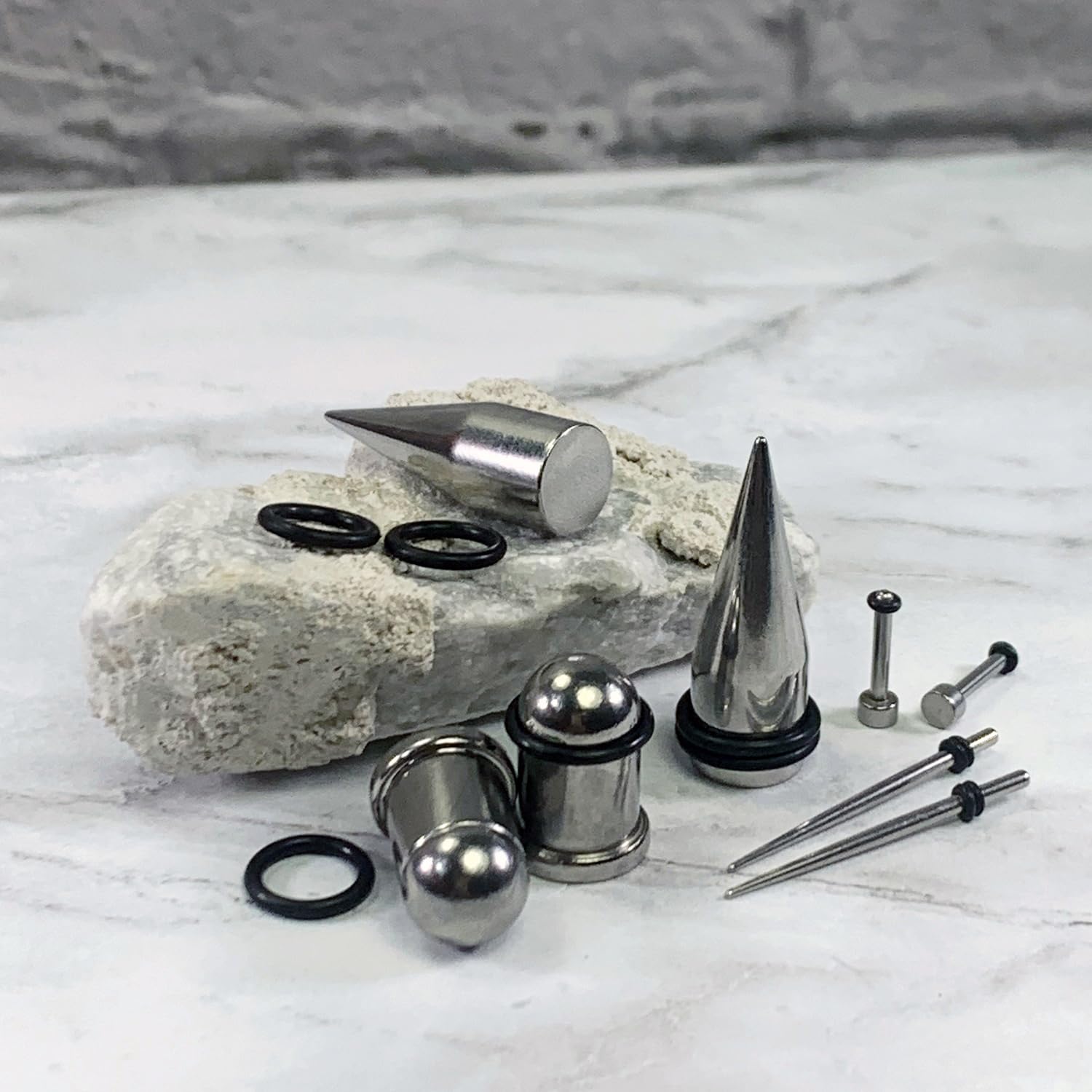 Explore our awesome ear stretching kits, packed with a variety of cool colors and unique styles you won't find anywhere else! From vibrant hues to one-of-a-kind designs, we have styles for everyone! Don't settle for the ordinary; elevate your style with our standout selection.