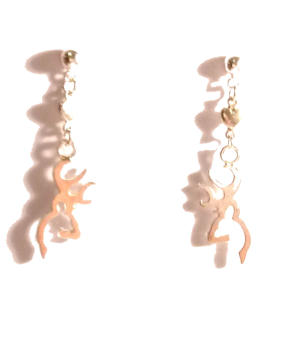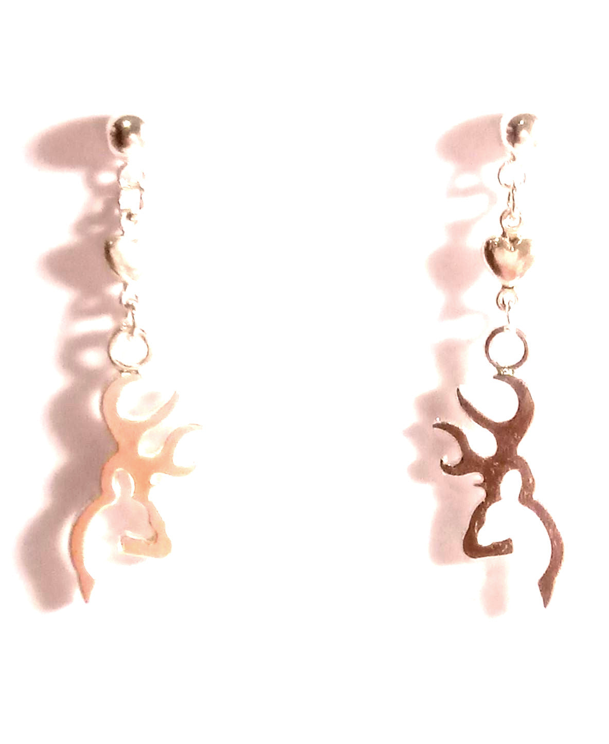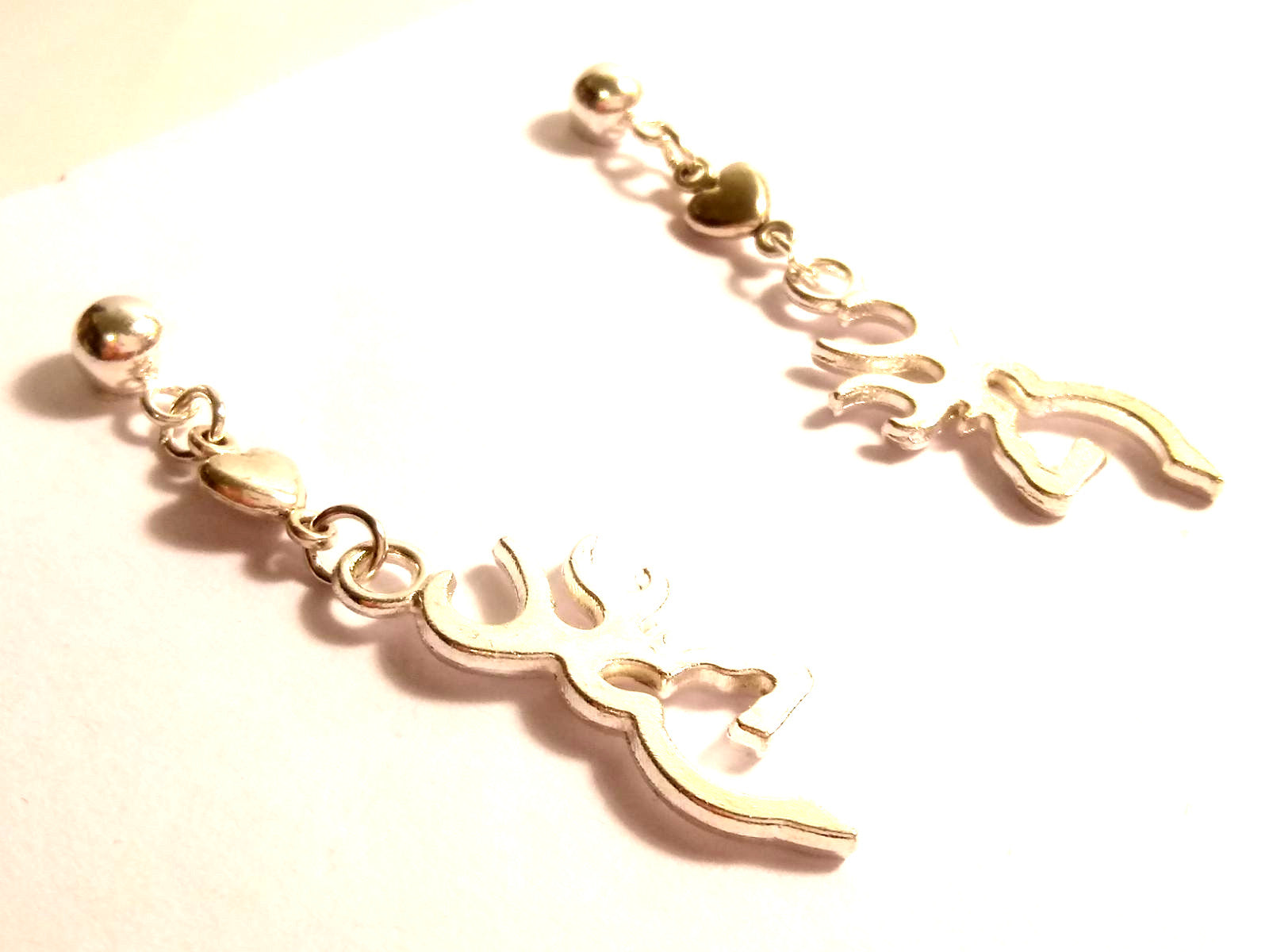 A new addition to our Ear Bijoux Collection, this handcrafted design features sterling silver Browning Buck deer silhouette charms, suspended from tiny silver hearts. Drop length is 1.9 inches. Traditional silver ball posts with soft silicone closures to provide a secure and comfortable fit. Lead and nickel free. Hypoallergenic. Complimentary gift with purchase.