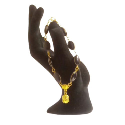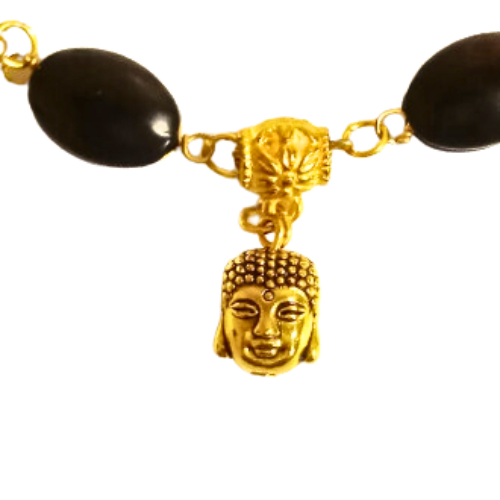 Newly handcrafted from our ShopAtLuxe Global Tour Collection, this eye catching gold wire wrapped beaded bracelet features a centered gold Buddha suspended from an ornate bail, and highlights the influence of our chief designer's Asian and American ancestry. measures 7.5 inches. Light weight, comfortable fit. Ideally for average, medium wrists. Hypoallergenic; lead and nickel free. If you're needing a size adjustment, please contact us! Complimentary gift with purchase!