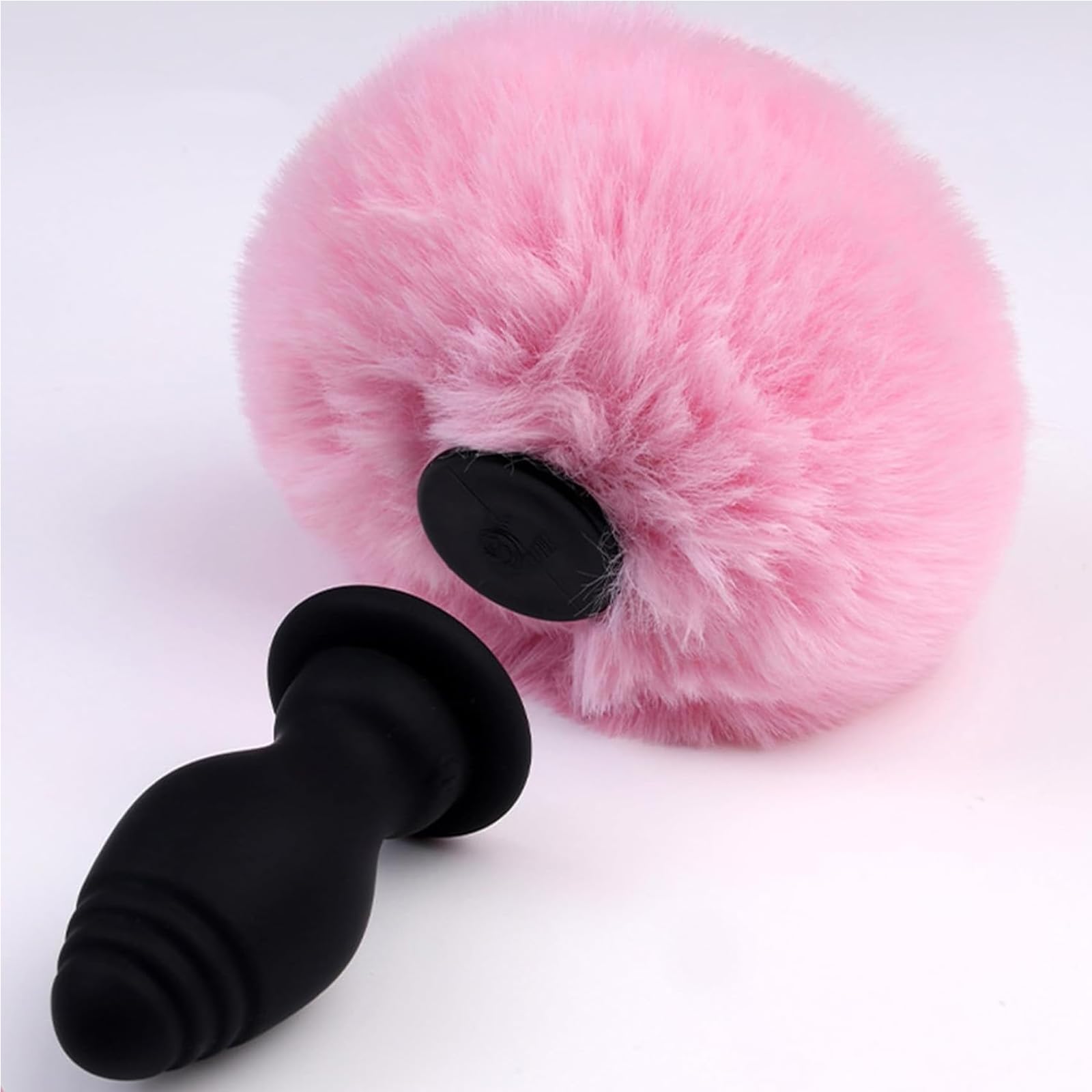 Bunny Tail Anal Plug Vibrator, Soft Silicone Butt Plug with Pink Faux Fur, Wireless Remote Control Design, Rabbit Tail Trainer for Adult Sex Toys for Role Play Cosplay Women, Men and Couples, Cute Sex