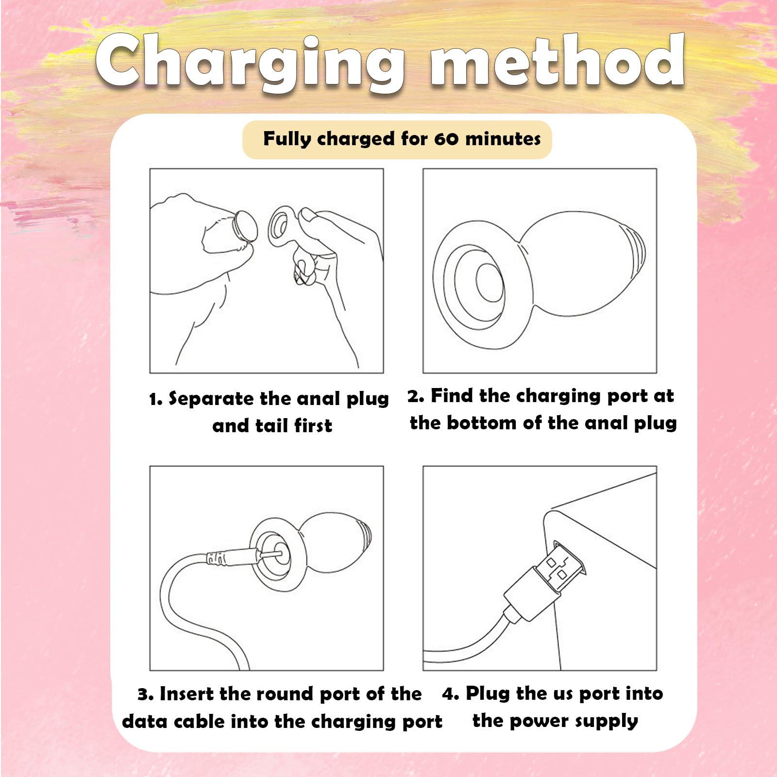 The bunny tail plug is rechargeable. You can charge it by connecting it to the power supply with the USB charging cable. It can last for an hour when fully charged.