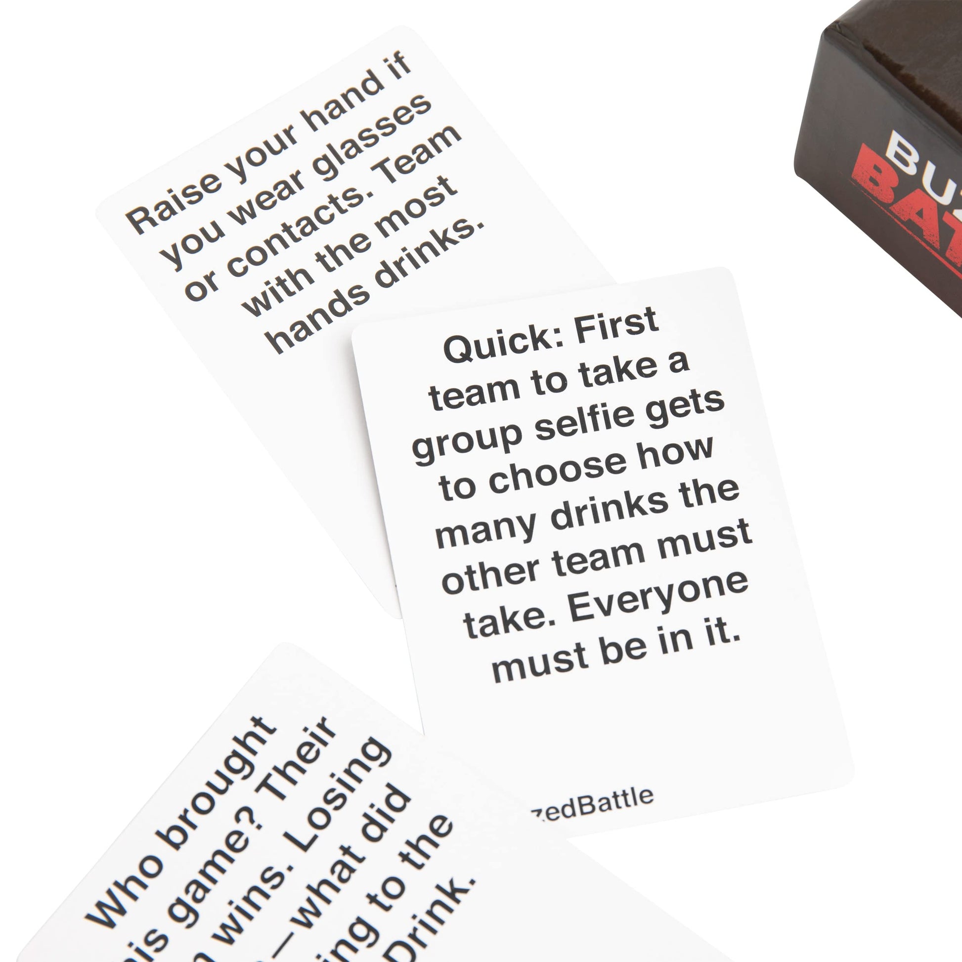 - How to Play: It’s simple — split into two teams and take turns drawing a card from the top of the deck. When it’s your turn, read the card out loud and either your team or the other team will drink based on the prompt on the card. Lather, rinse, repeat until you’re buzzed! Designed for 3 to up to 20 players.