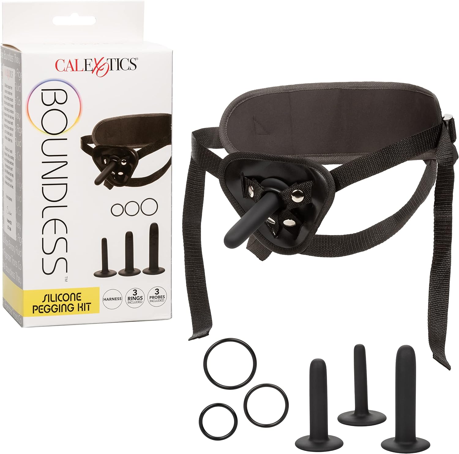 CalExotics Boundless Silicone Pegging Kit with Adjustable Strap On Harness - SE-2700-75-3 Black
