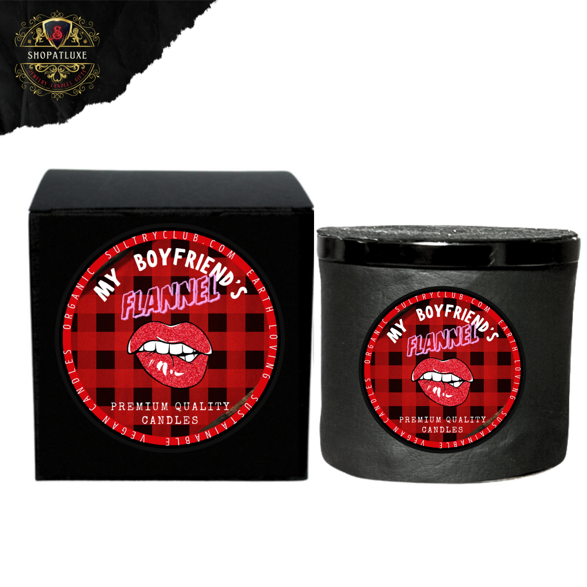 Get up close and personal with the arousing fragrance of My Boyfriend's Flannel Candle! Fragrance notes: fresh bergamot, heirloom mahogany, cedar and soft musk.