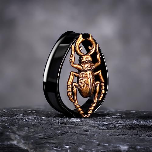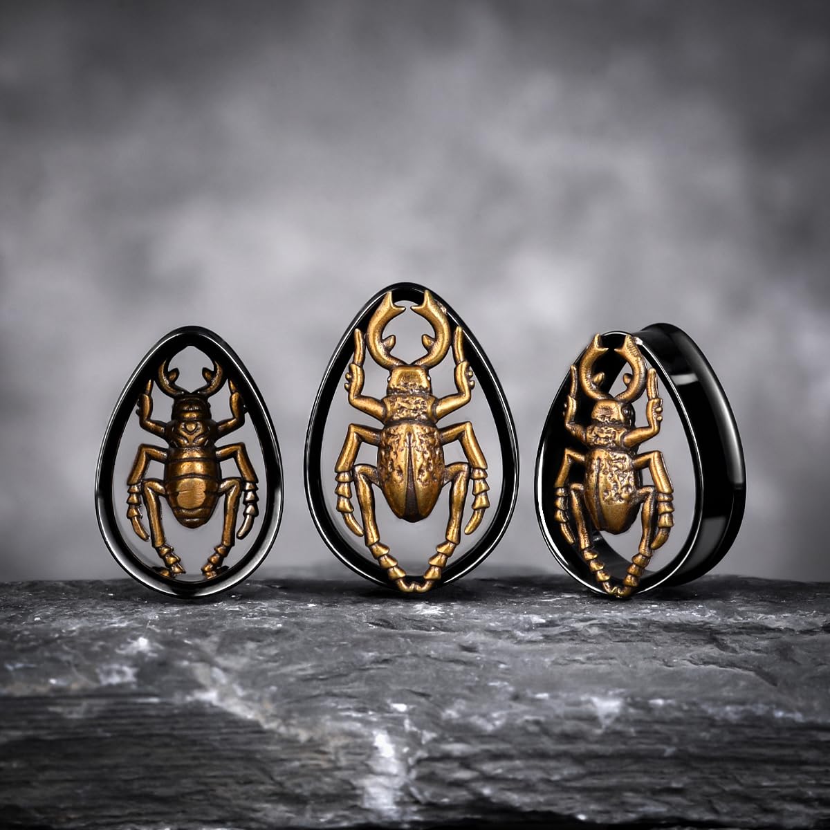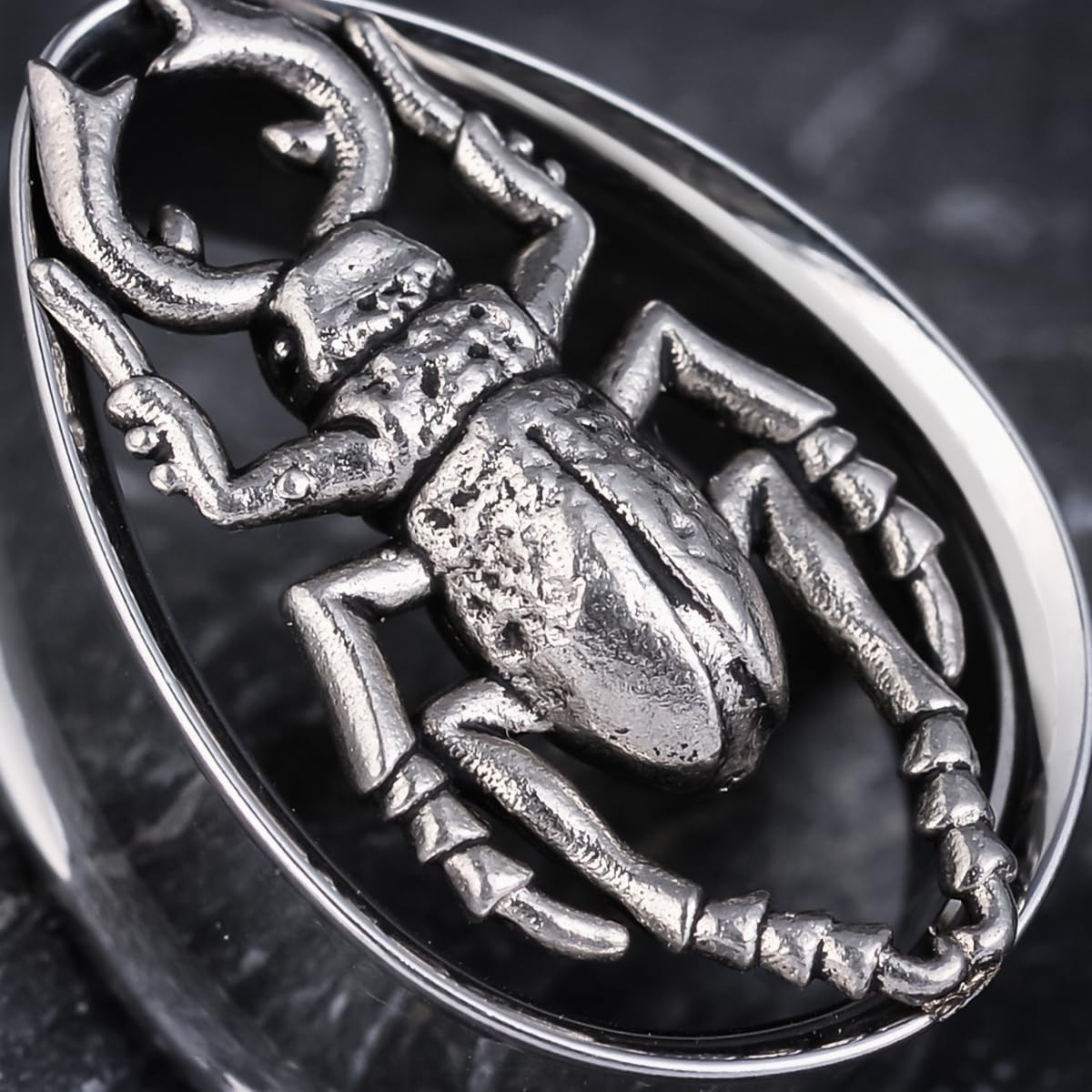COOEAR 1 Pair Double FLared Tear Drop Ear Tunnels Piercing Stainless Steel Scarab Gauges Silvery Earrings Plugs 0g to 1".
