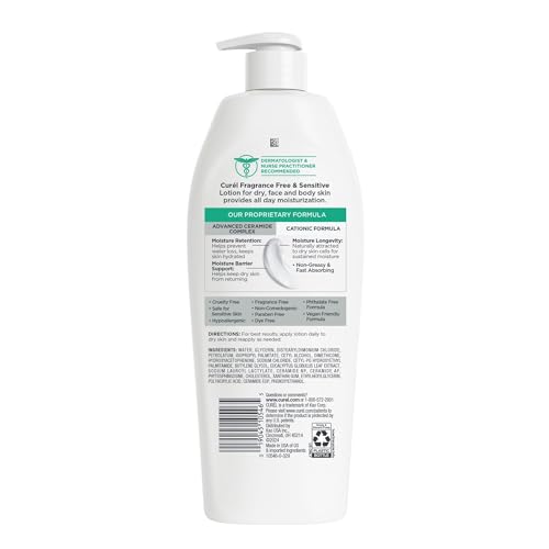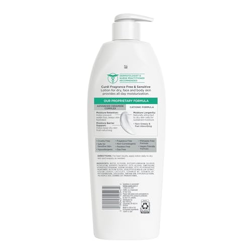 Curel Fragrance Free Comforting Body Lotion, Unscented Dry Skin Moisturizer for Sensitive Skin, with Advanced Ceramide Complex, Repairs Moisture Barrier, 20 oz