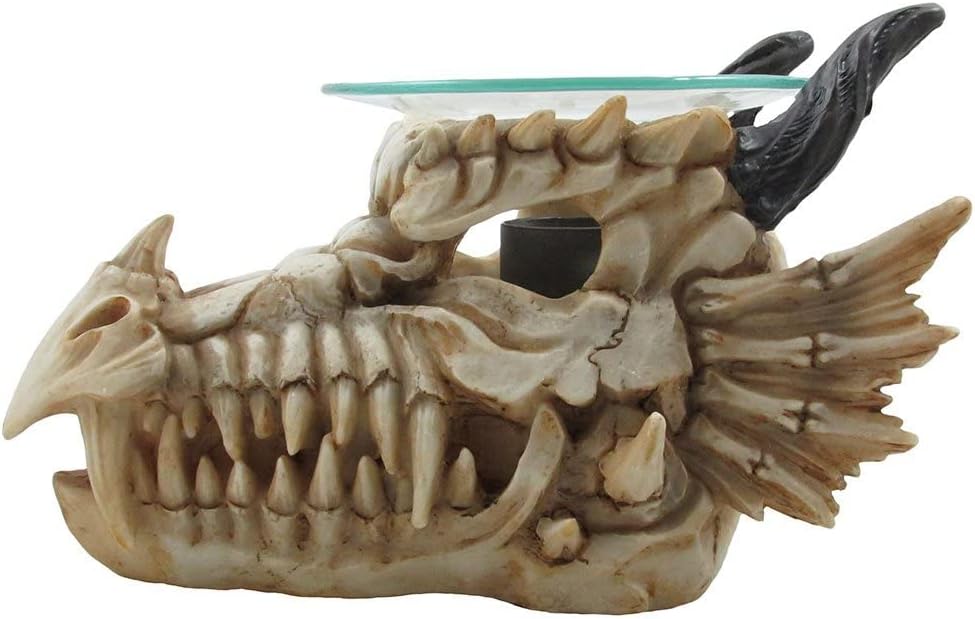 Decorative Snarling Magical Dragon Skull Electric Oil Diffuser or Tart Burner for Aromatherapy Essential Scented Oils in Mythical and Medieval Home Decor Lights Halloween Decorations & Gothic Gifts
