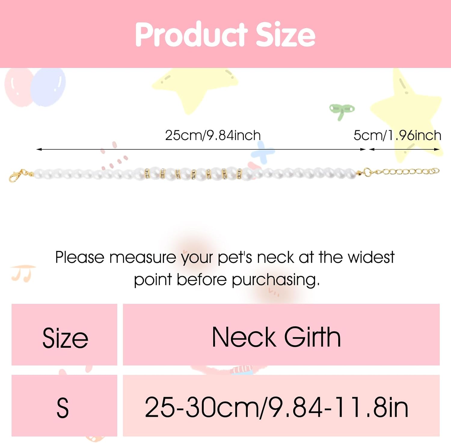 - 【Adjustable Size】Fancy dog pearl collar, neck circumference adjustable from 9.8" to 11.8". Please measure your pet's neck circumference and refer to our size chart before placing an order.