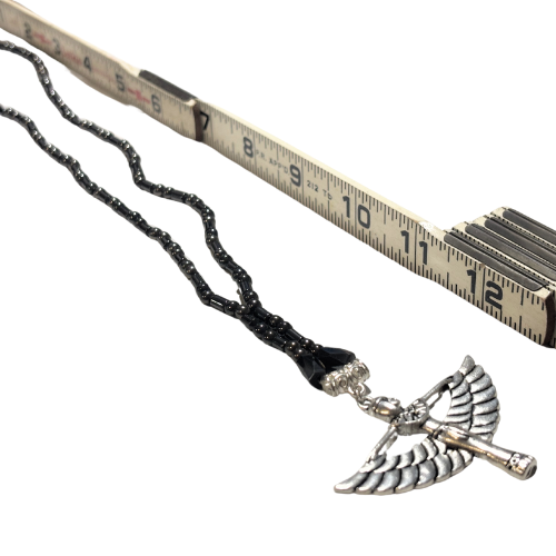 Our newest hand beaded necklace starts with delicate Hematite beads that bring a sparkle and elegance to this design. Finished off with a stunning Egyptian Pharoah Goddess pendant, suspended from an embellished bail. This signature piece from our Global Tour Collection is a limited edition piece. Complimentary gift with purchase.