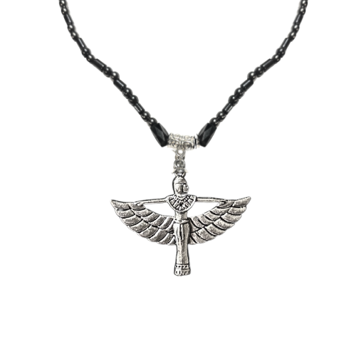 Egyptian Pharoah Goddess Beaded Hematite Necklace