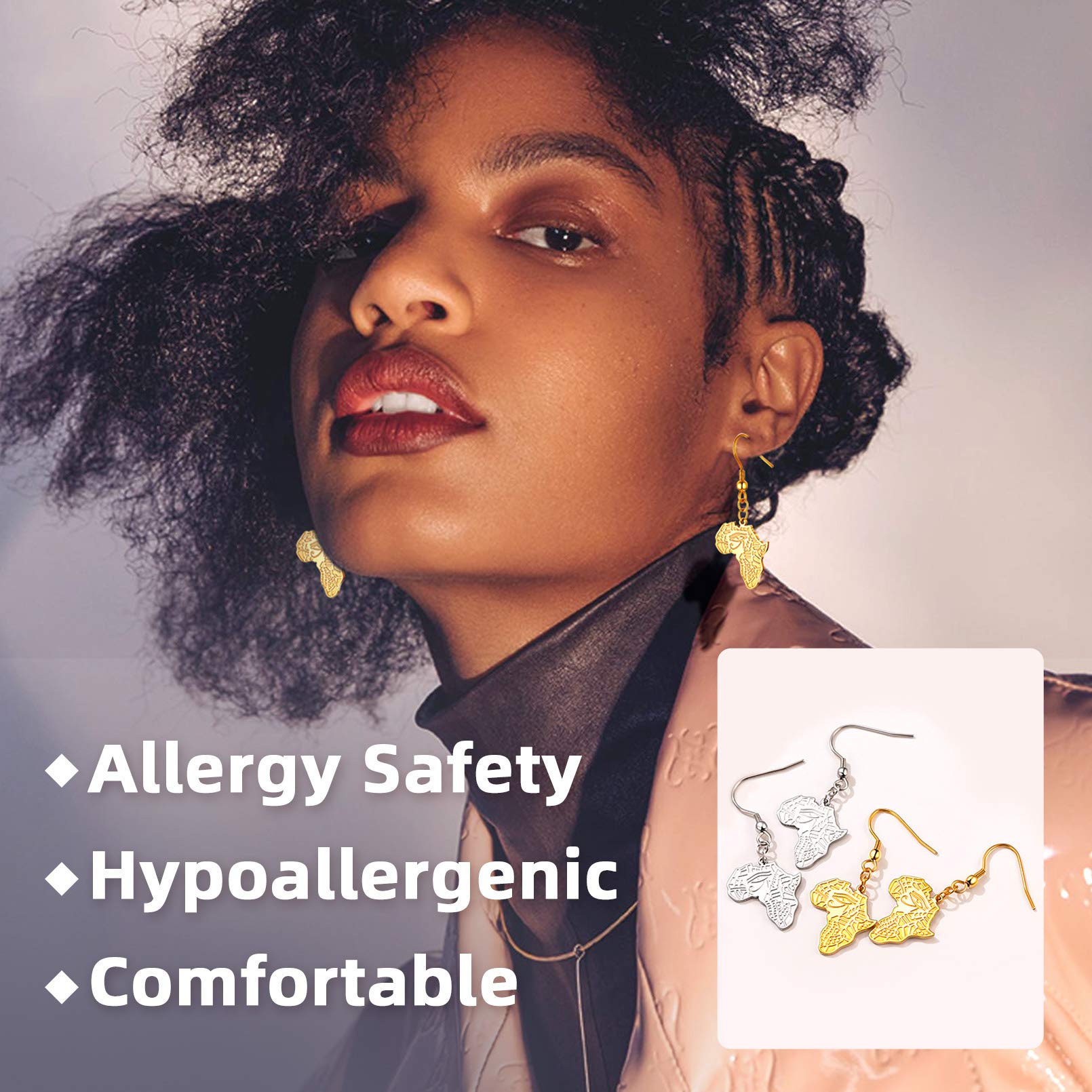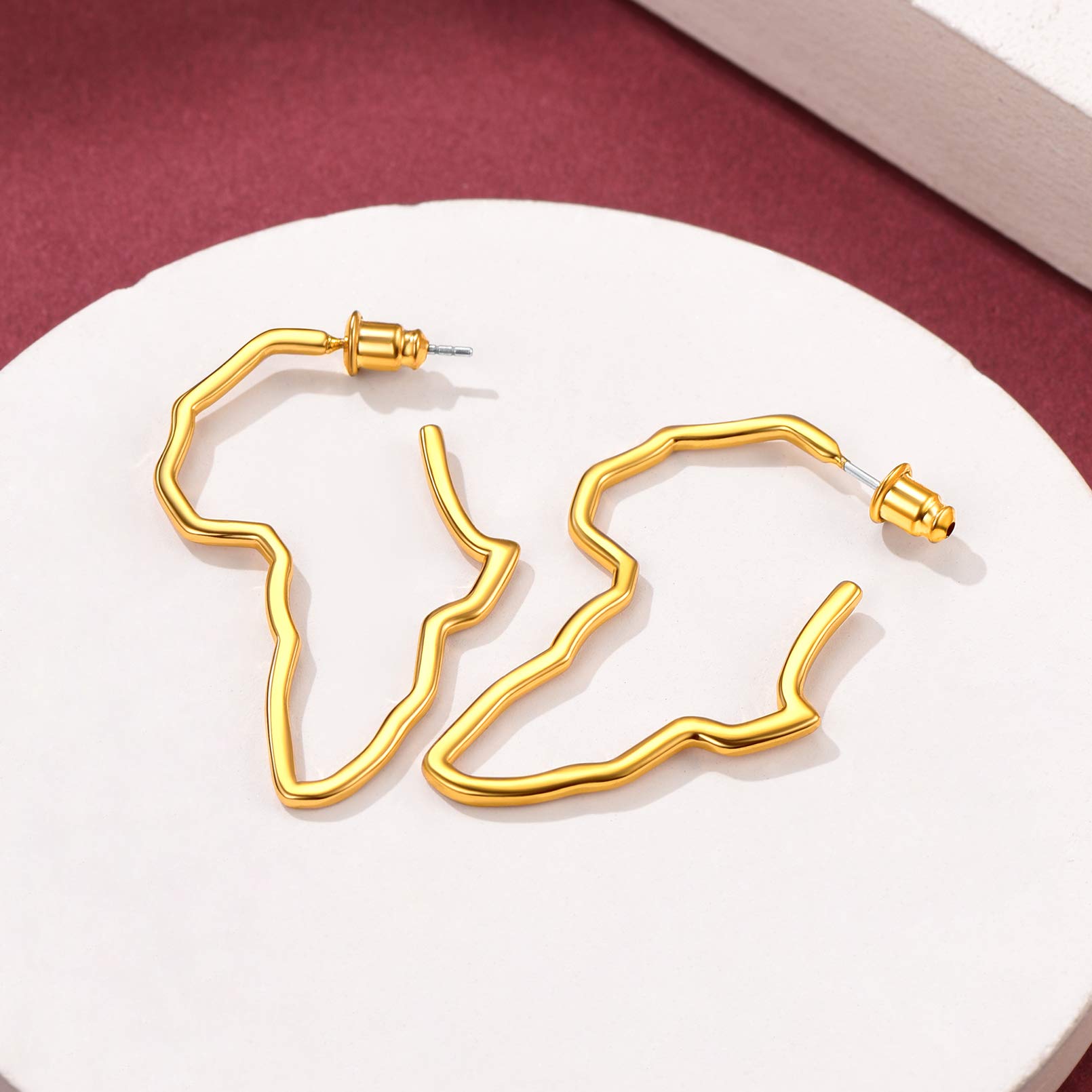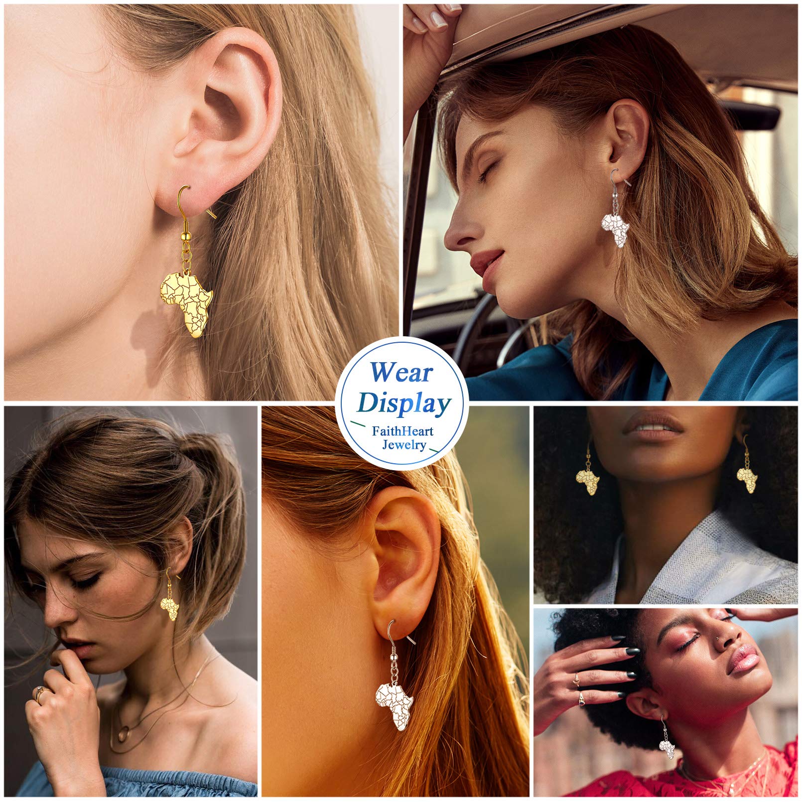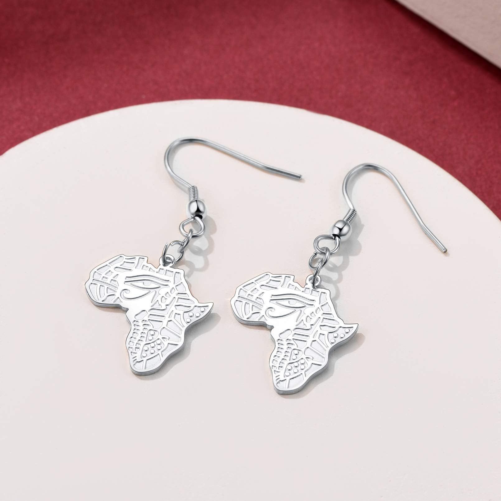 FaithHeart African Map Shaped Drop Earrings Stainless Steel/18K Gold Plated Statement Africa Jewelry Ear Charms for Women Teen Girls