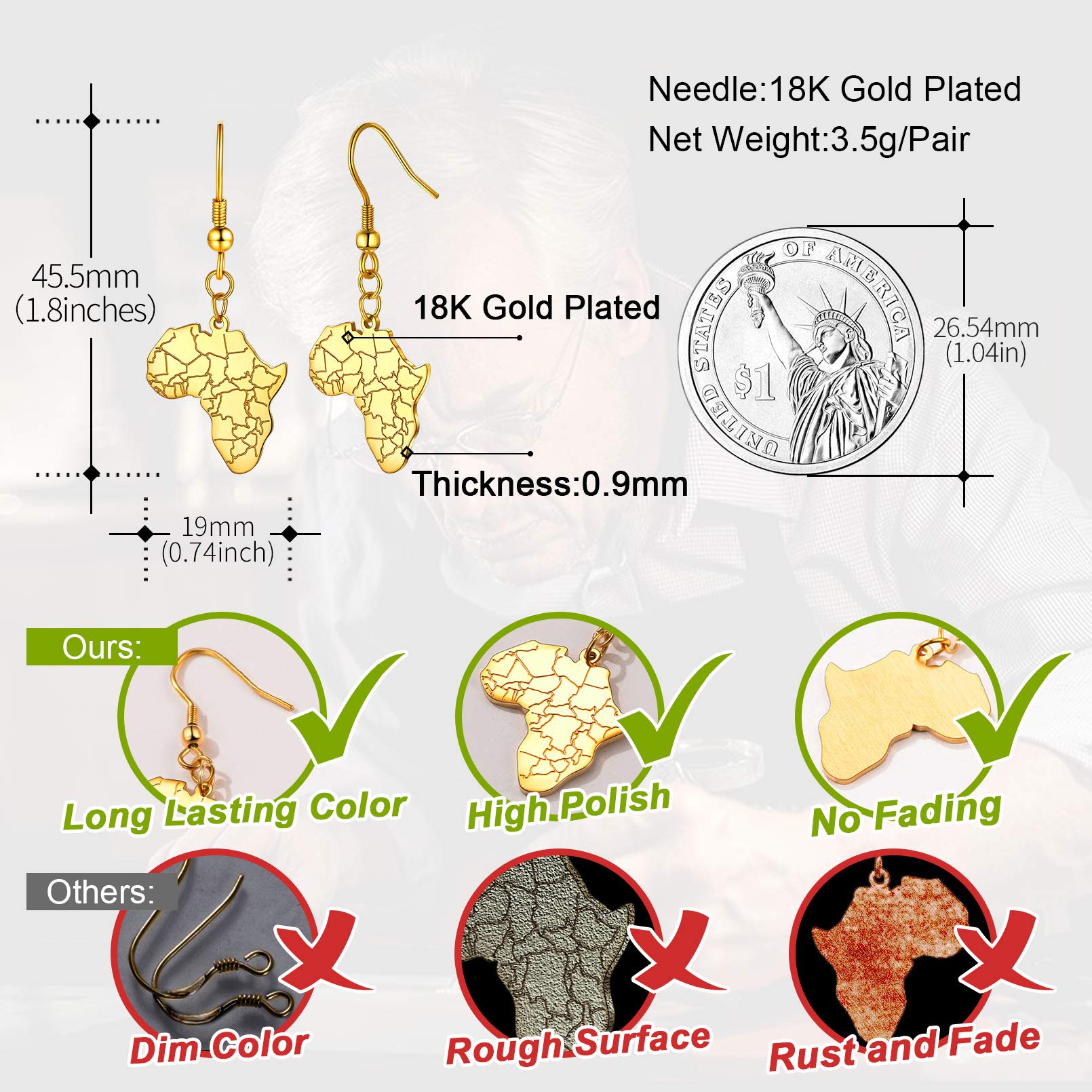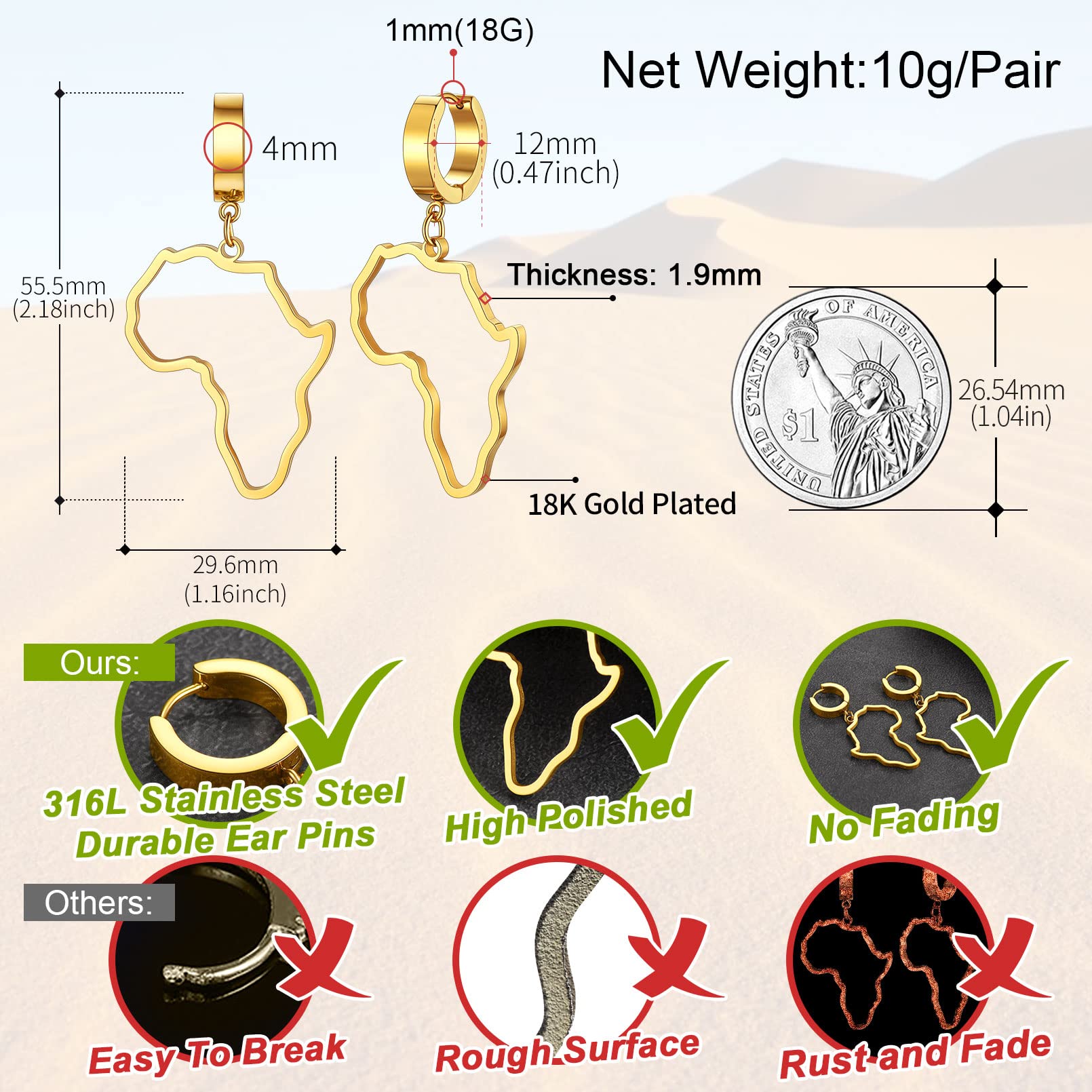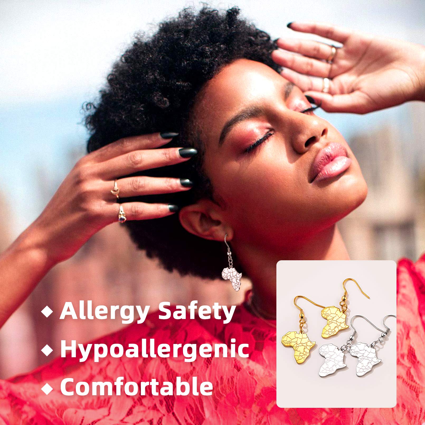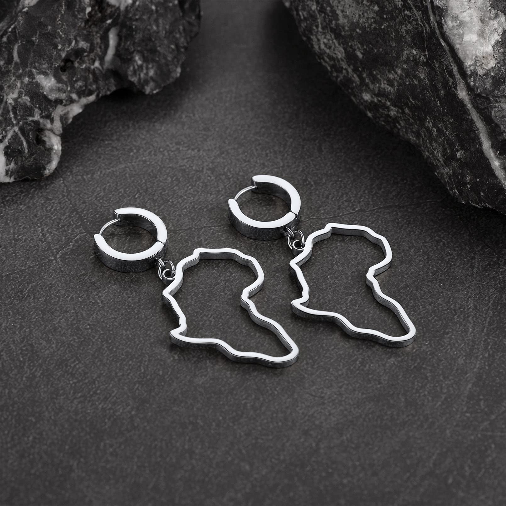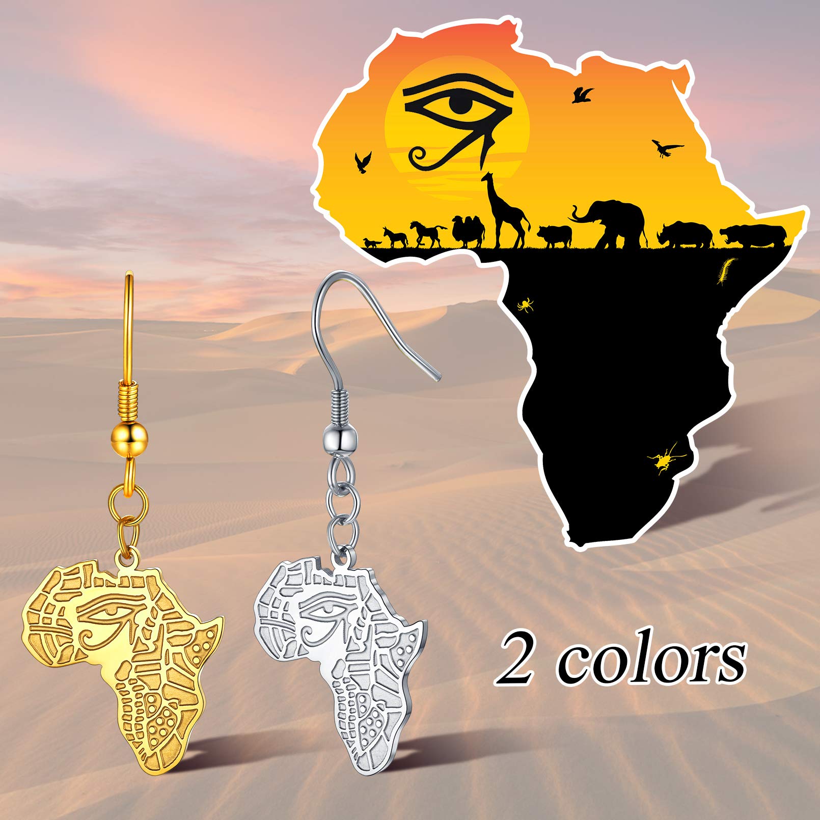 FaithHeart African Map Shaped Drop Earrings Stainless Steel/18K Gold Plated Statement Africa Jewelry Ear Charms for Women Teen Girls
