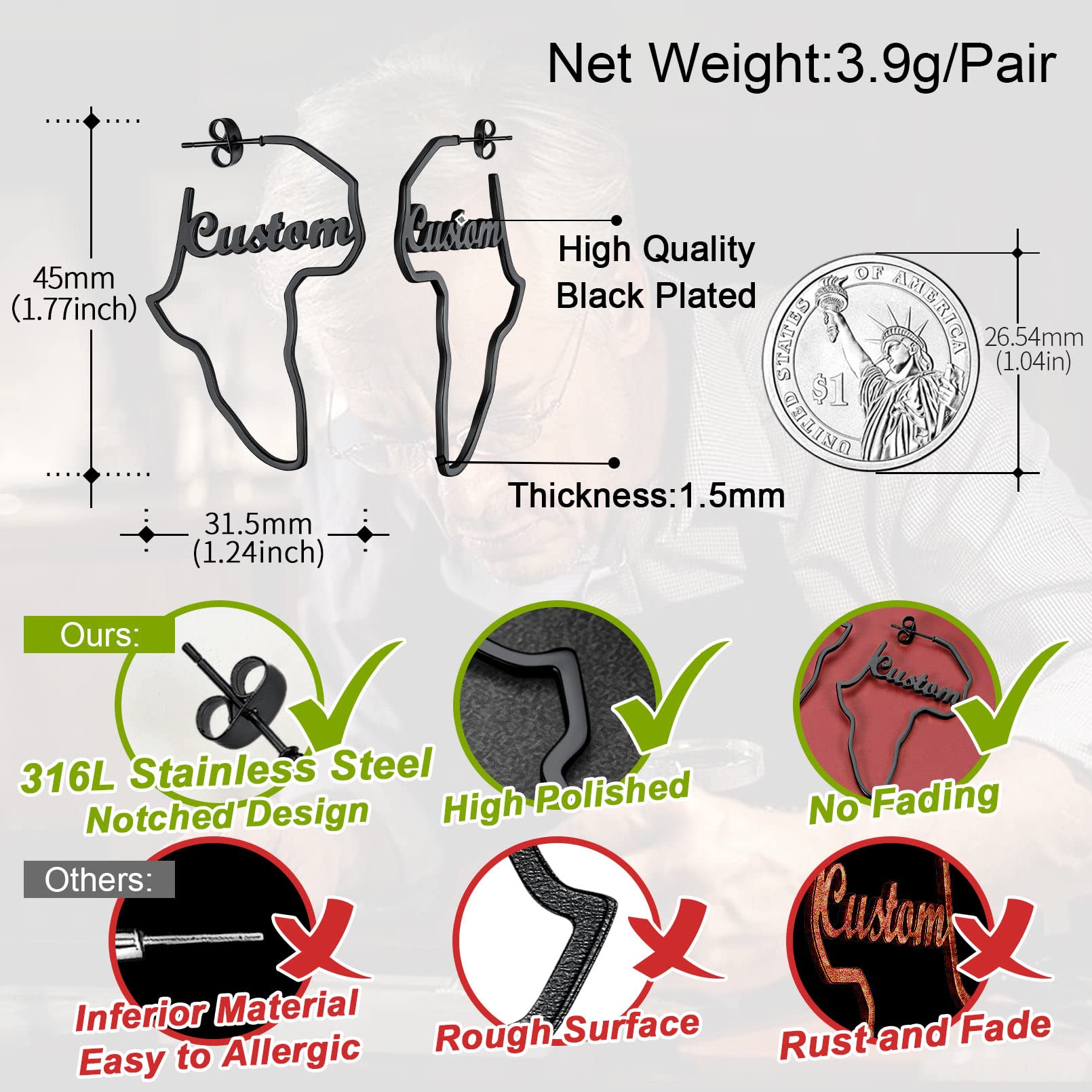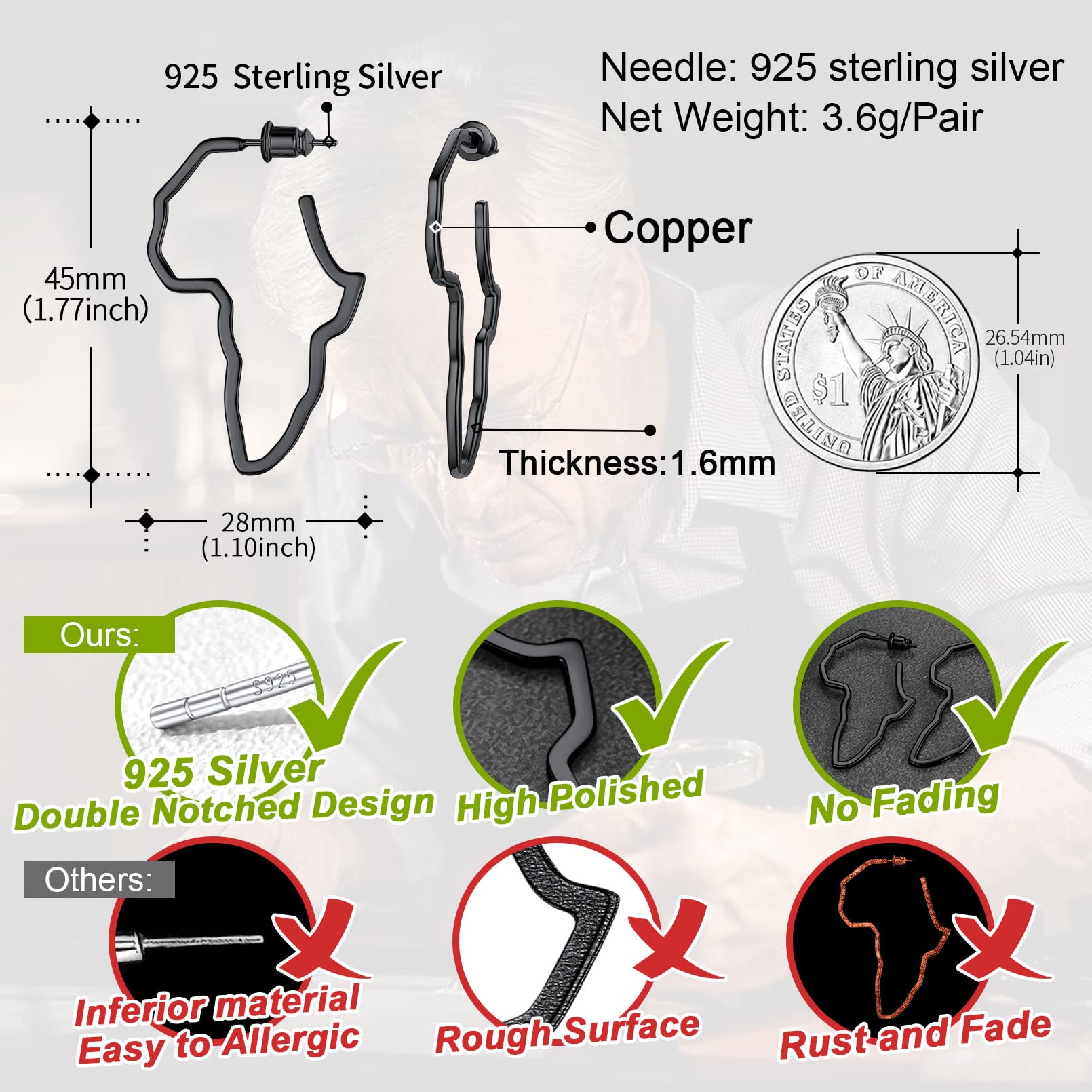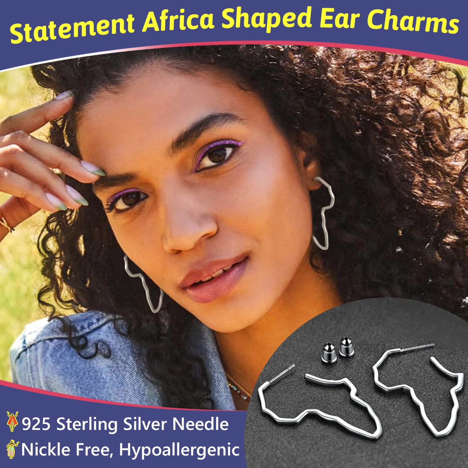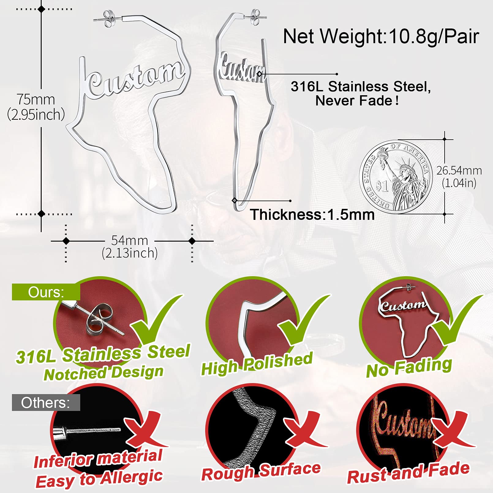 FaithHeart African Map Shaped Drop Earrings Stainless Steel/18K Gold Plated Statement Africa Jewelry Ear Charms for Women Teen Girls
