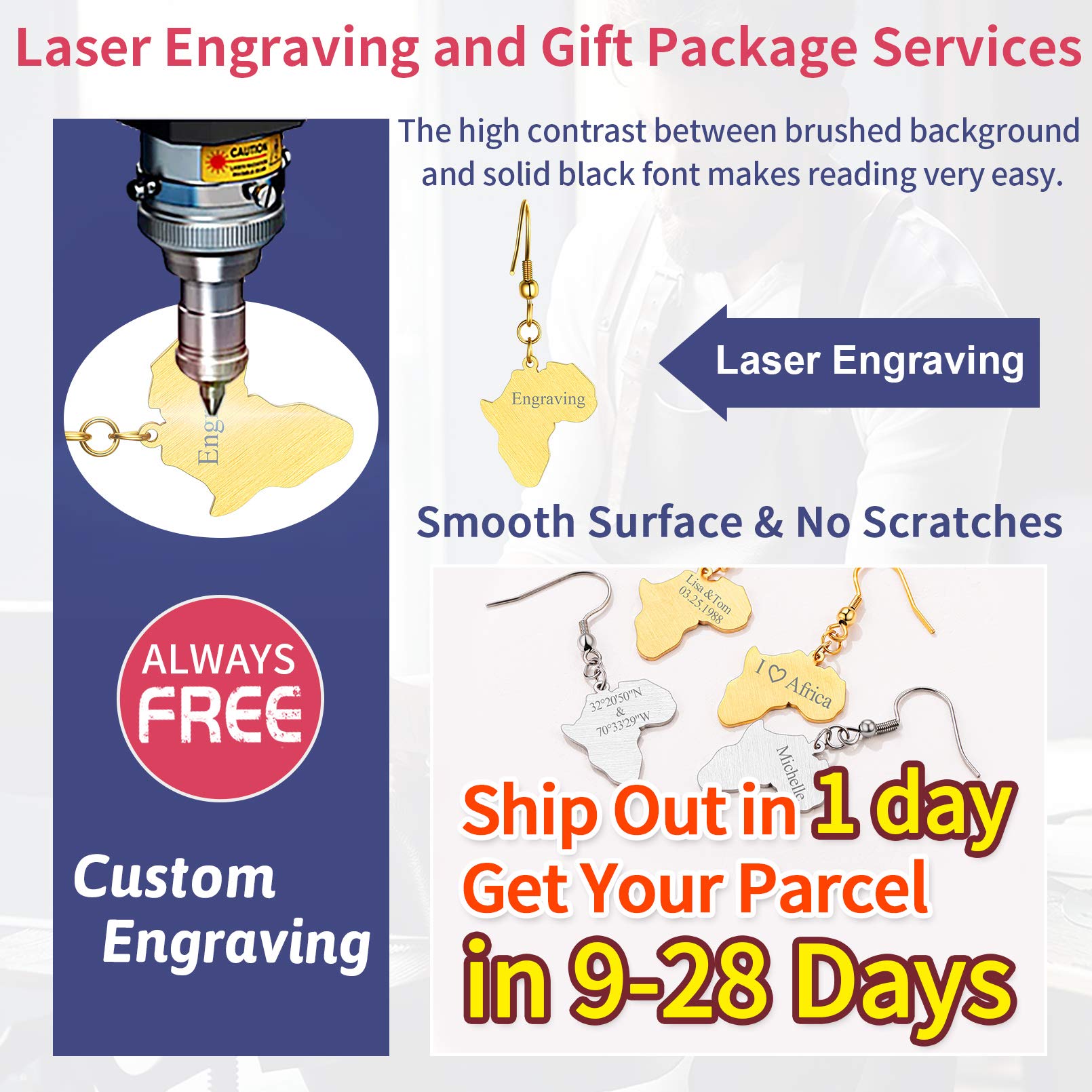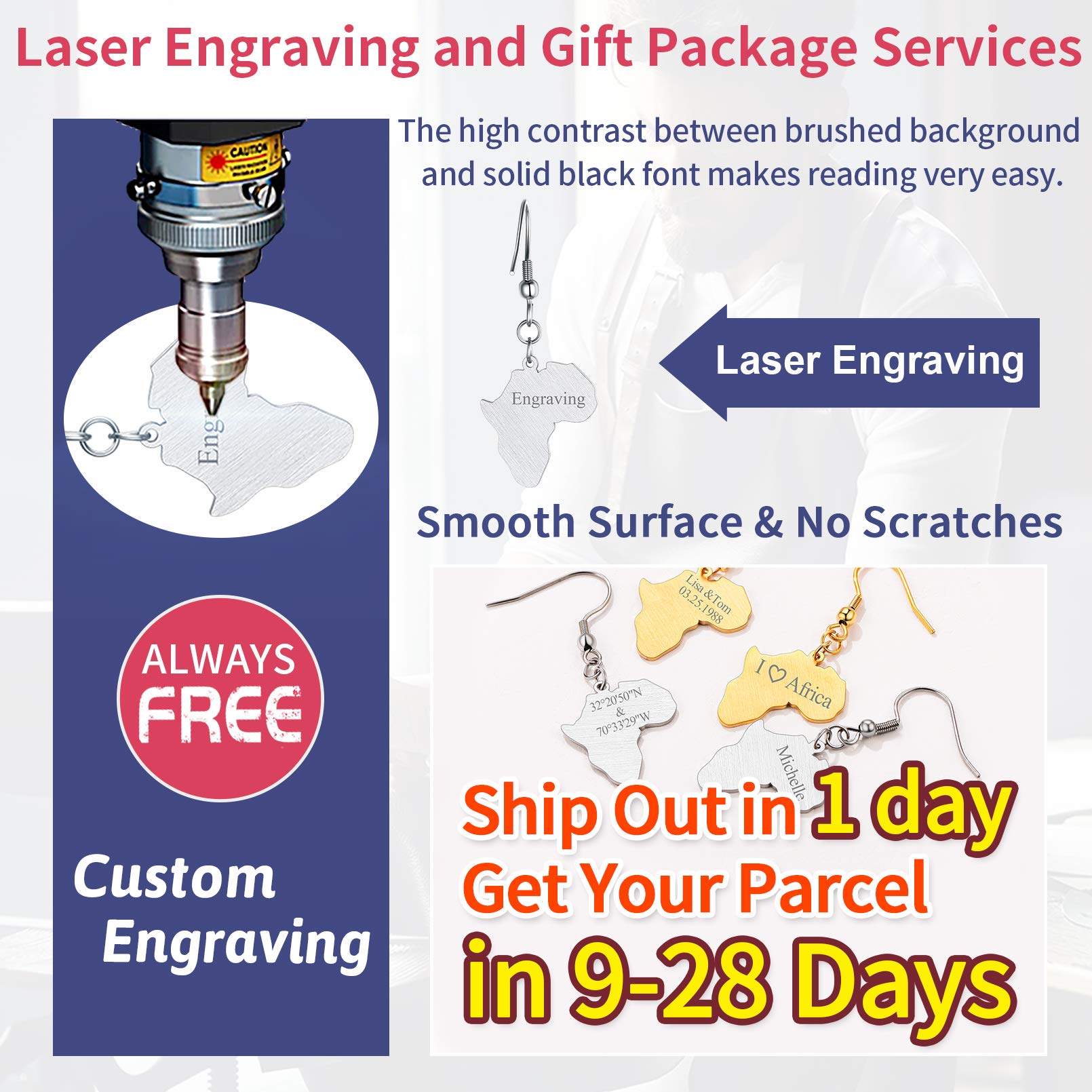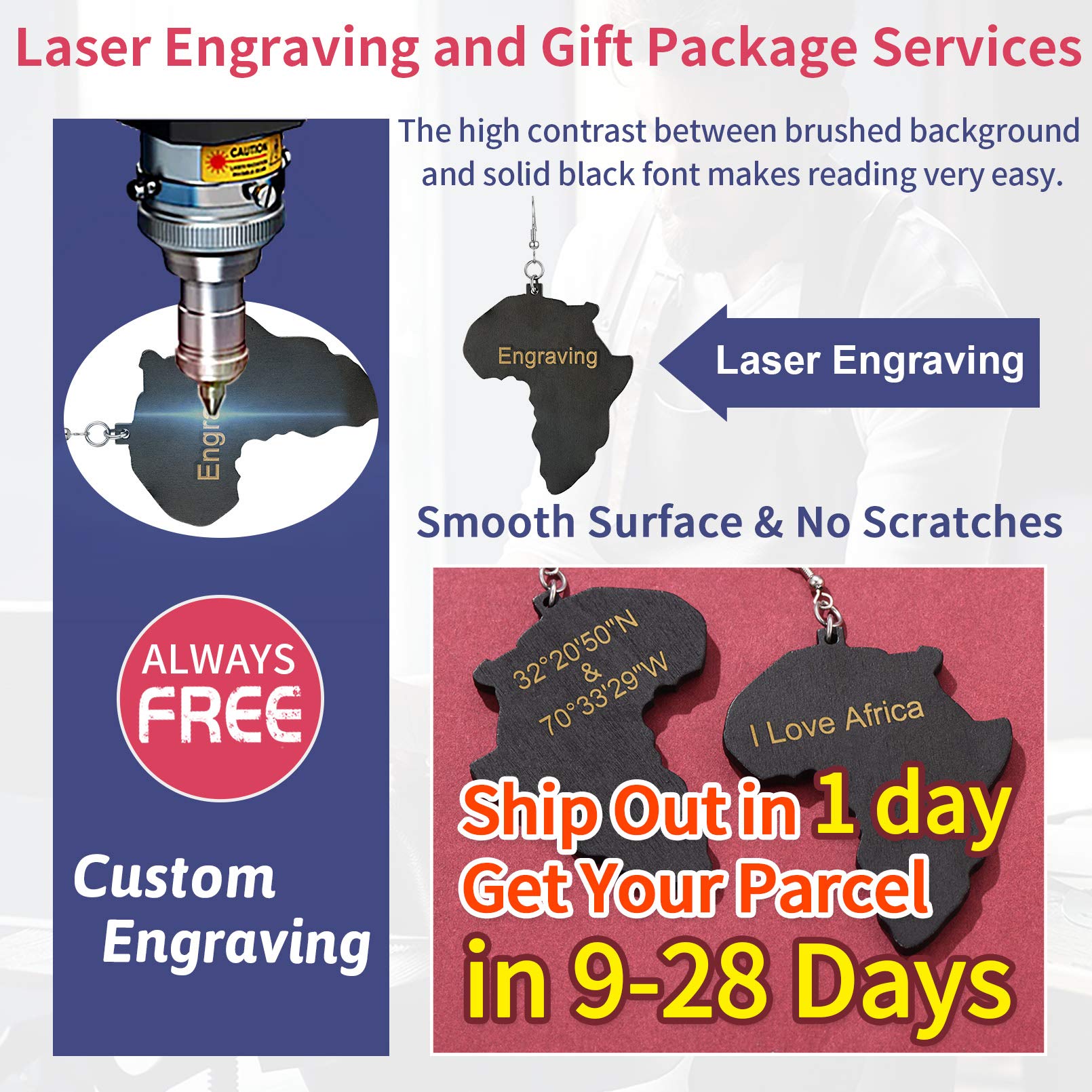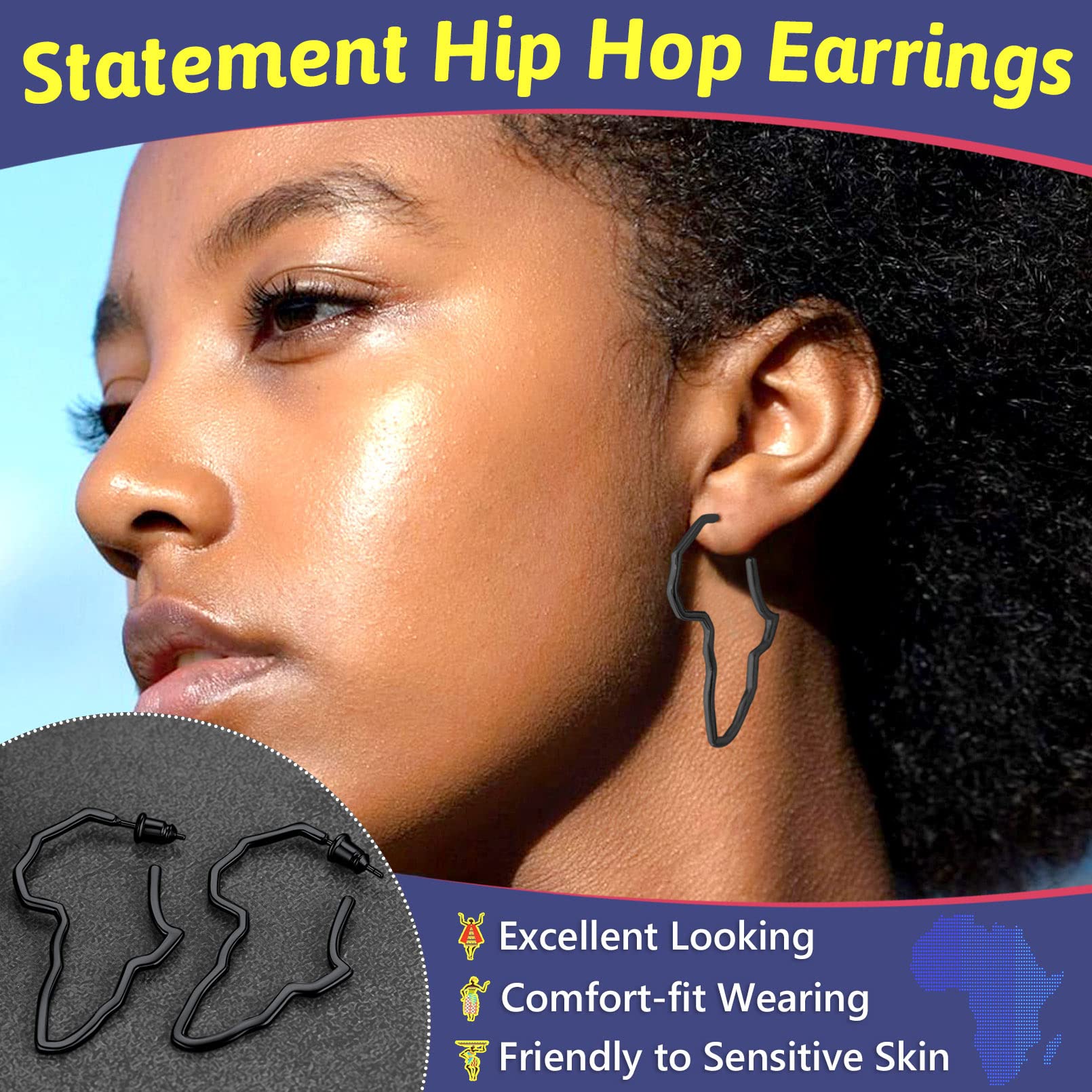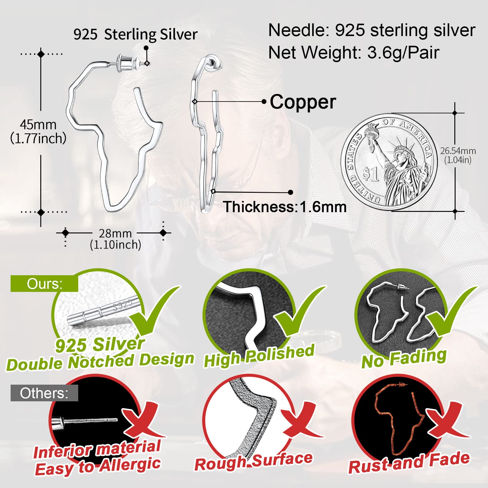 FaithHeart African Map Shaped Drop Earrings Stainless Steel/18K Gold Plated Statement Africa Jewelry Ear Charms for Women Teen Girls
