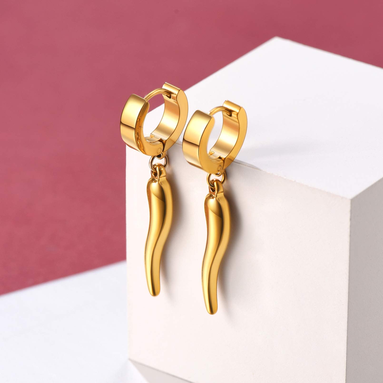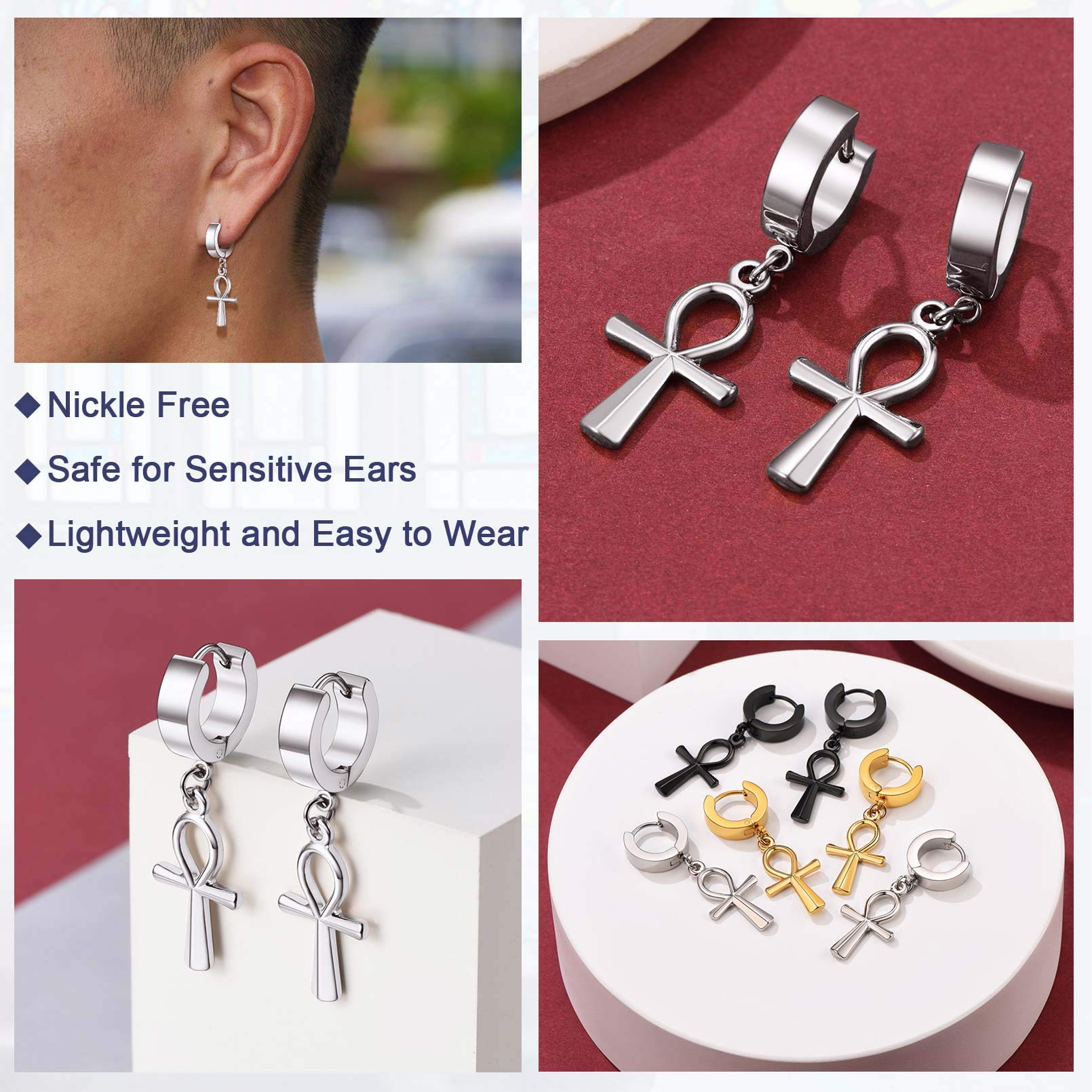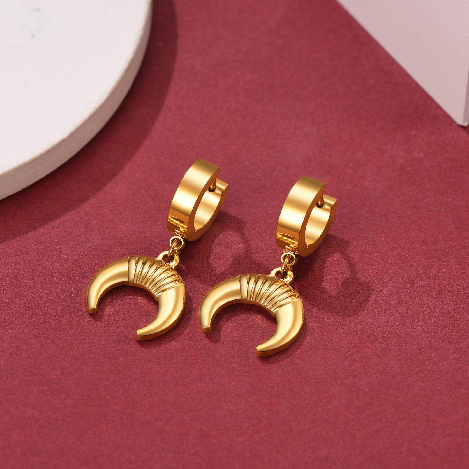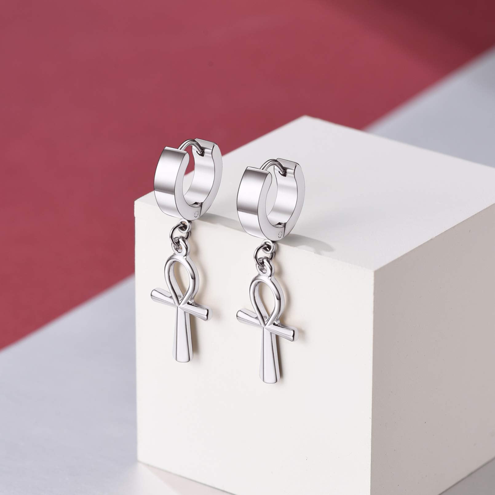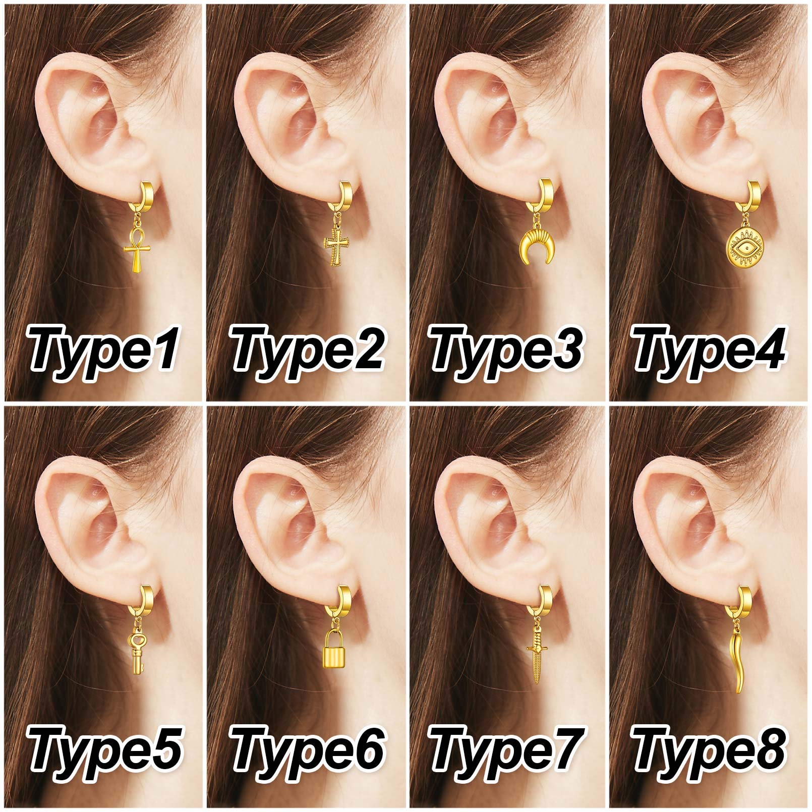 FaithHeart Huggie Hoop Earrings for Women-Stainless Steel/18K Gold Plated Dangling Drop Earring Ankh/Cross/Padlock/Italian Horn/Eye/Key Hoops Jewelry