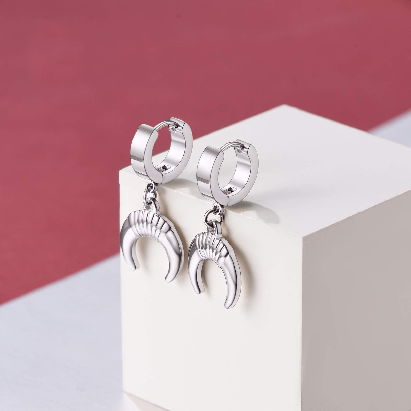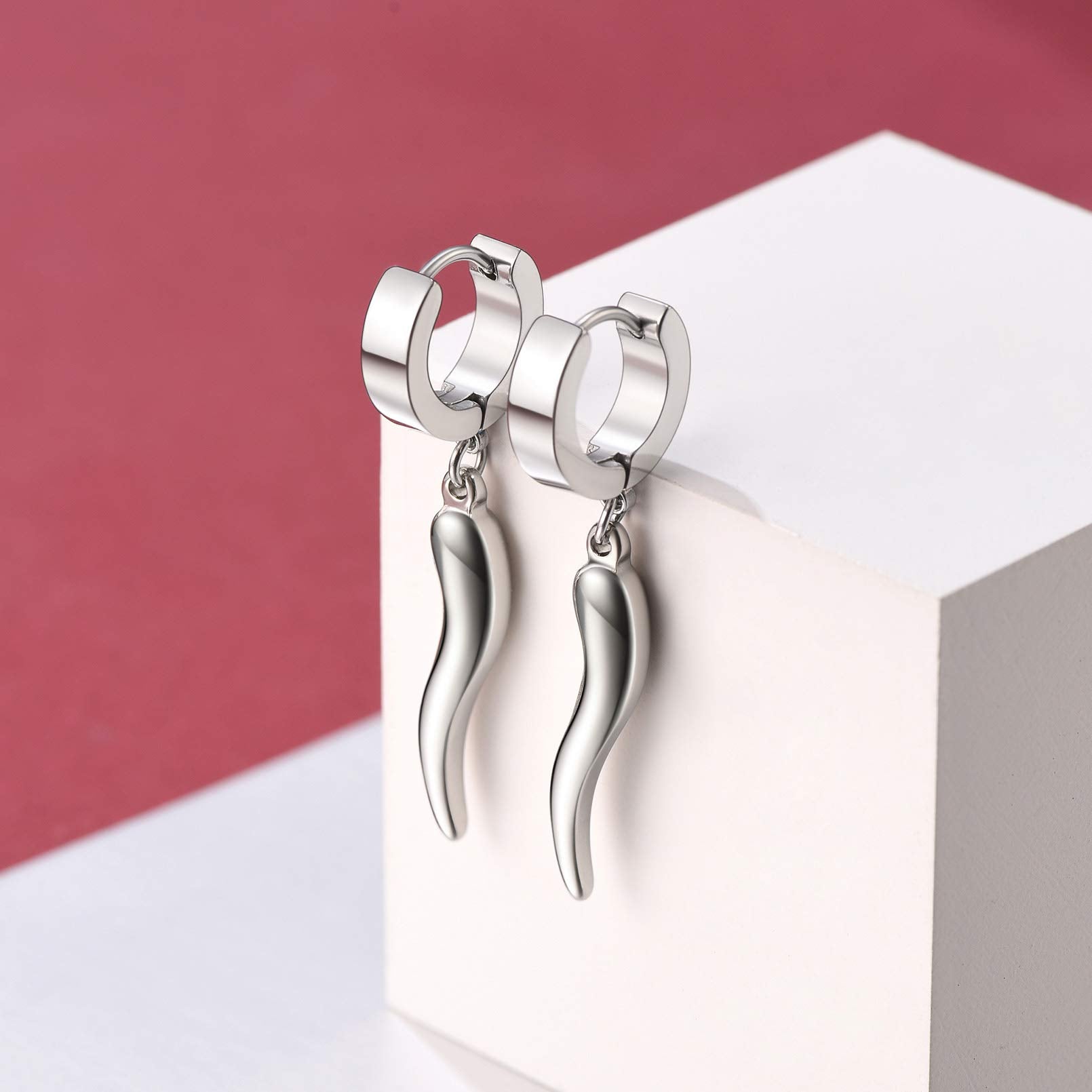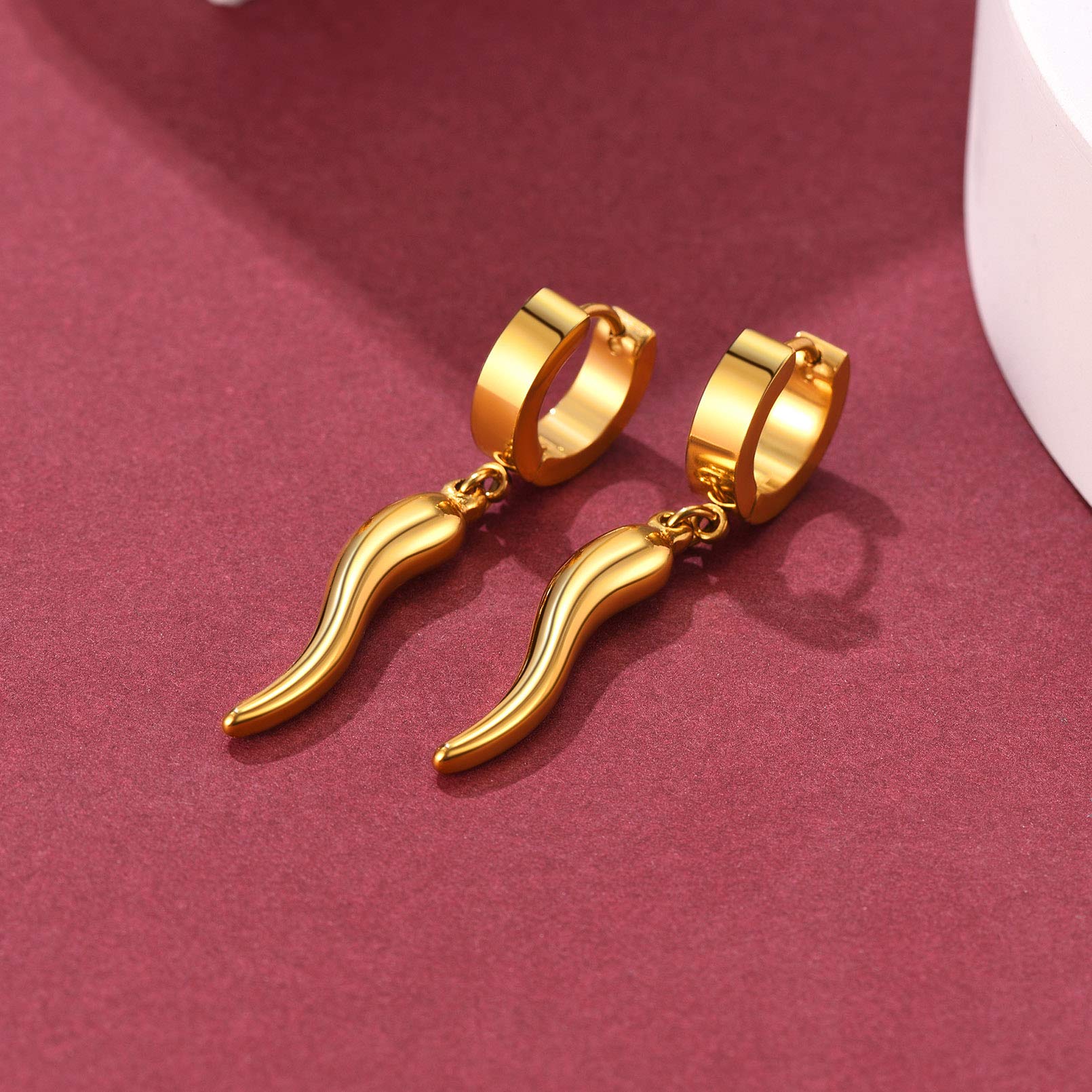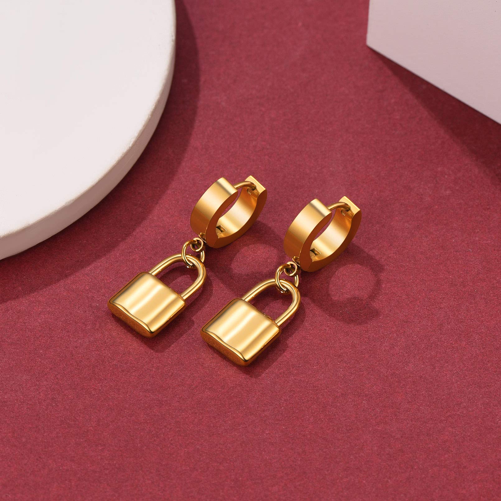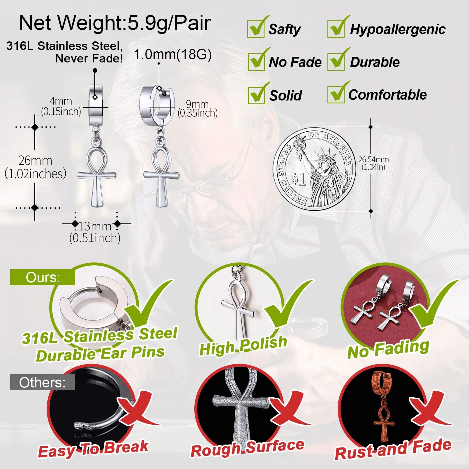 FaithHeart Huggie Hoop Earrings for Women-Stainless Steel/18K Gold Plated Dangling Drop Earring Ankh/Cross/Padlock/Italian Horn/Eye/Key Hoops Jewelry