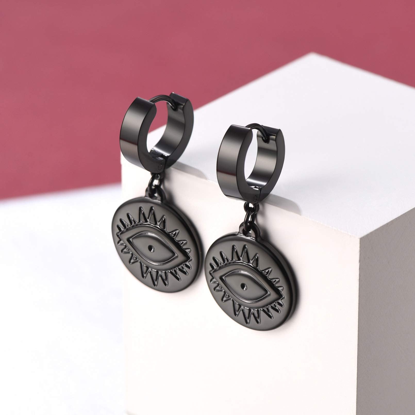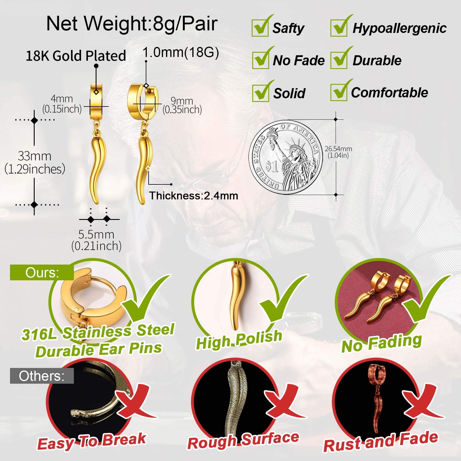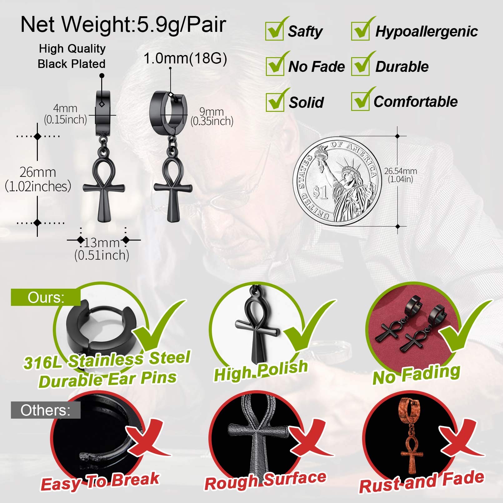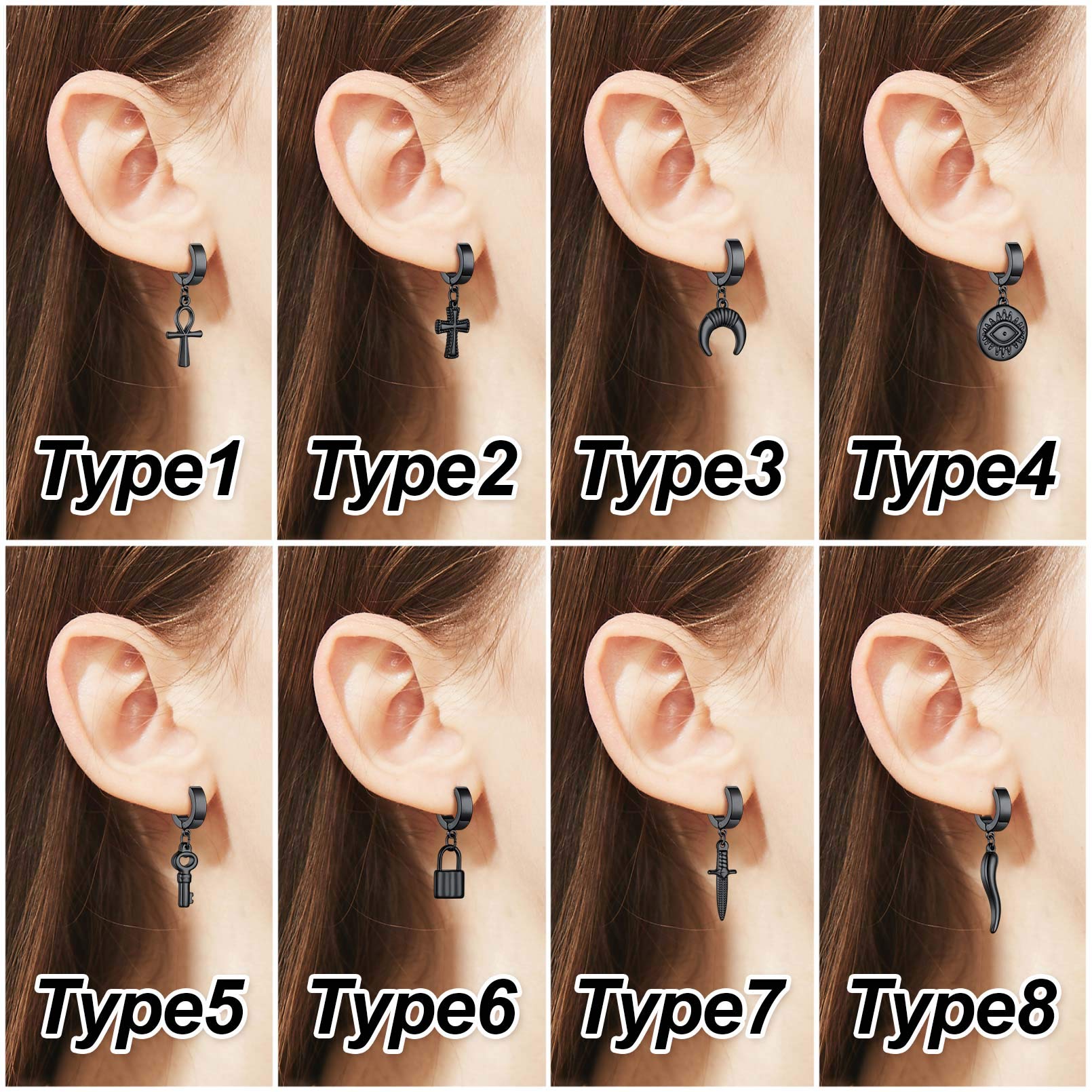 FaithHeart Huggie Hoop Earrings for Women-Stainless Steel/18K Gold Plated Dangling Drop Earring Ankh/Cross/Padlock/Italian Horn/Eye/Key Hoops Jewelry