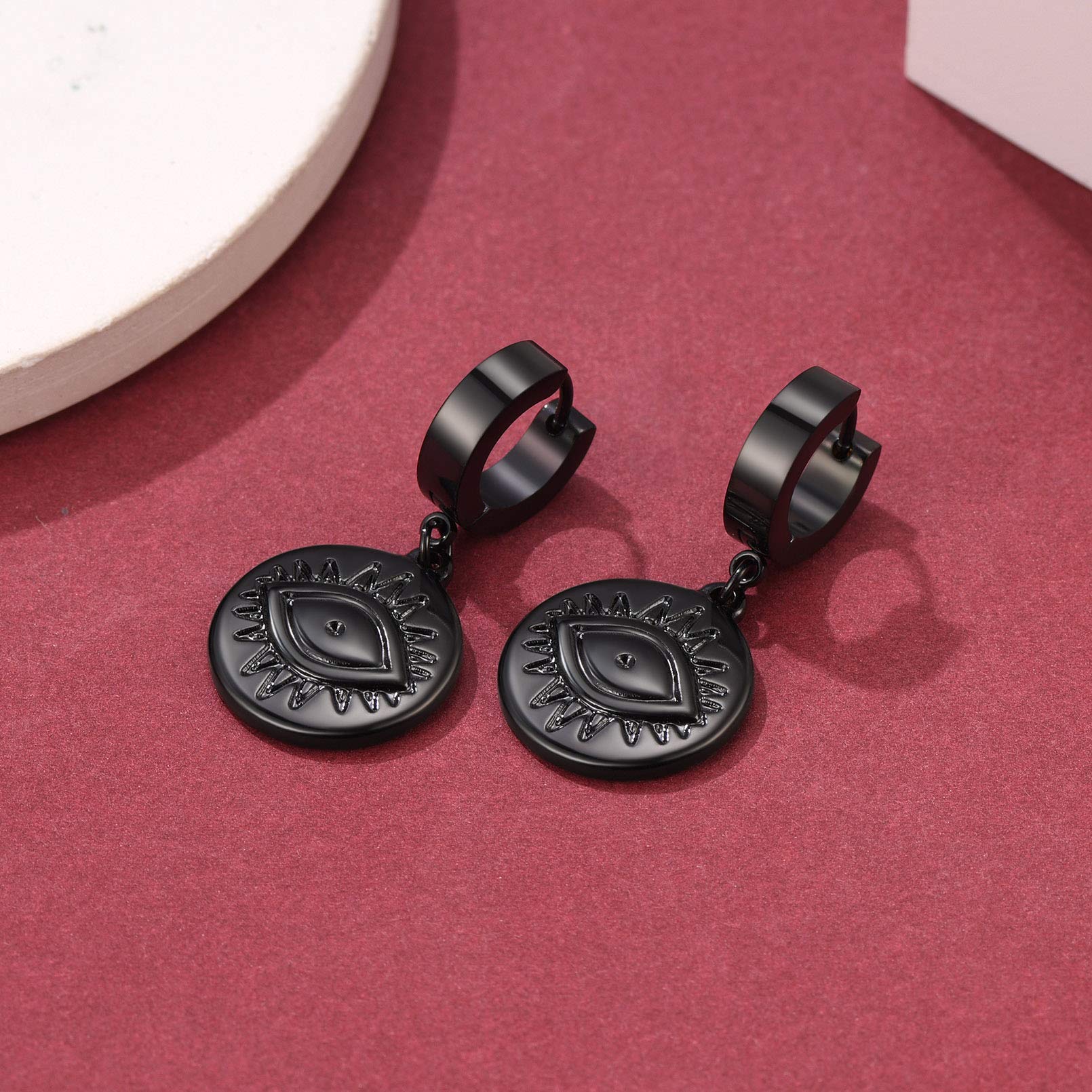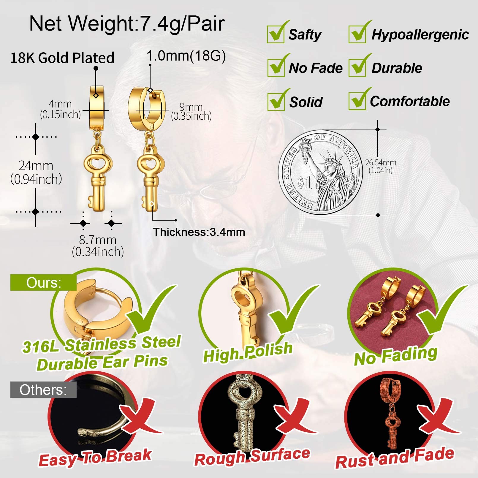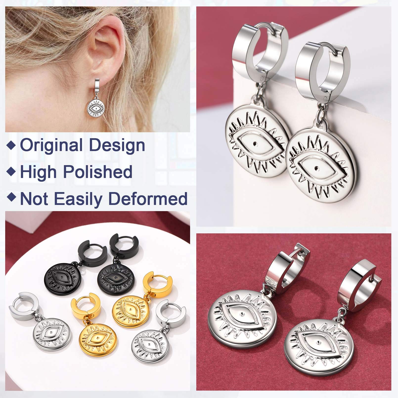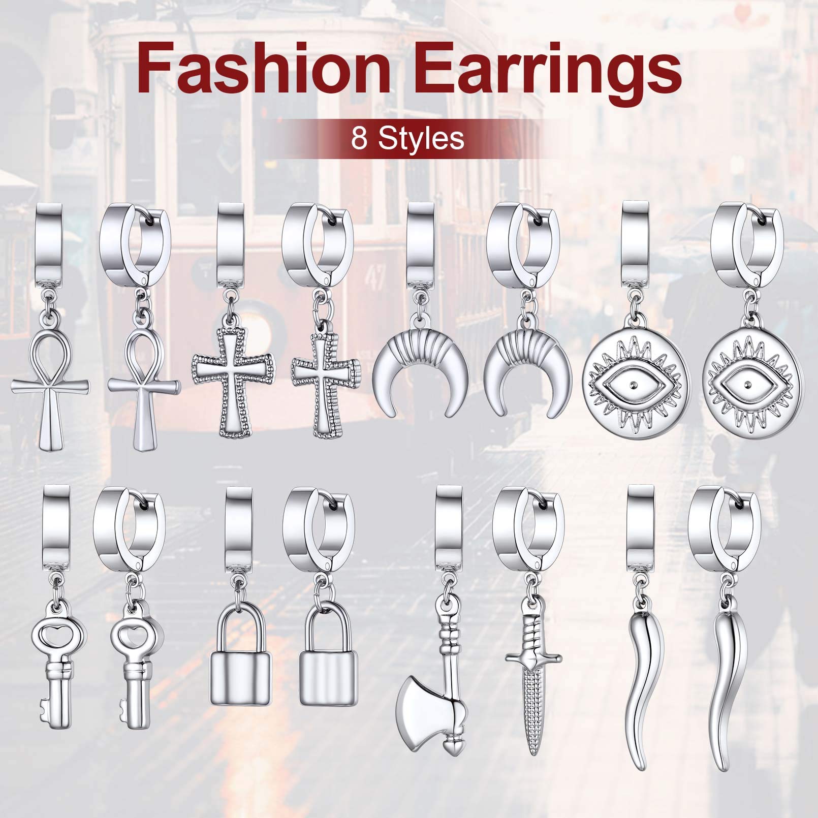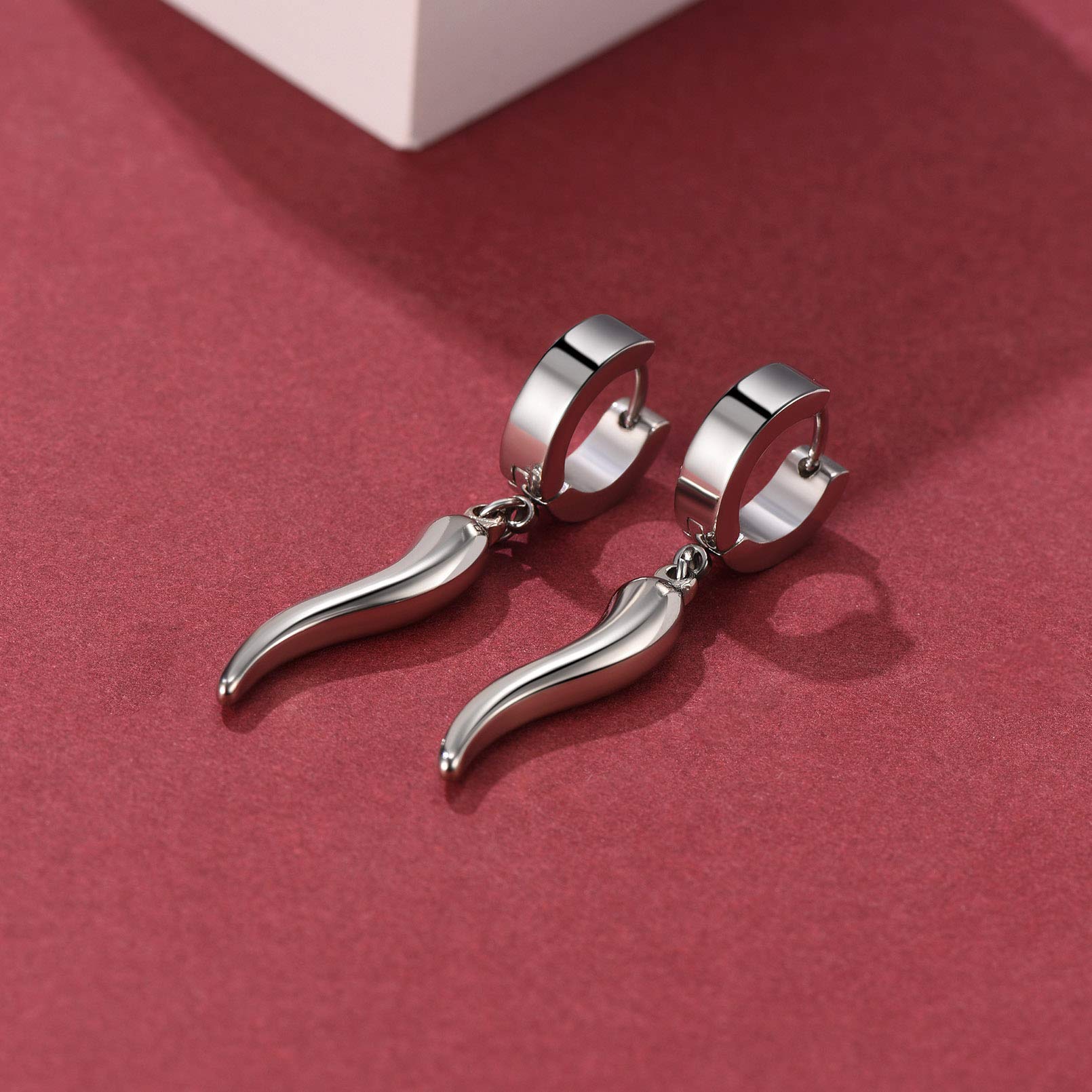 FaithHeart Huggie Hoop Earrings for Women-Stainless Steel/18K Gold Plated Dangling Drop Earring Ankh/Cross/Padlock/Italian Horn/Eye/Key Hoops Jewelry