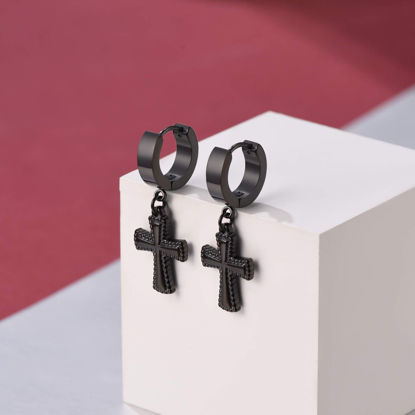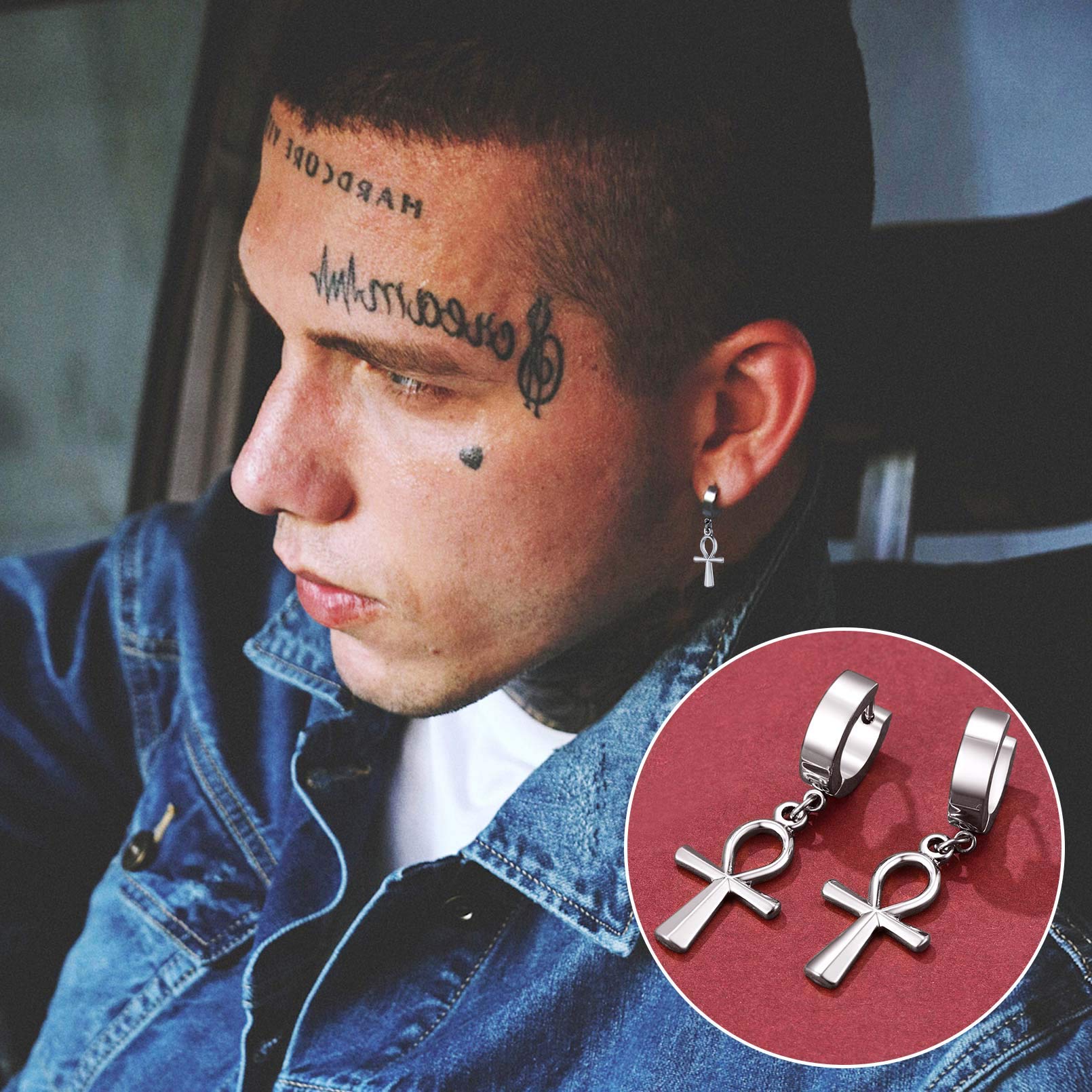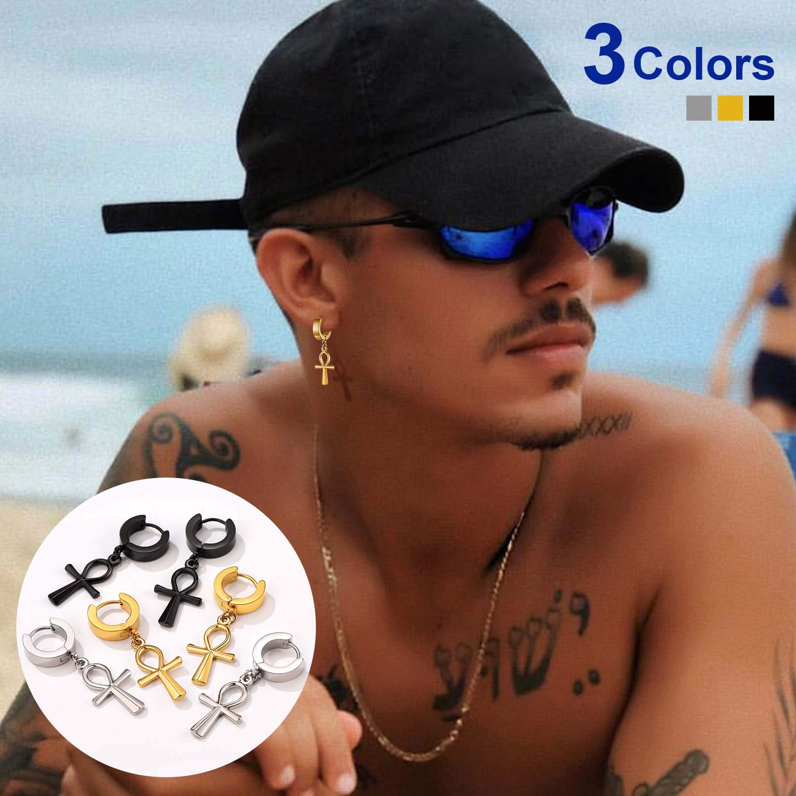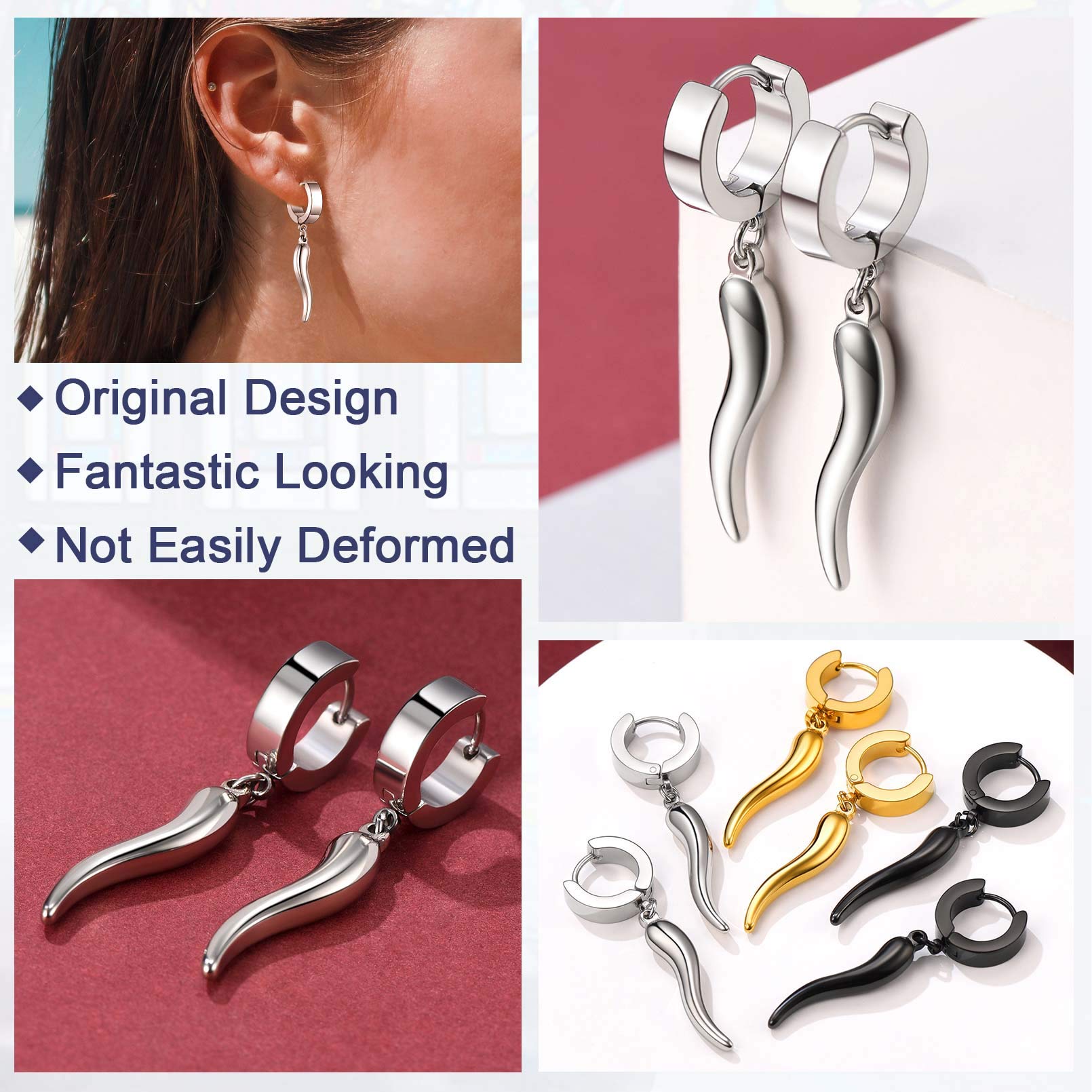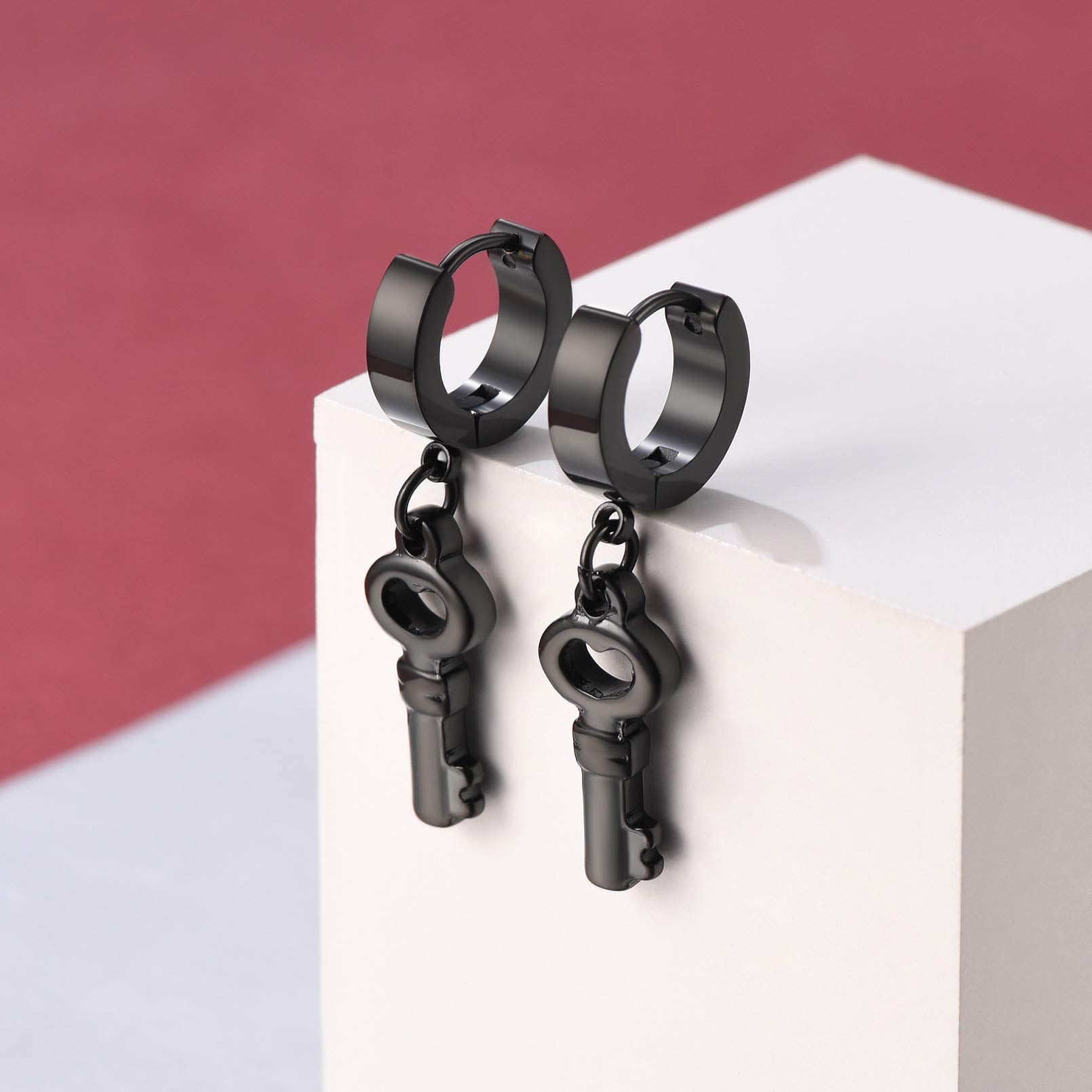 FaithHeart Huggie Hoop Earrings for Women-Stainless Steel/18K Gold Plated Dangling Drop Earring Ankh/Cross/Padlock/Italian Horn/Eye/Key Hoops Jewelry